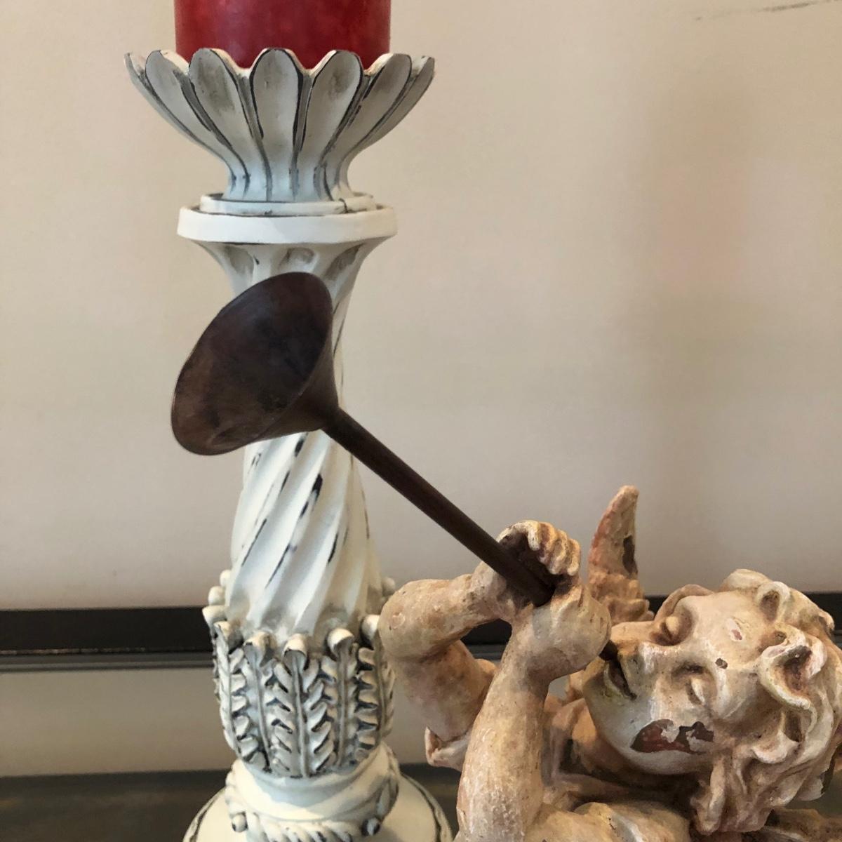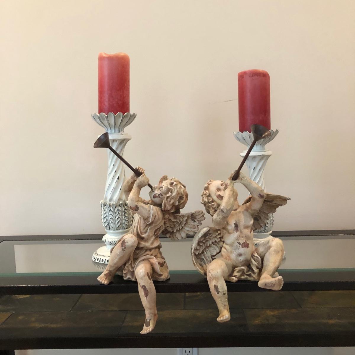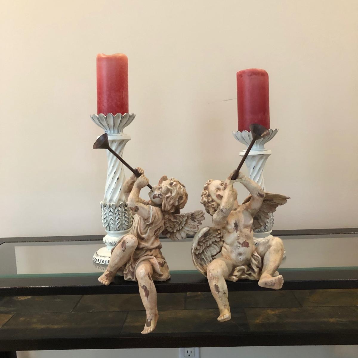 LOT 86K: Trumpeting Cherub Shelf Sitters w/ Home Decor Candlesticks