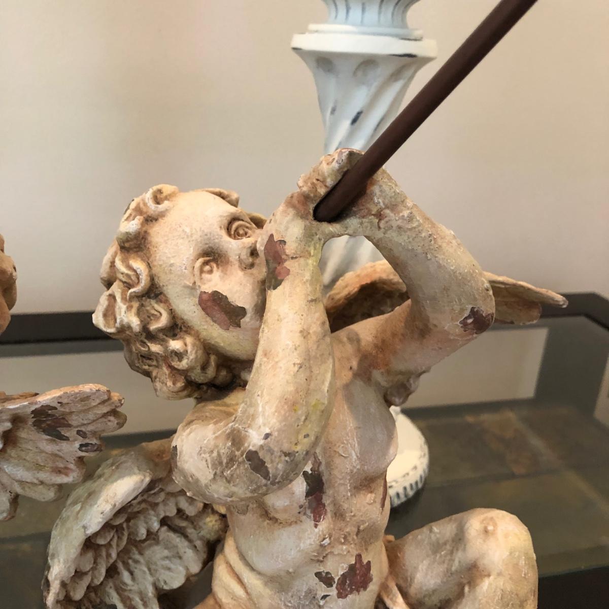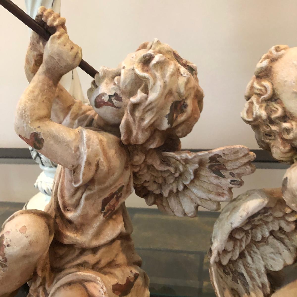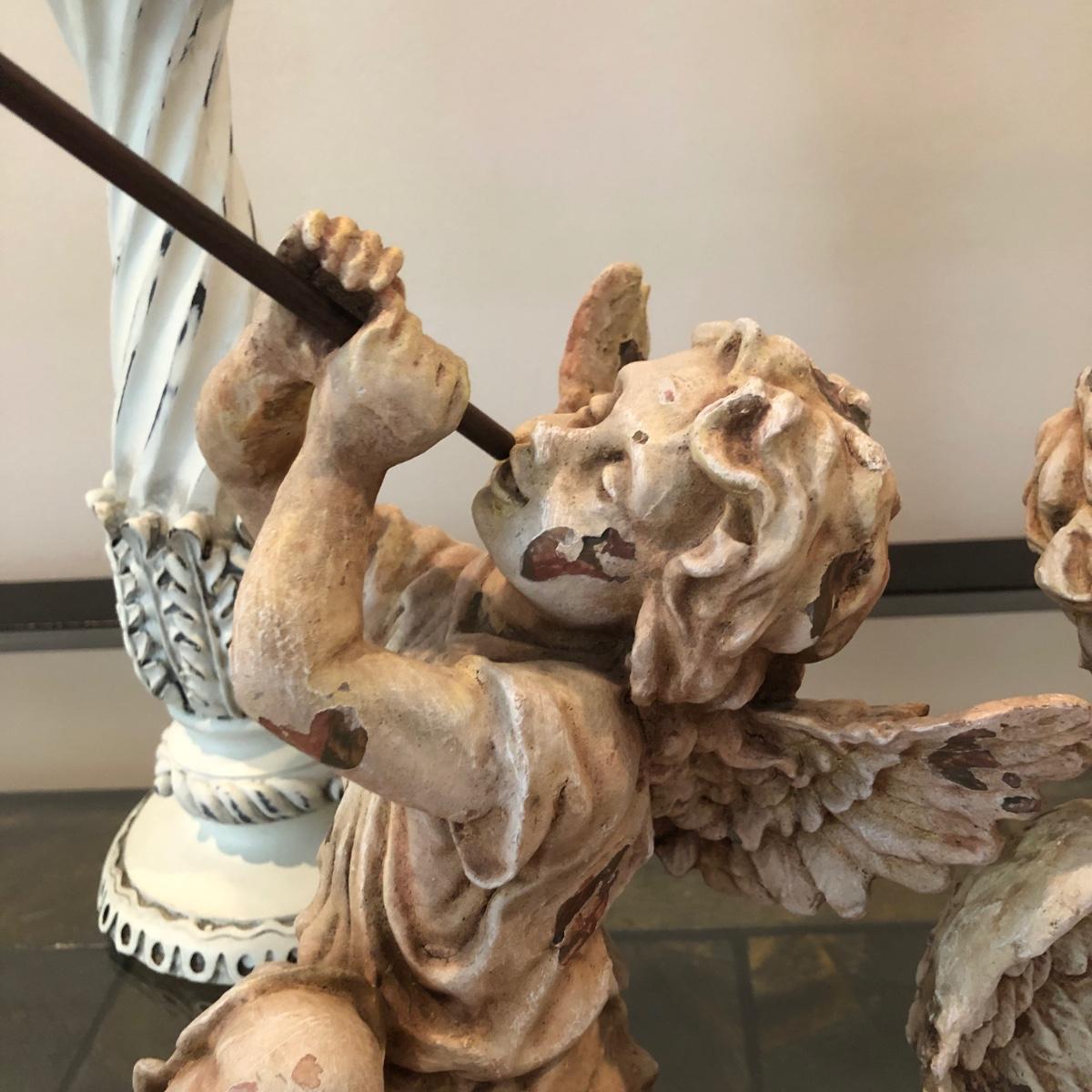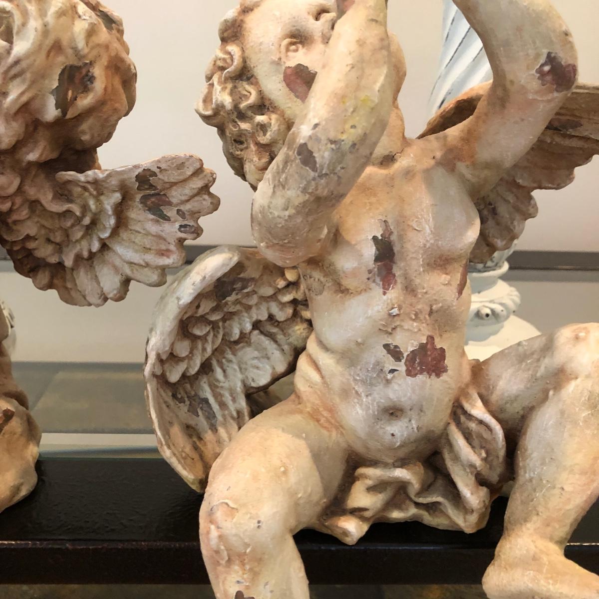 LOT 86K: Trumpeting Cherub Shelf Sitters w/ Home Decor Candlesticks