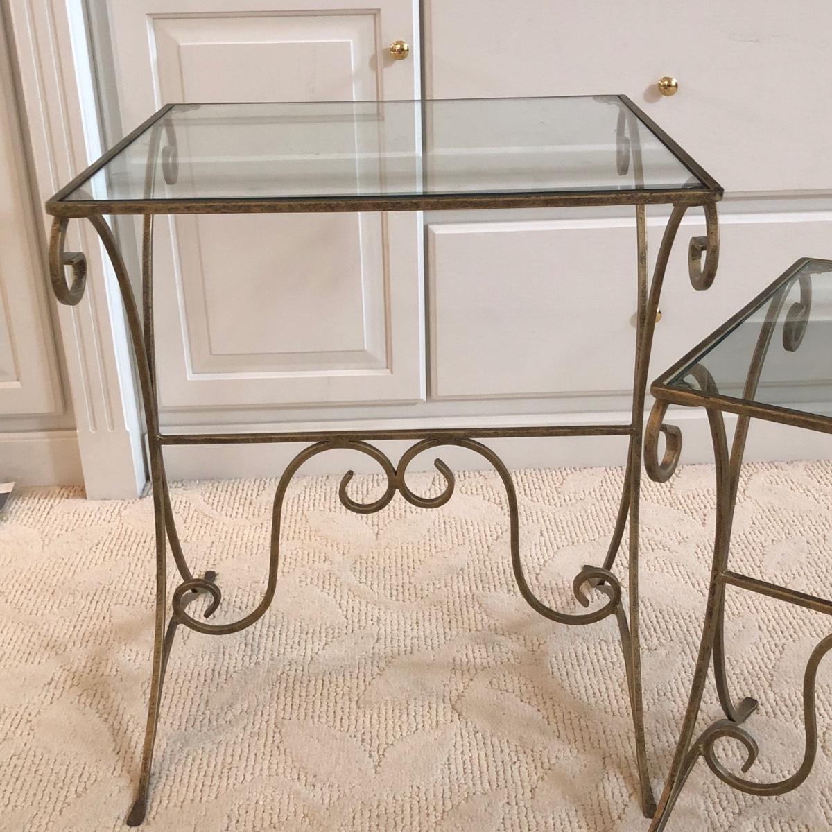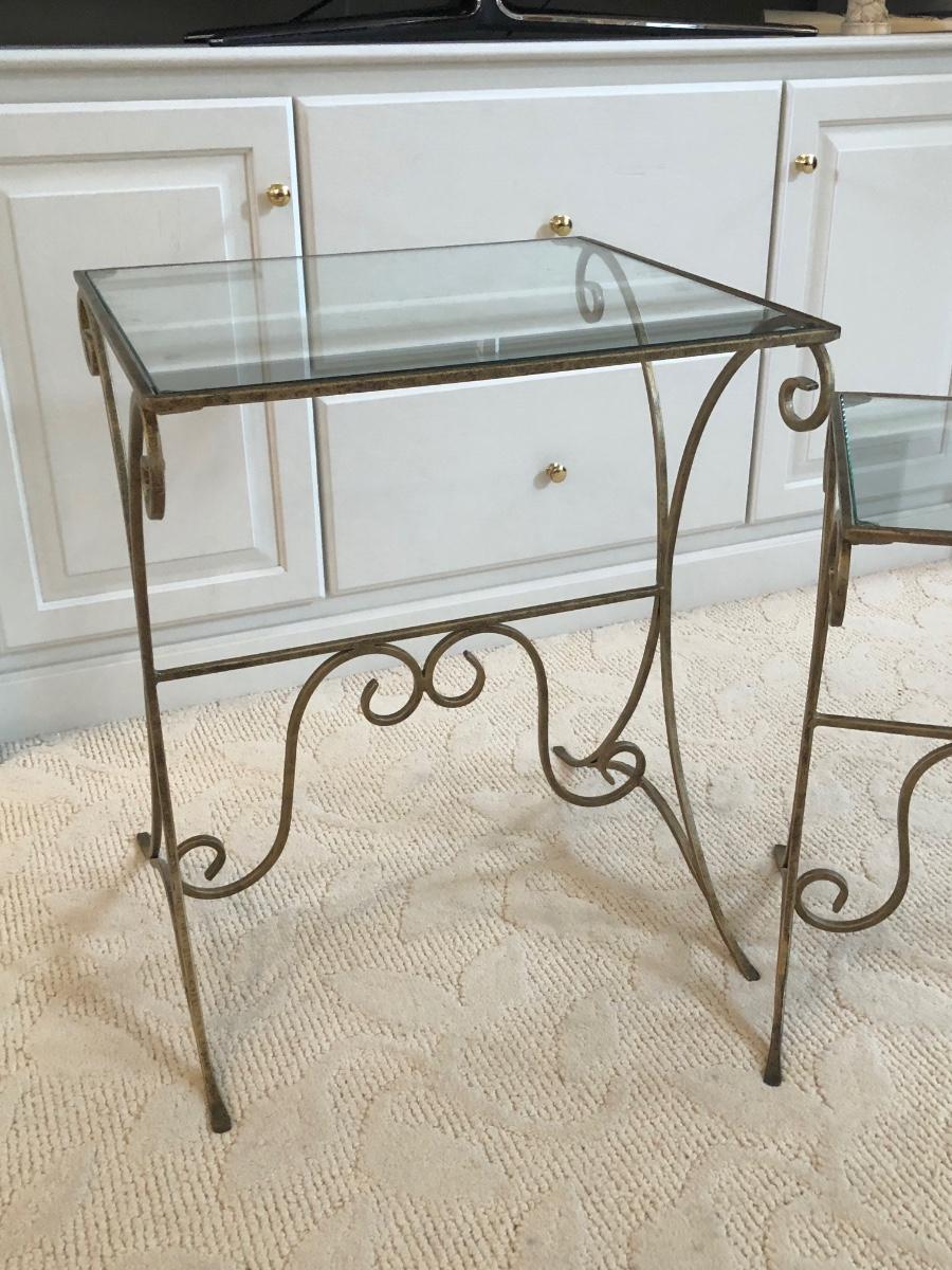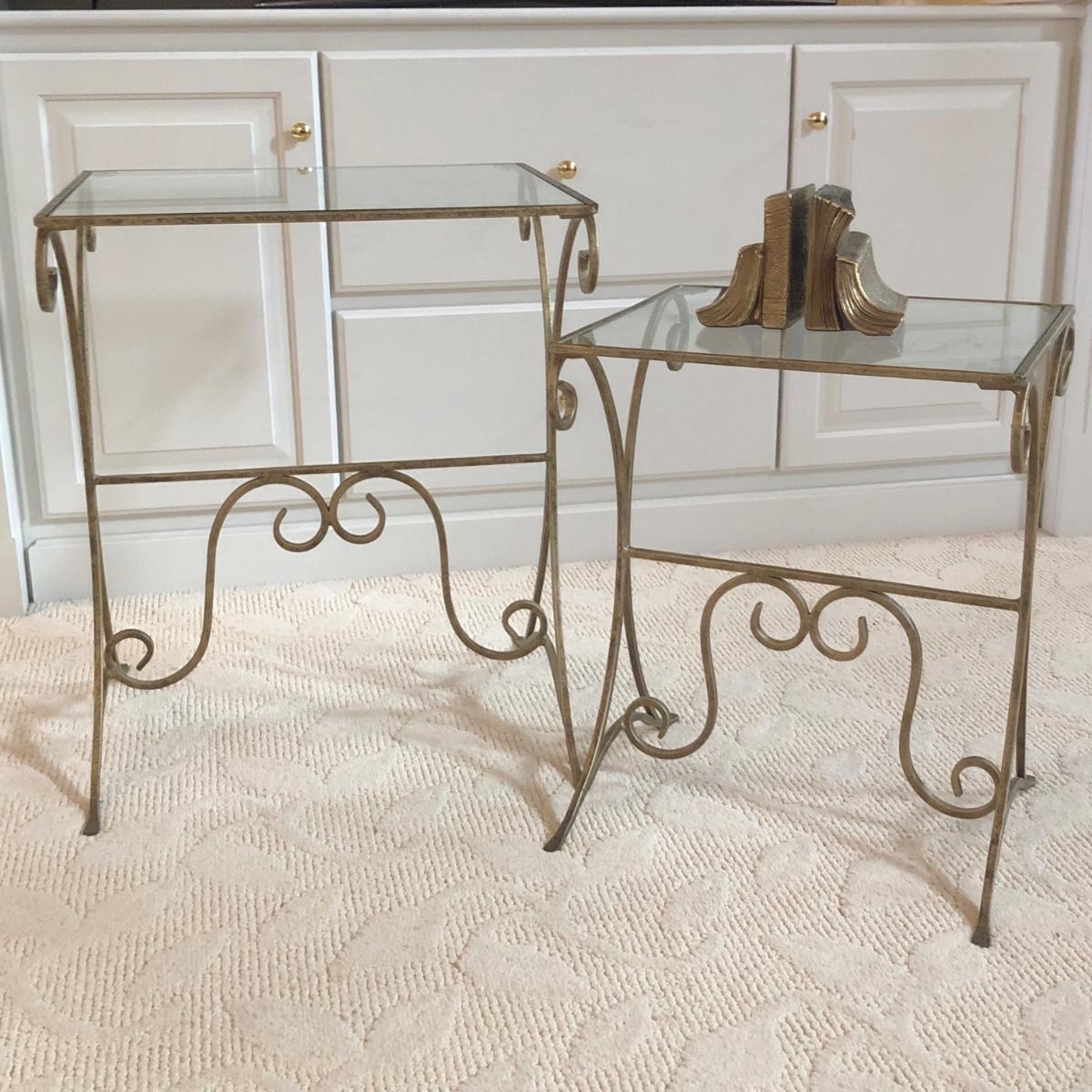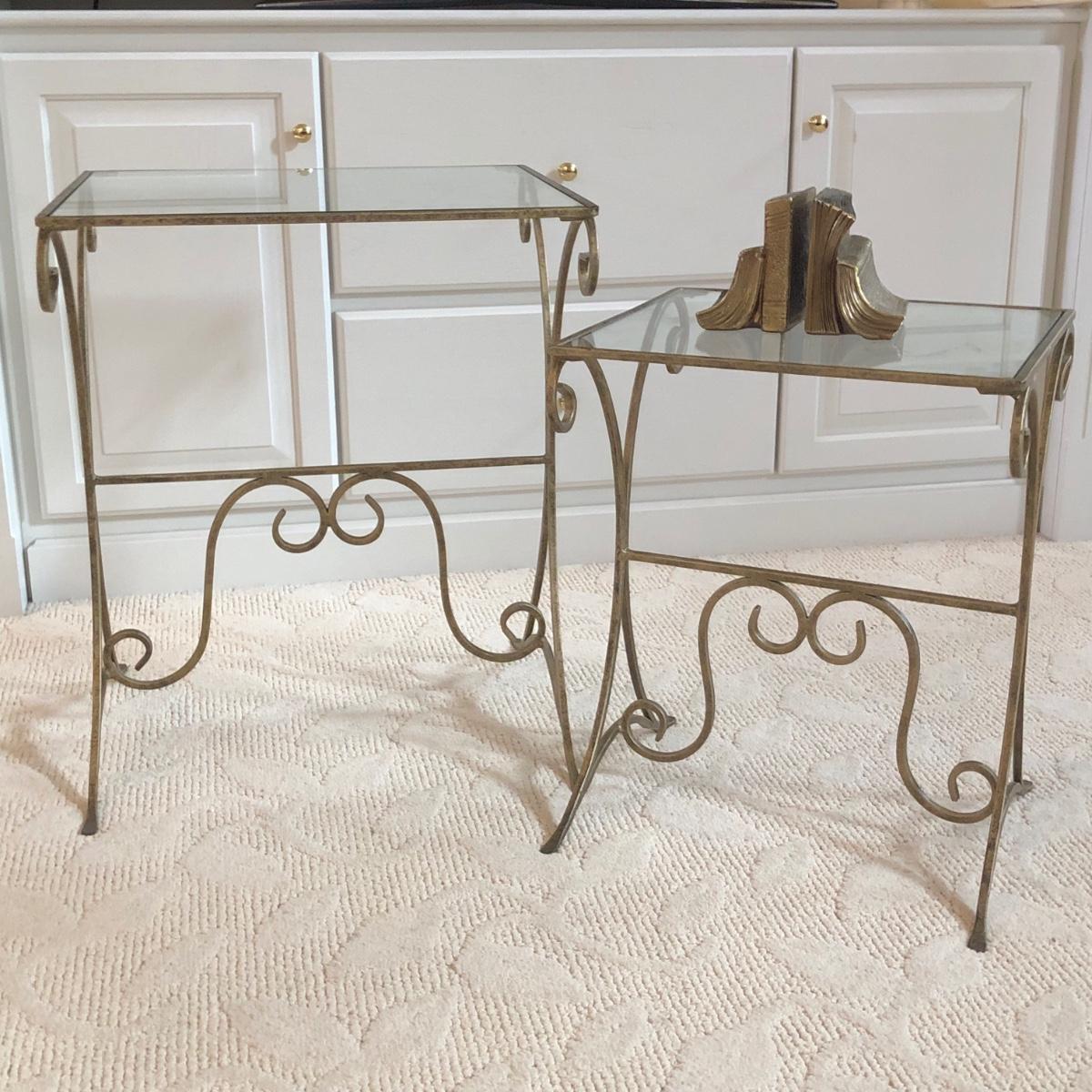 LOT 87L: Glass Top Accent Tables w/ Gold Colored Bookends