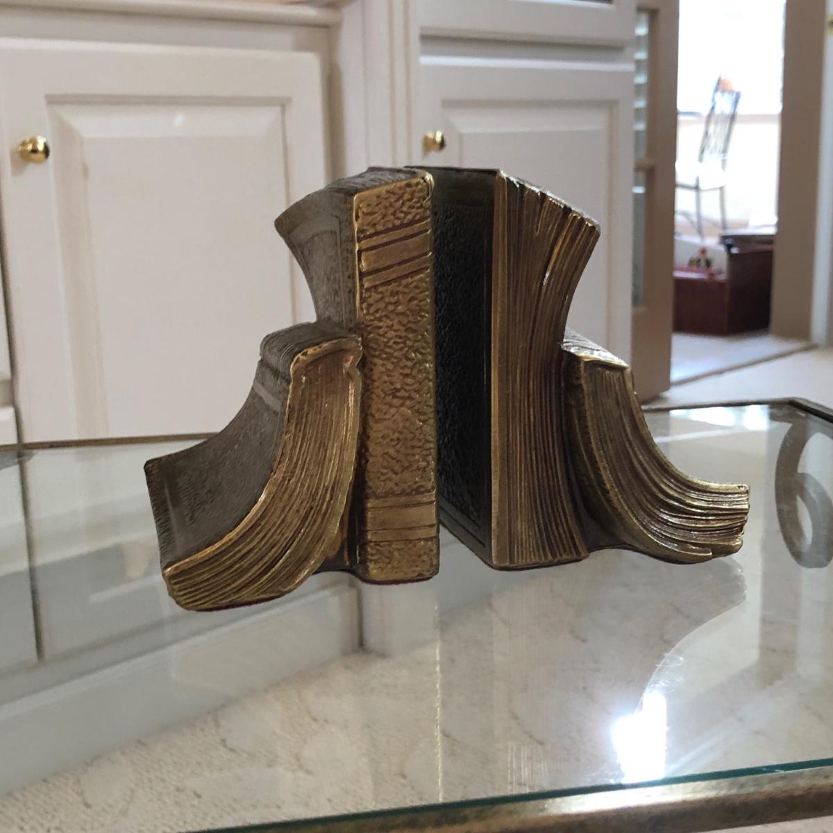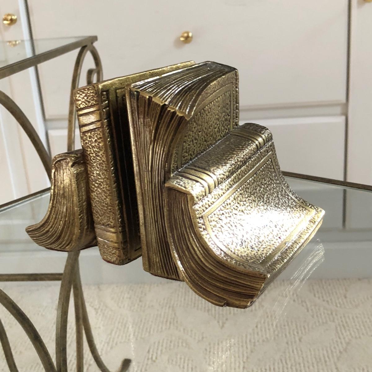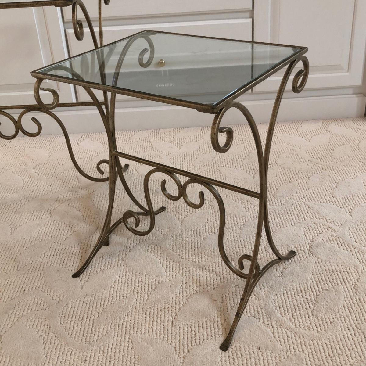 LOT 87L: Glass Top Accent Tables w/ Gold Colored Bookends