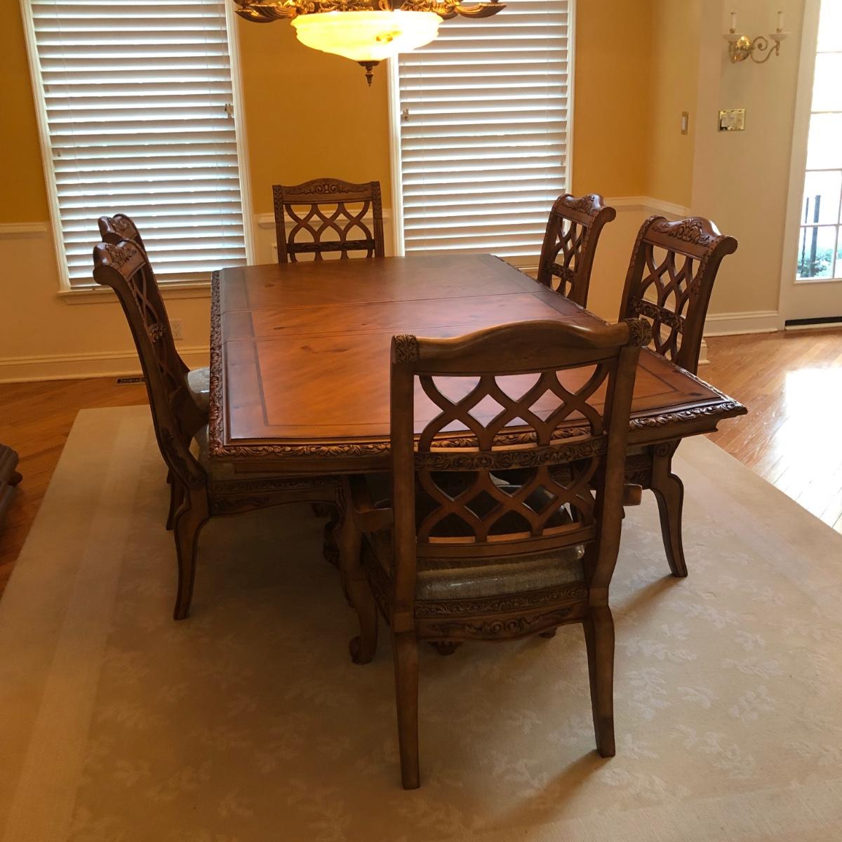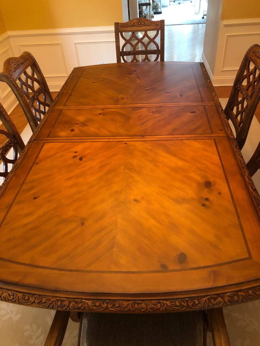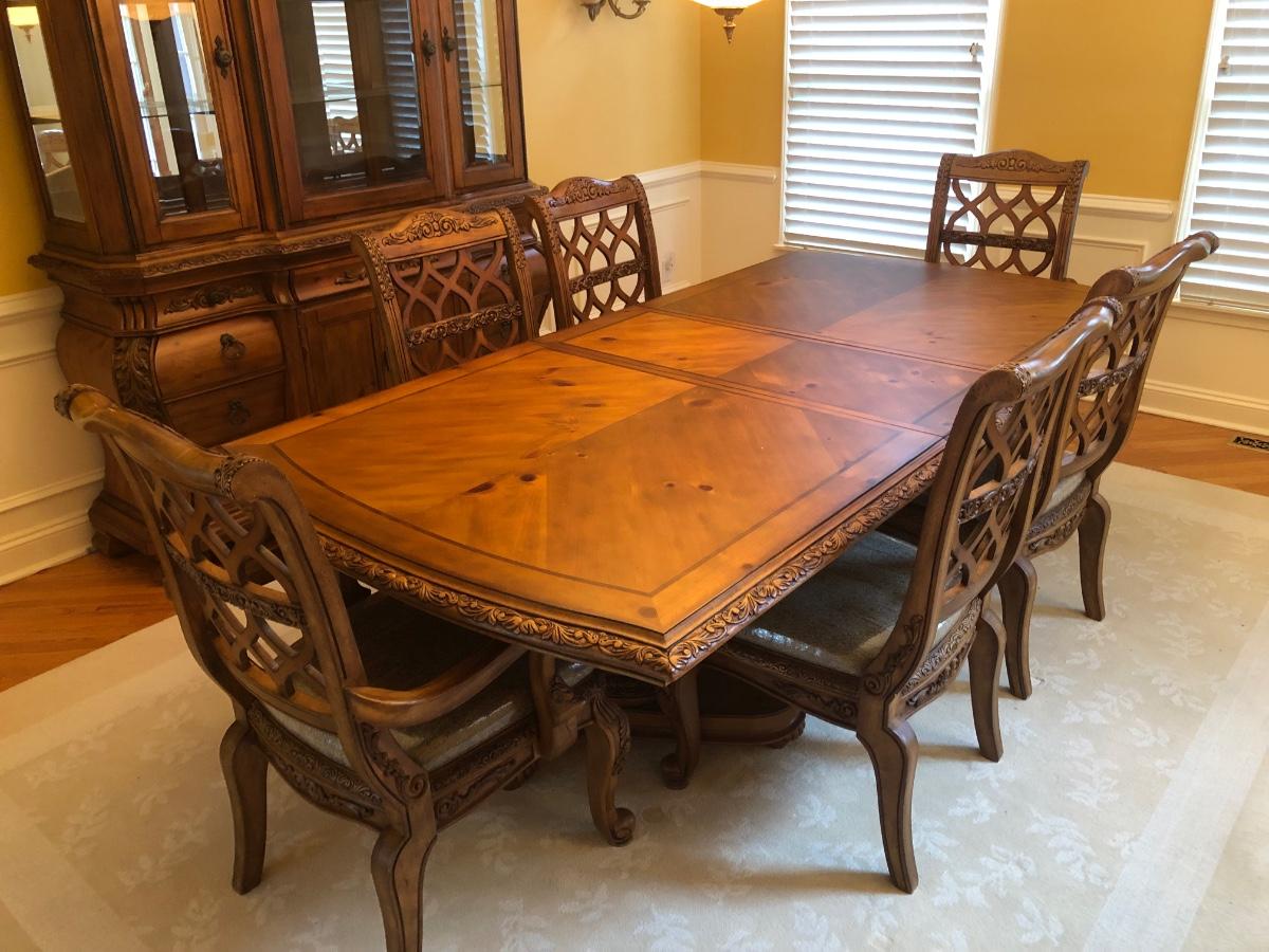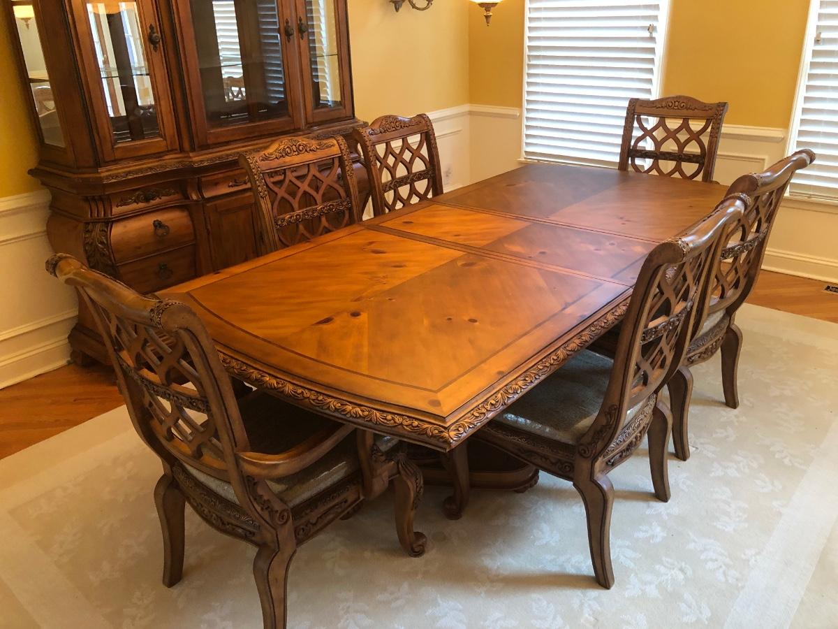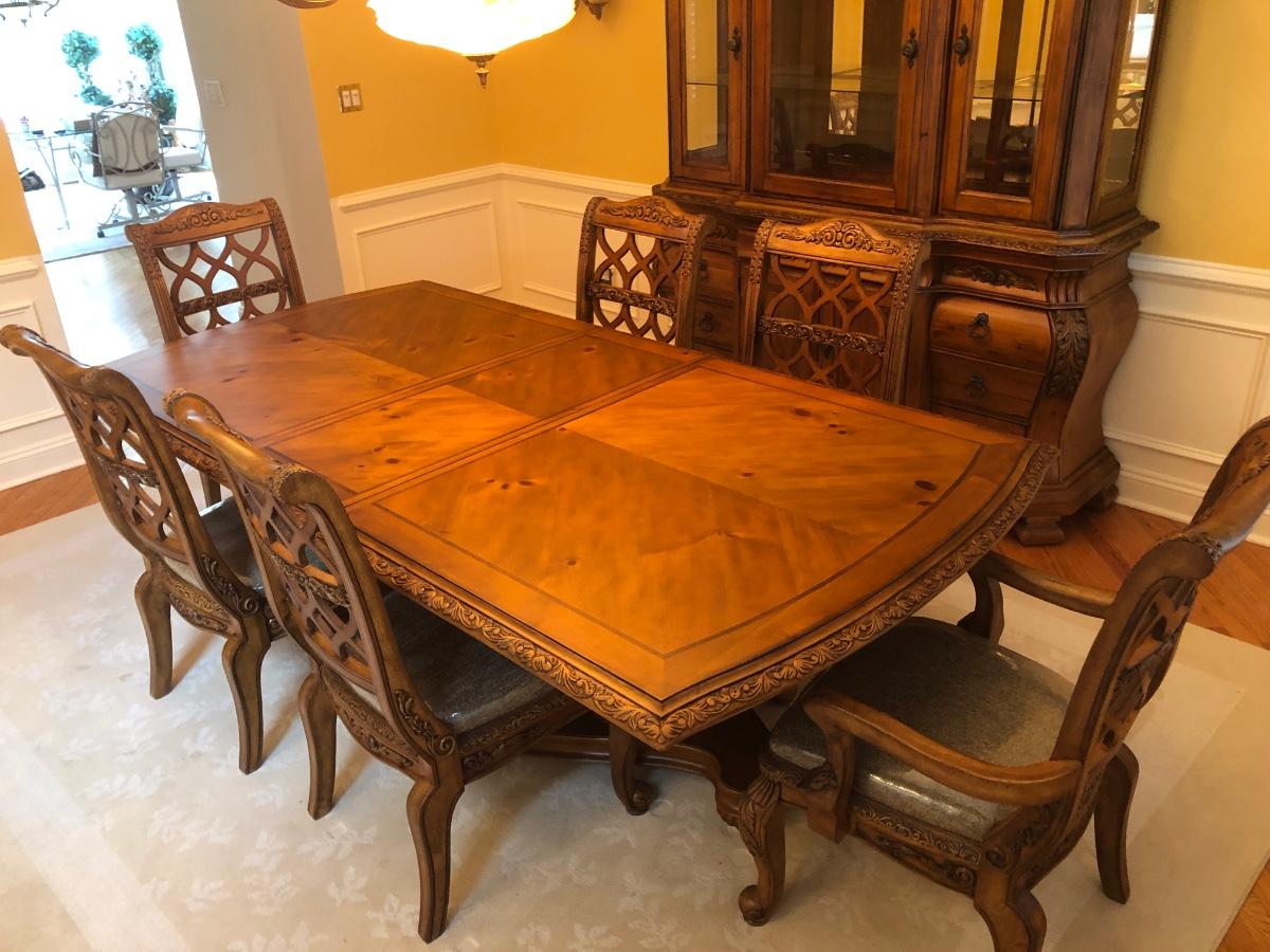 LOT 94D: Elegantly Carved Formal Dining Table w/ 6 Matching Chairs