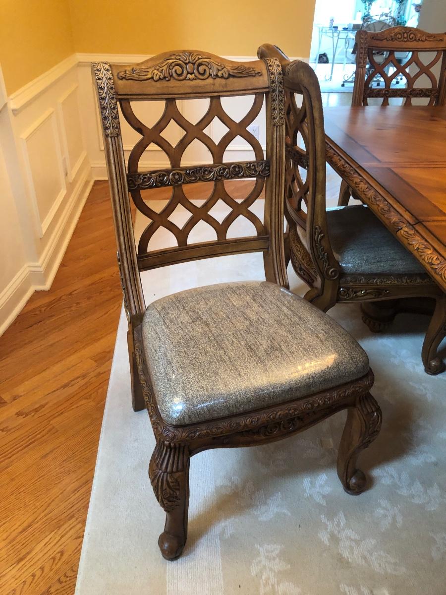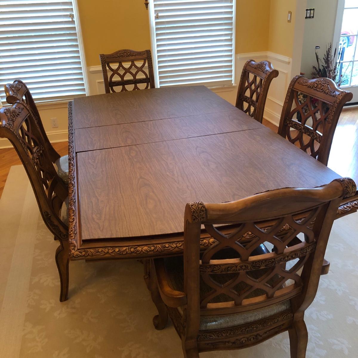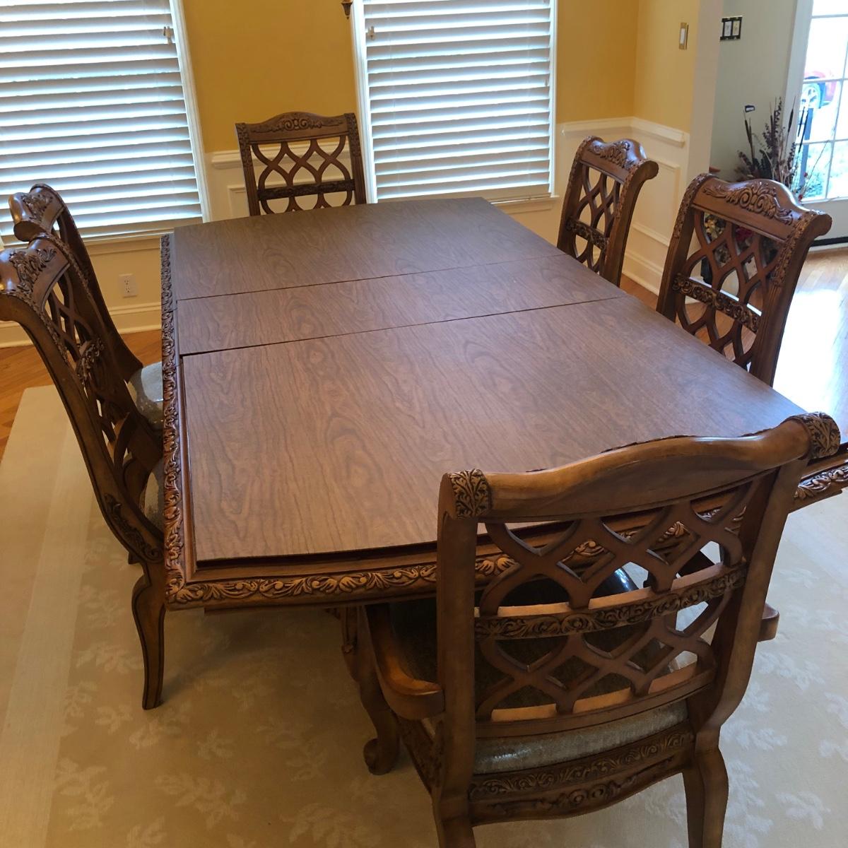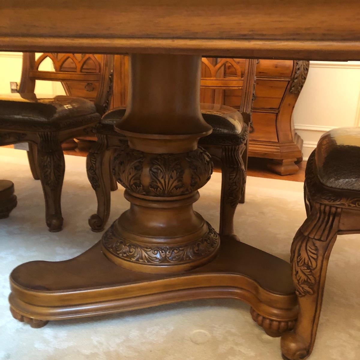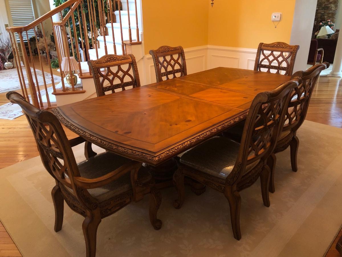 LOT 94D: Elegantly Carved Formal Dining Table w/ 6 Matching Chairs