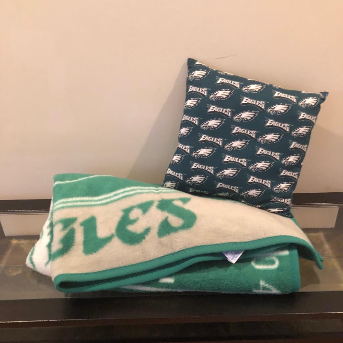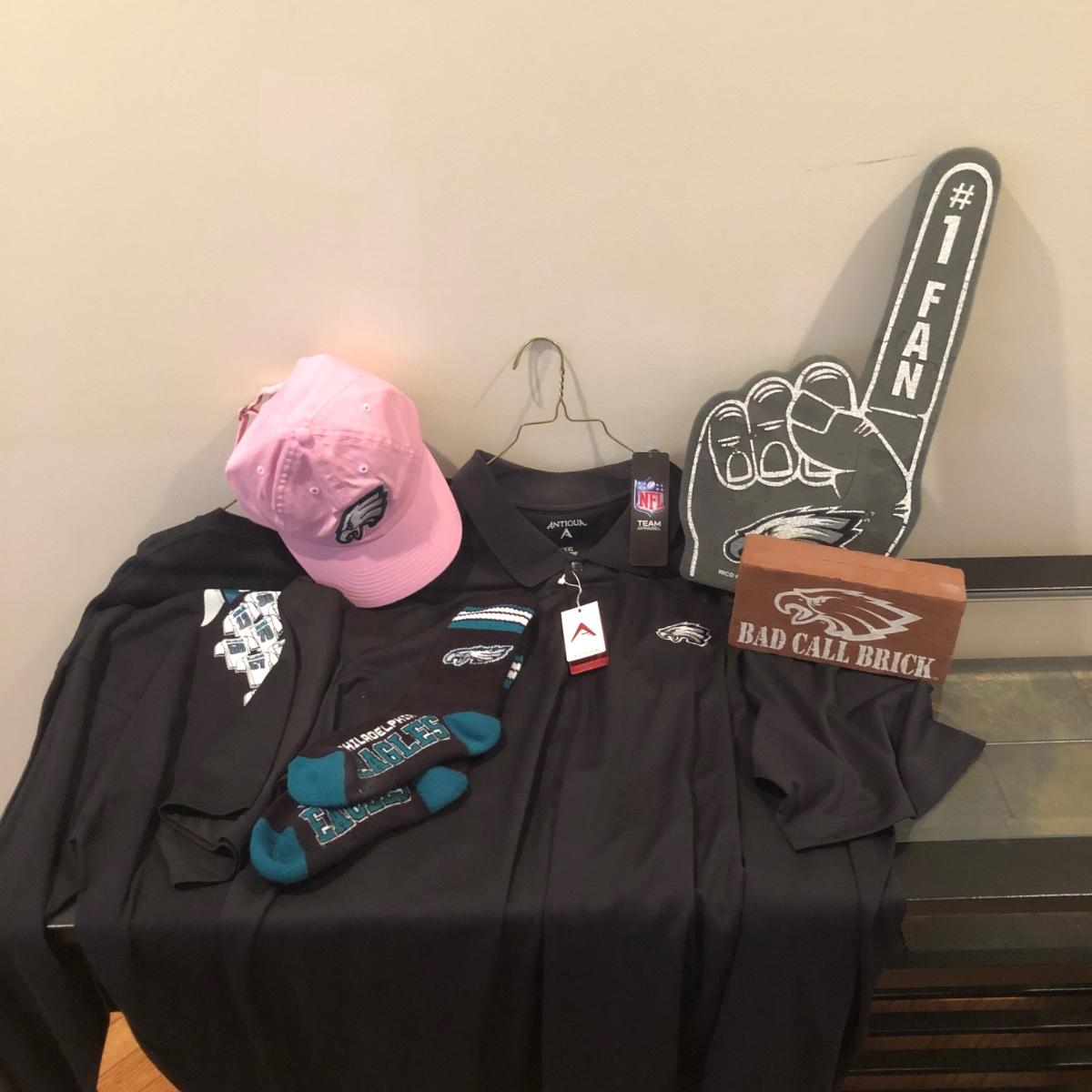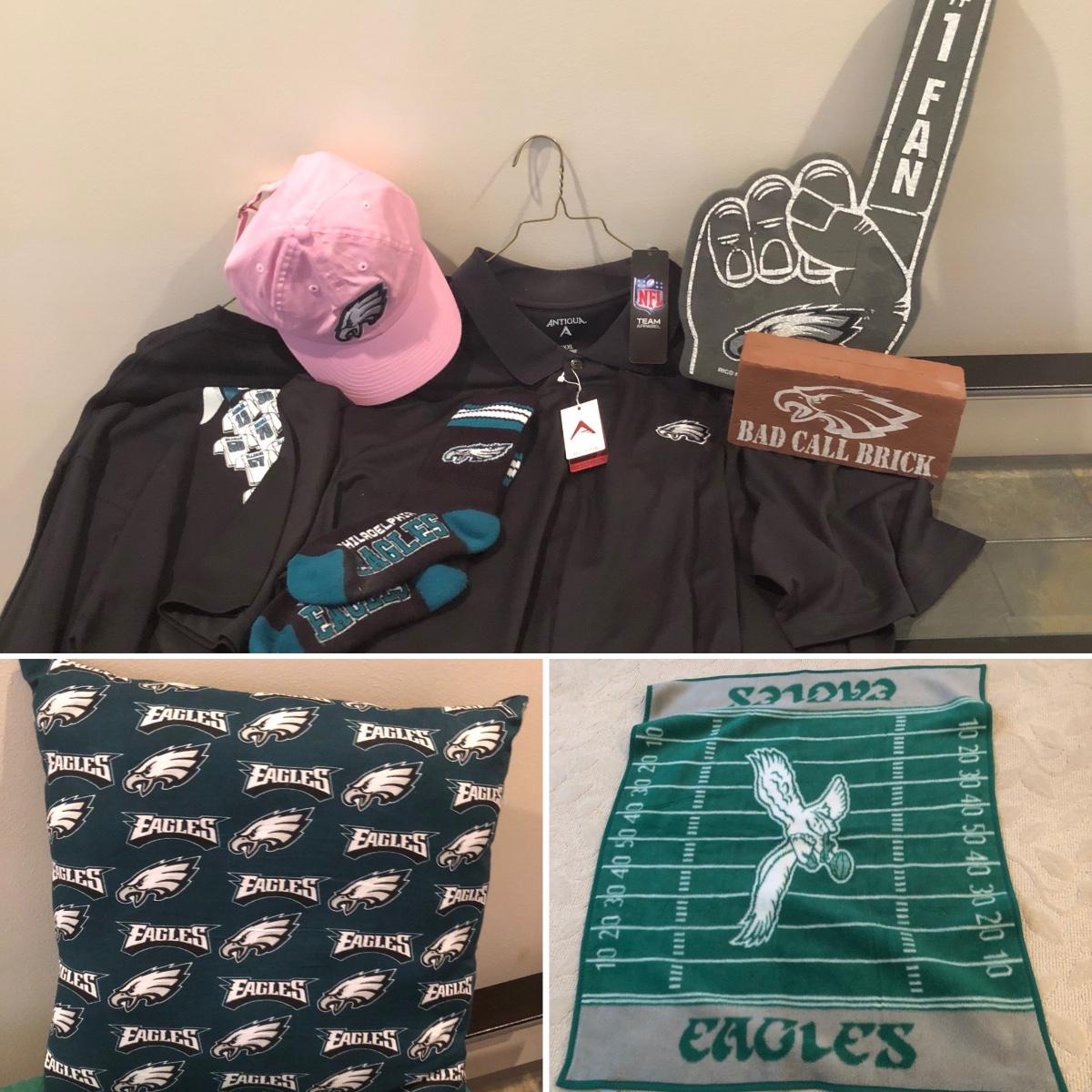 LOT 99X: Philadelphia Eagles Collection - Vintage Throw Blanket, Bad Call Brick, Shirts, Hat, Foam Finger & More