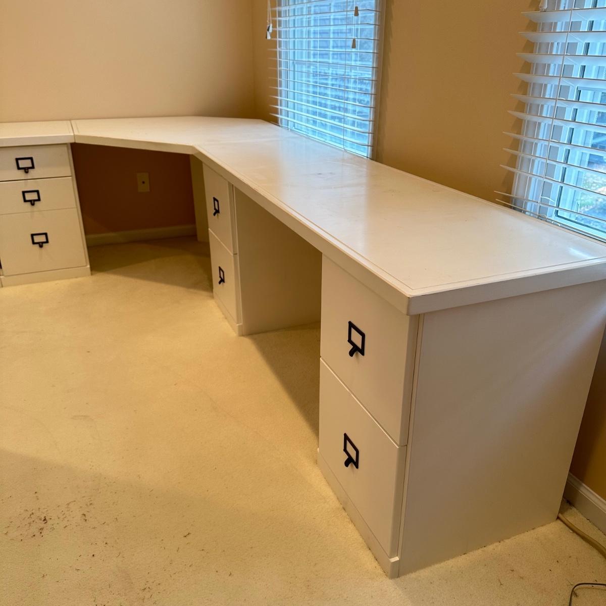 Desk is 27.5x88x104 and the chair is 35x24. Desk and chair have some scratches - Please see all pictures as they are the best representation of the items. The pictures show condition, measurements if taken, and what is included in the lot. Due to the large amount that we photograph and the time frame, we are not always able to take measurements. All items unless noted, are pre-owned and have been used. If you purchased furniture, you must bring help. We do not allow one person to carry large furniture out on their own. Bring help, tools and a truck for the safety of our client’s homes, and your personal safety. Any damages that result to the property including walls, and floors due to moving of the furniture will be charged to the buyer. Company policy. Thank you.