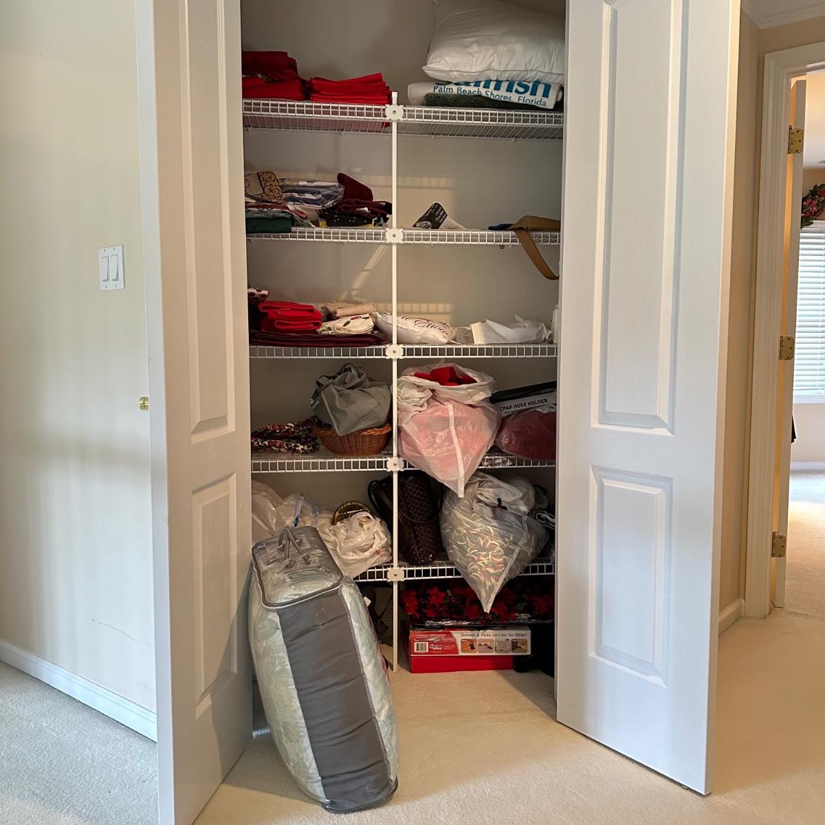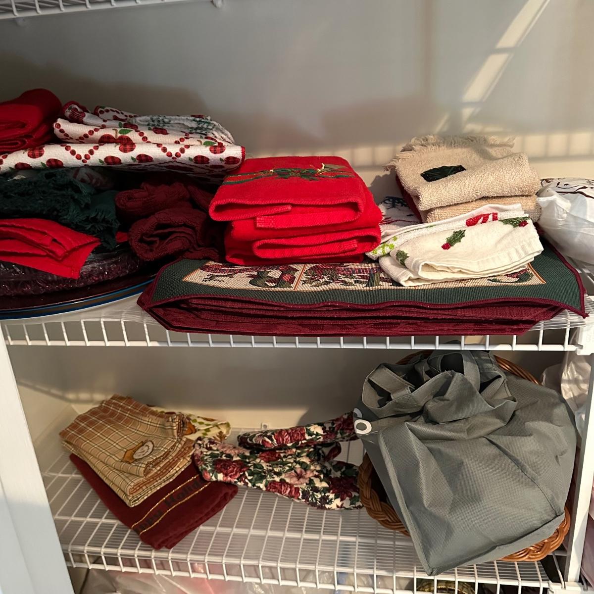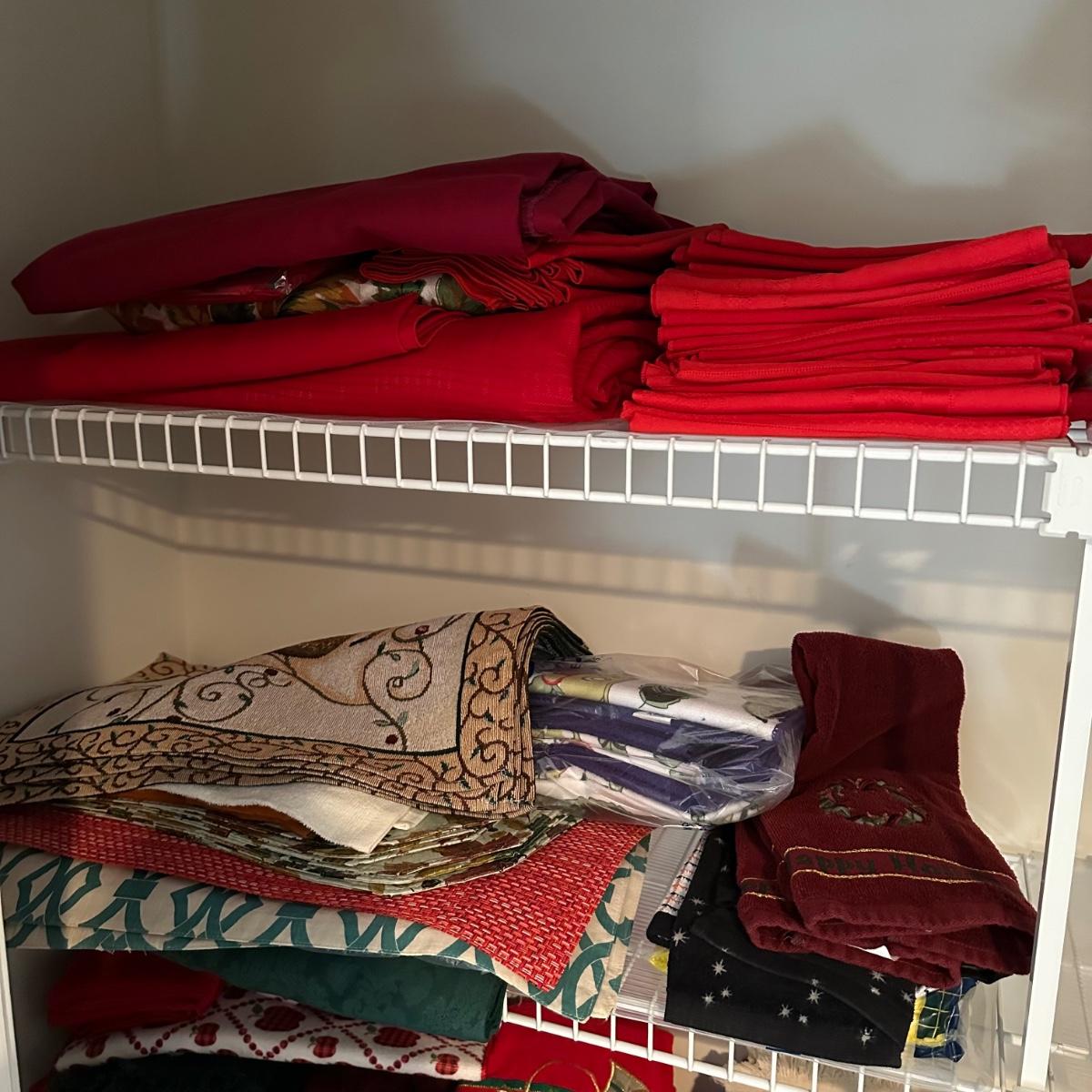 LOT 115UC: Entire Contents Of Closet - Linens, Decorations And More