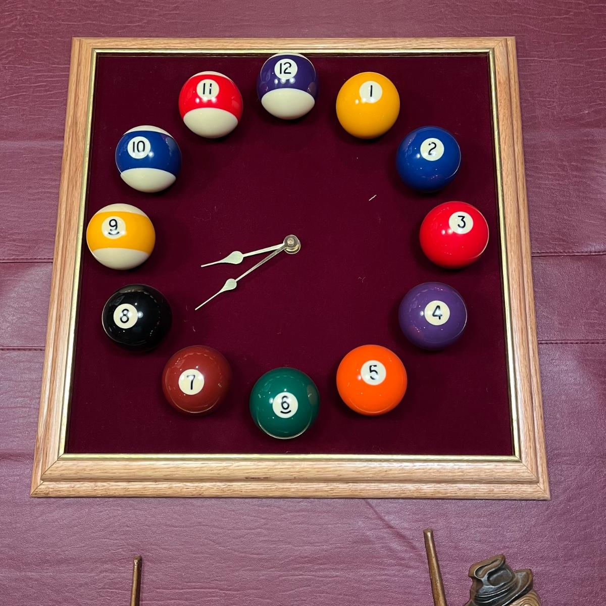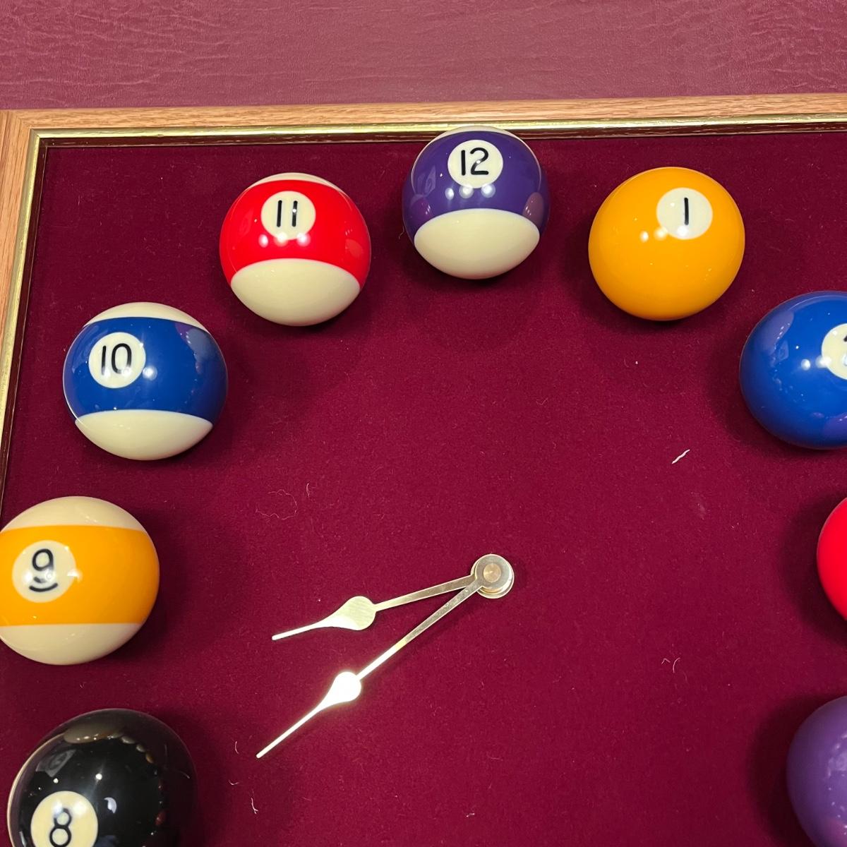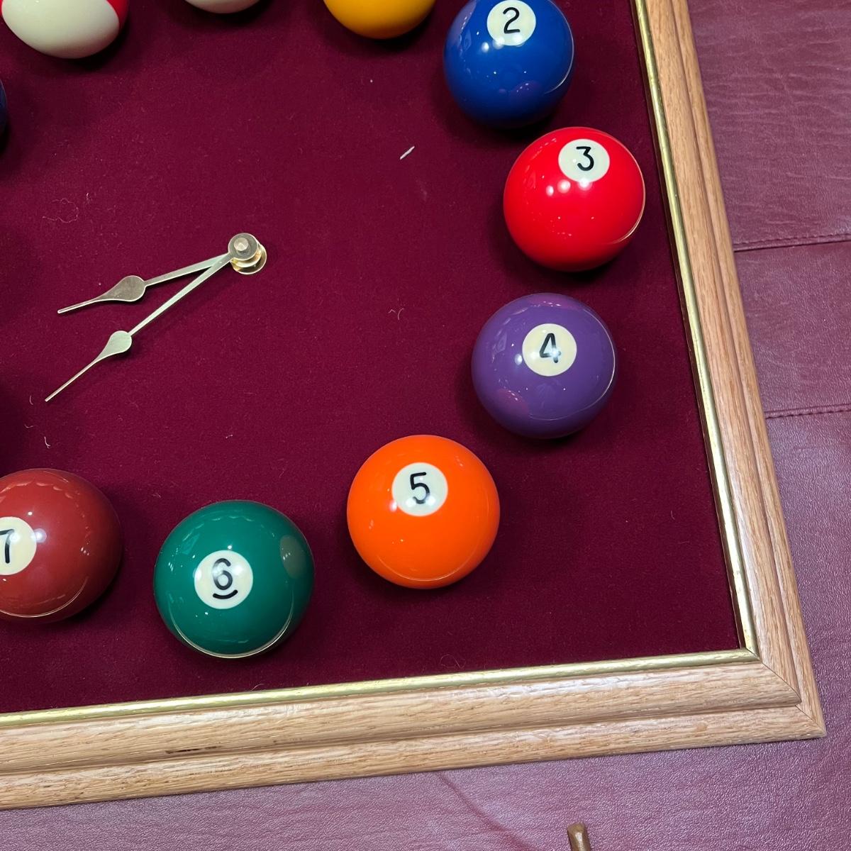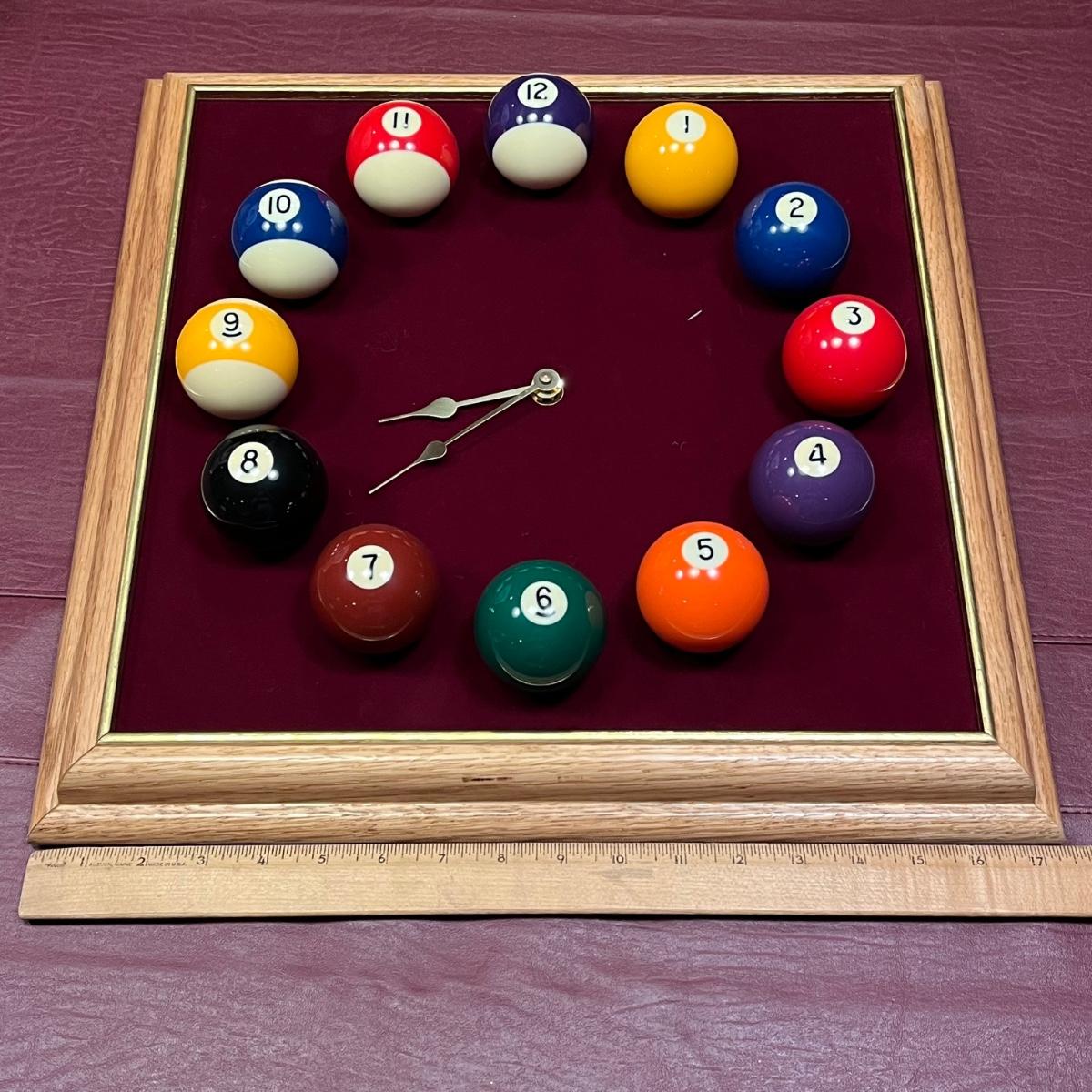 LOT 122B: Pool Themed Decor - Billiard Ball Clock, Metal Wall Hanging
