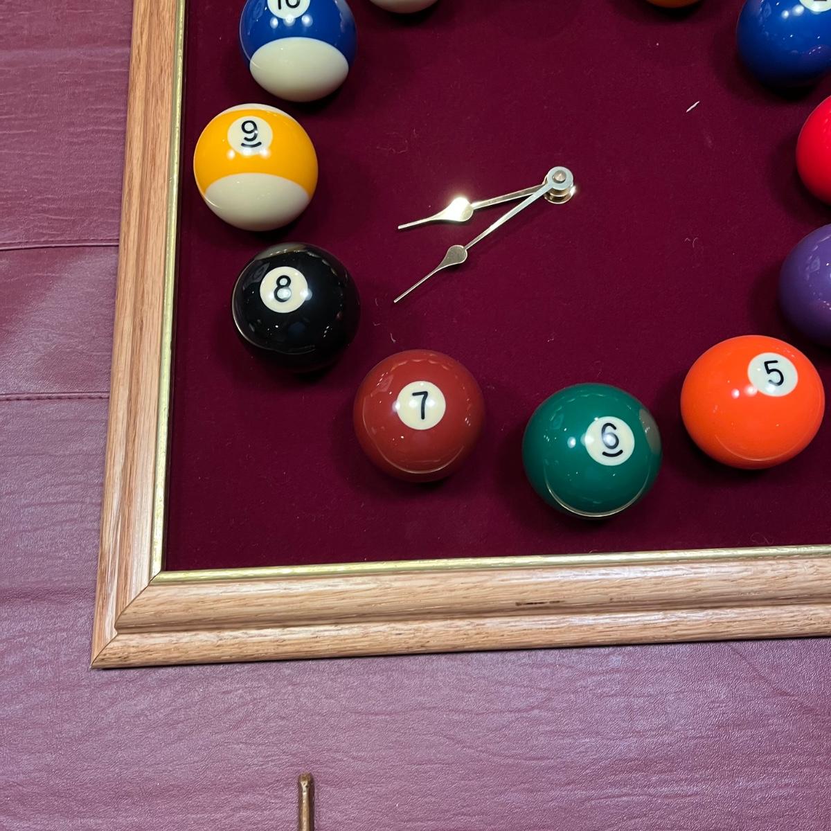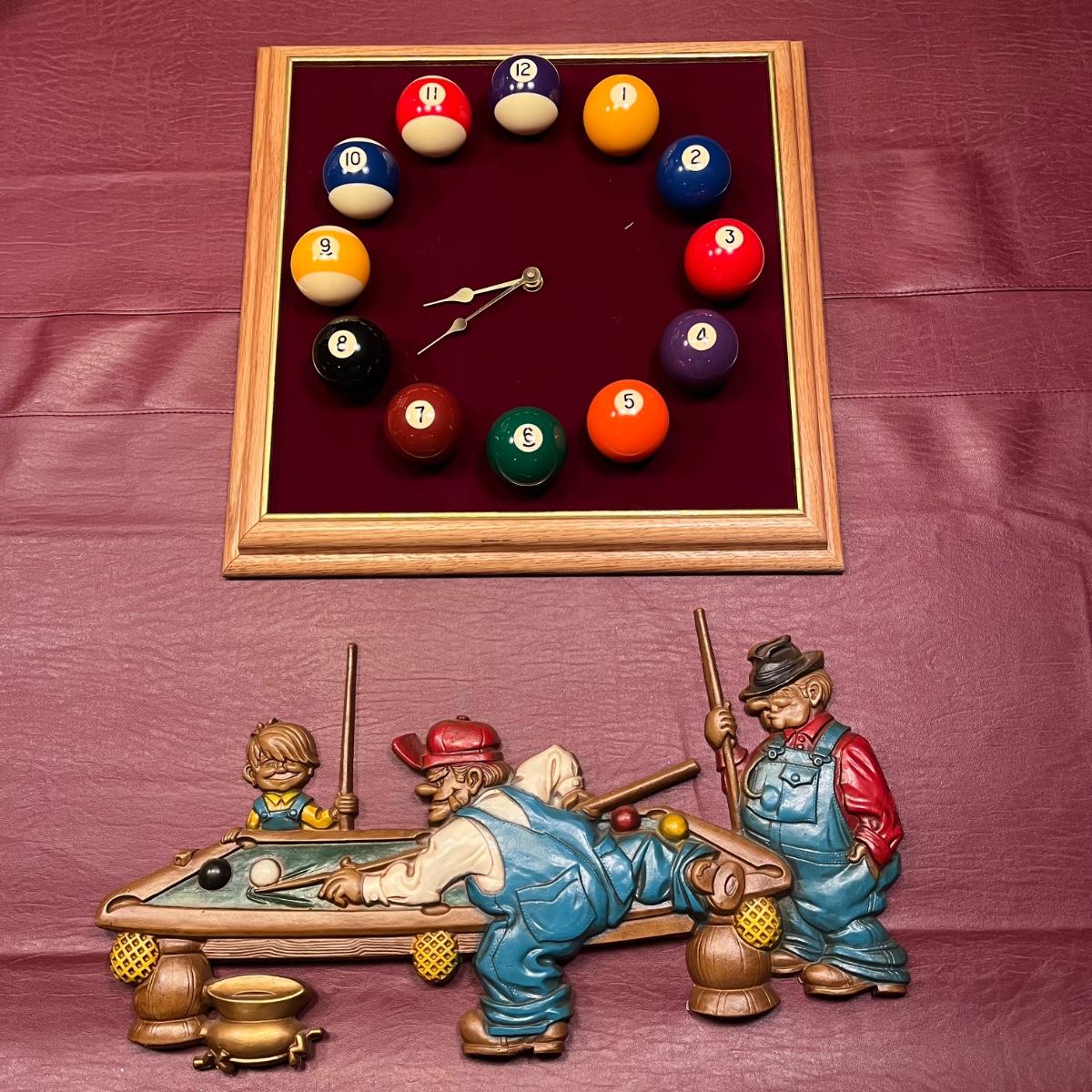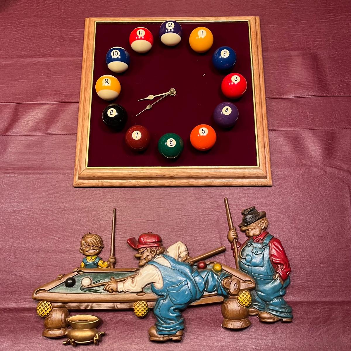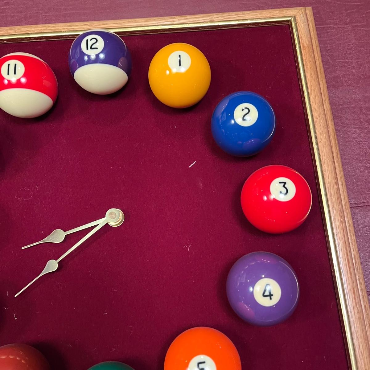 LOT 122B: Pool Themed Decor - Billiard Ball Clock, Metal Wall Hanging