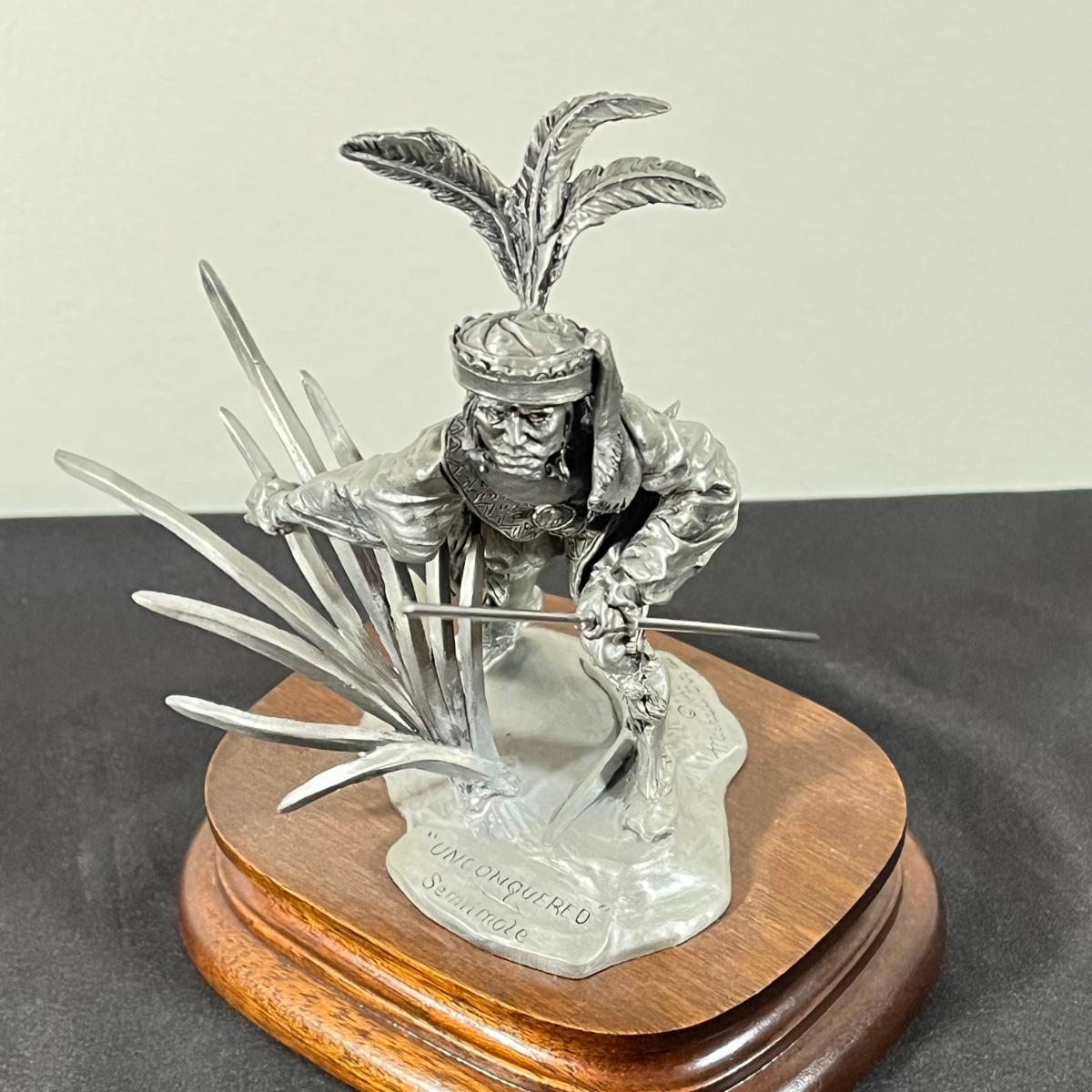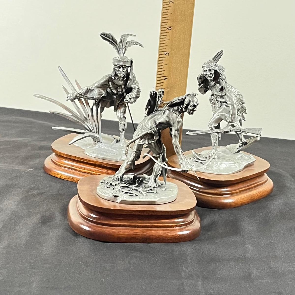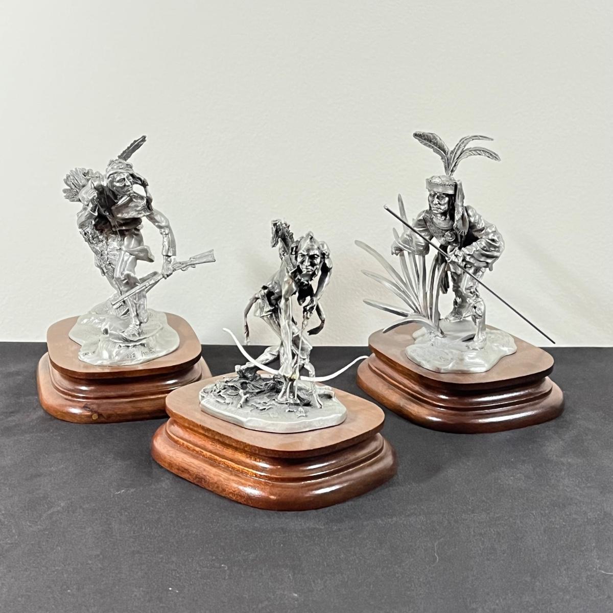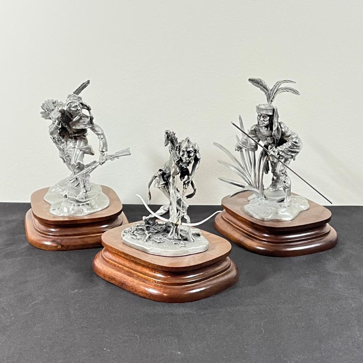 LOT 125B: Three Native American Chilmark Pewter Figurines by Artist Michael Boyett - Iroquois Warfare, Unconquered Seminole, Snow Hunter Blackfoot