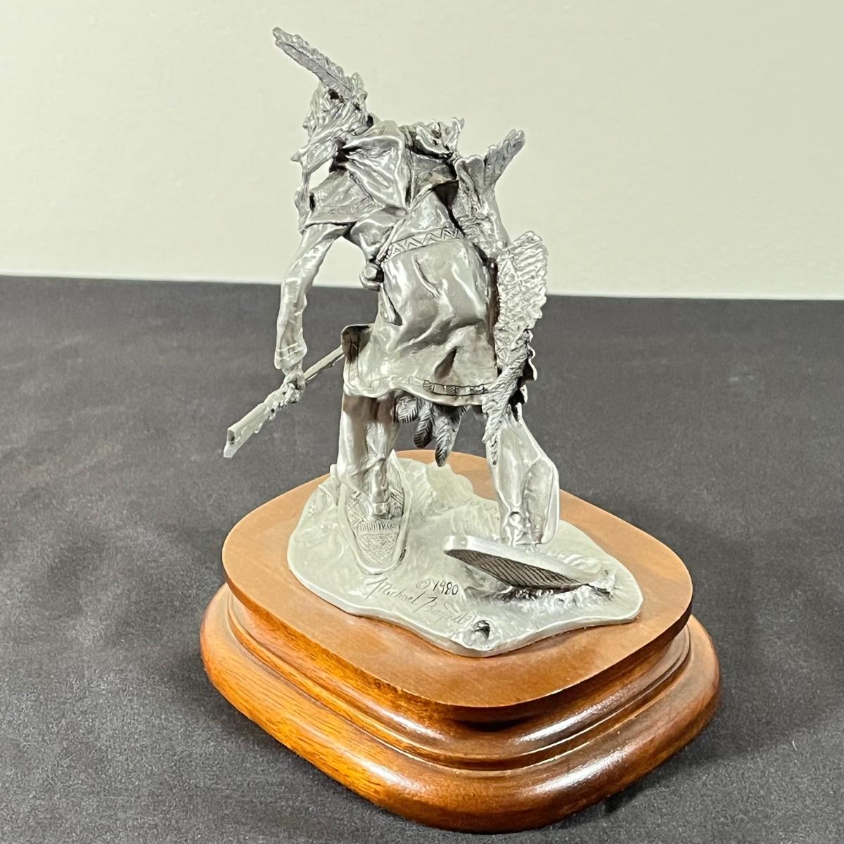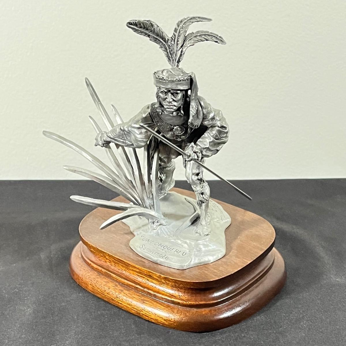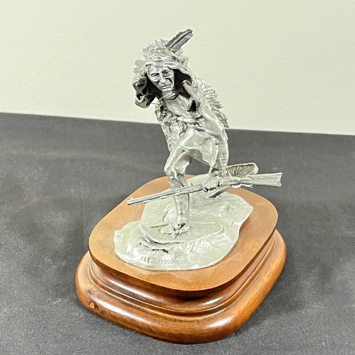LOT 125B: Three Native American Chilmark Pewter Figurines by Artist Michael Boyett - Iroquois Warfare, Unconquered Seminole, Snow Hunter Blackfoot