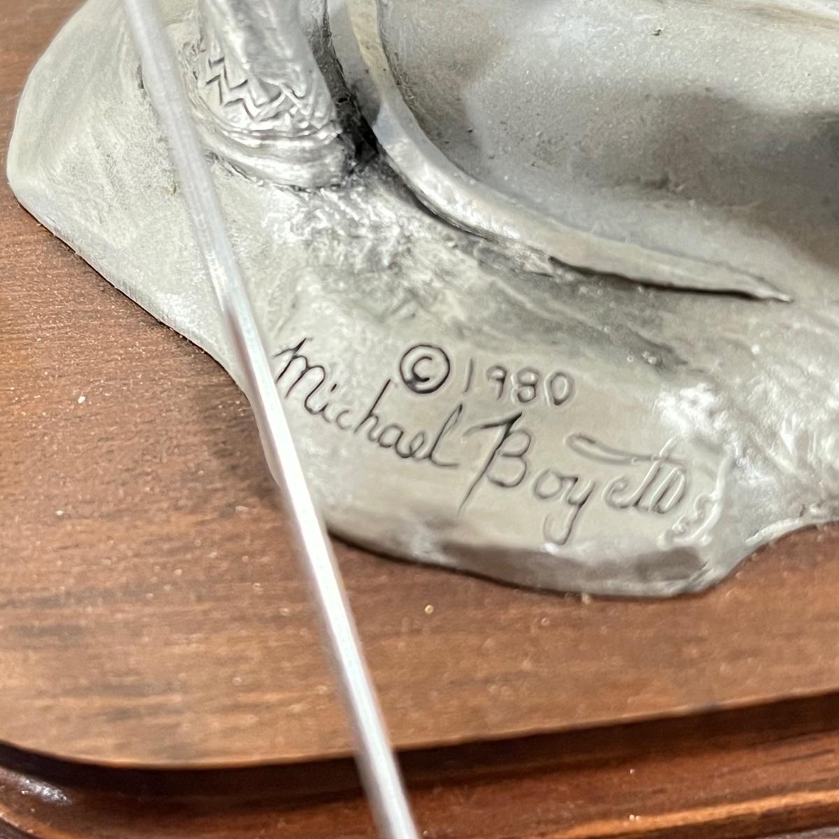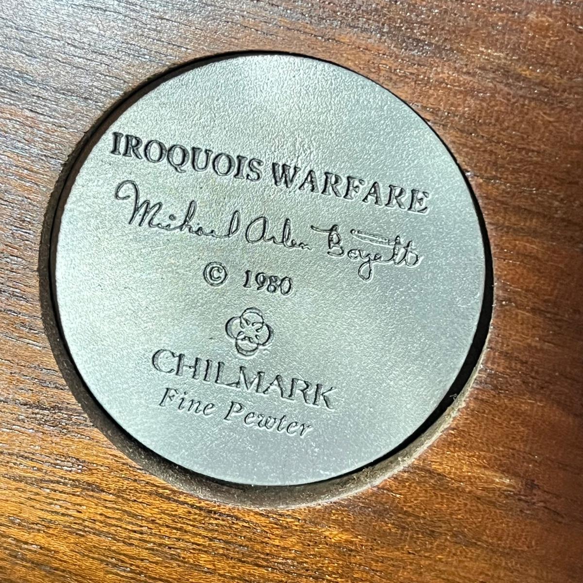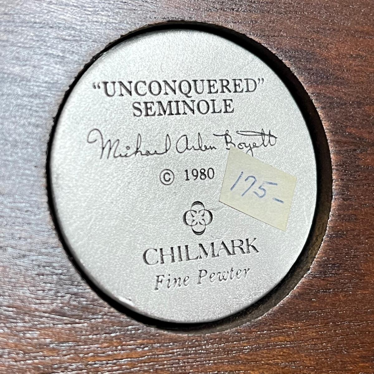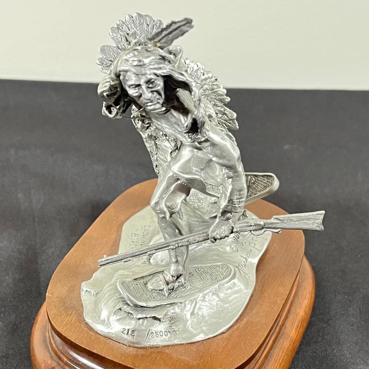 LOT 125B: Three Native American Chilmark Pewter Figurines by Artist Michael Boyett - Iroquois Warfare, Unconquered Seminole, Snow Hunter Blackfoot
