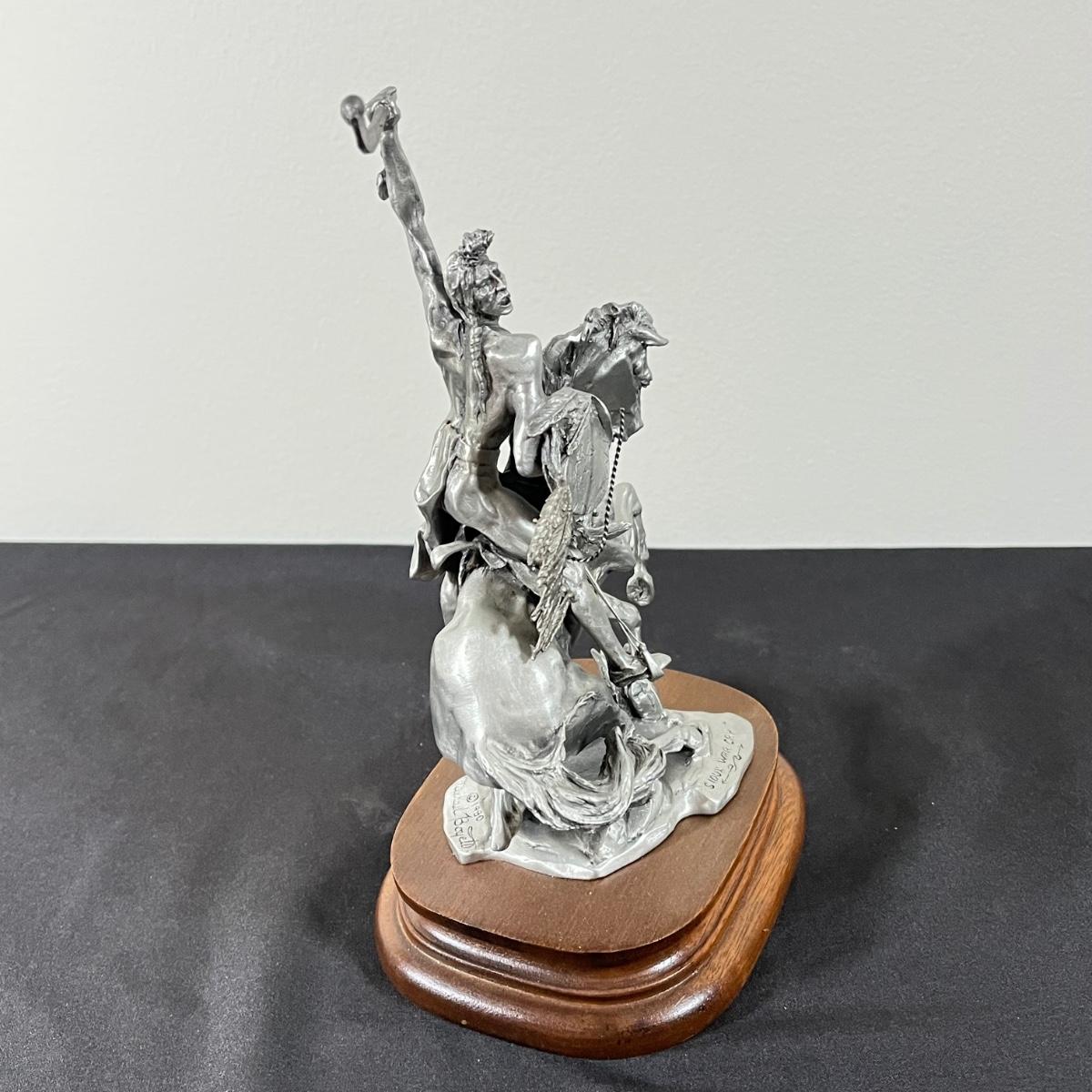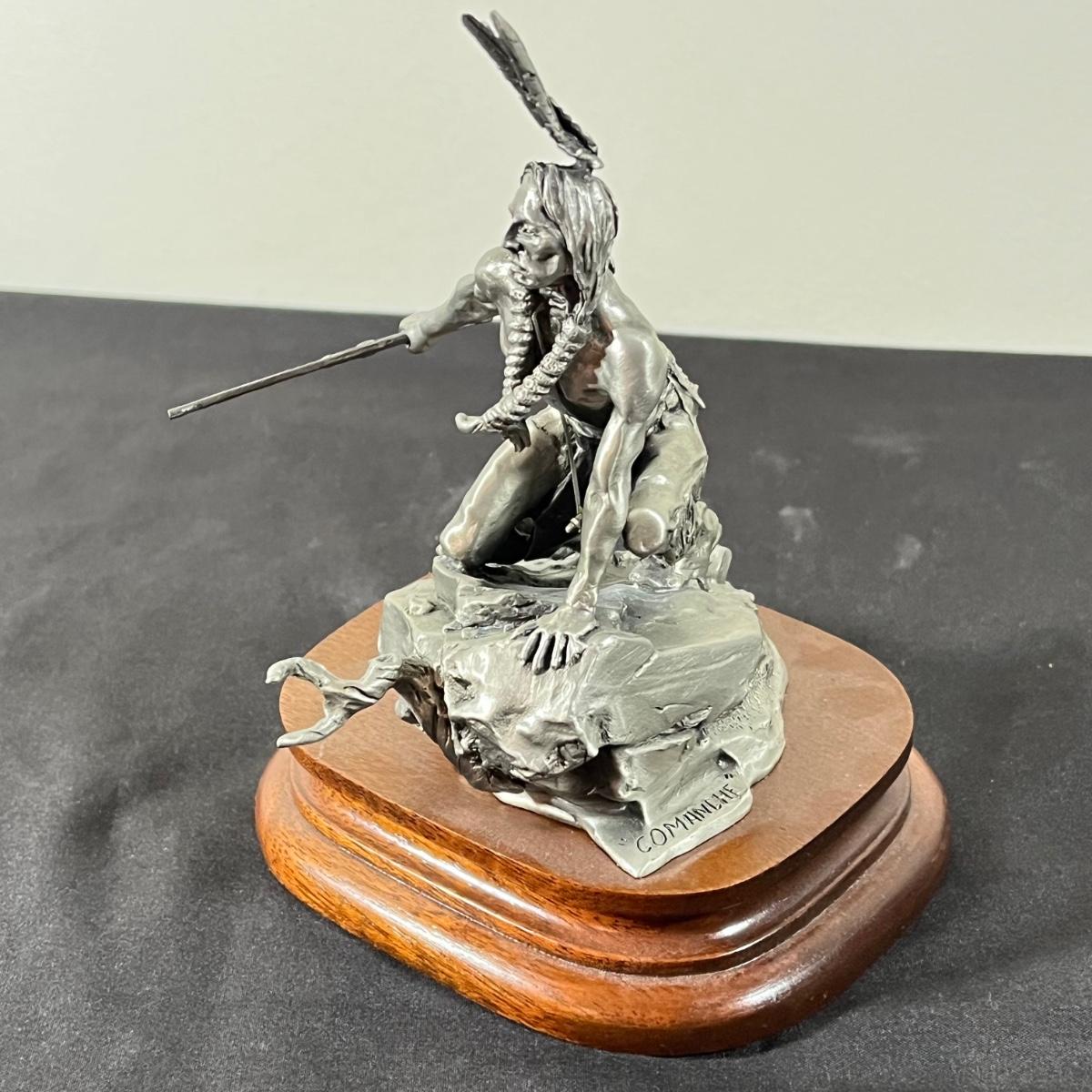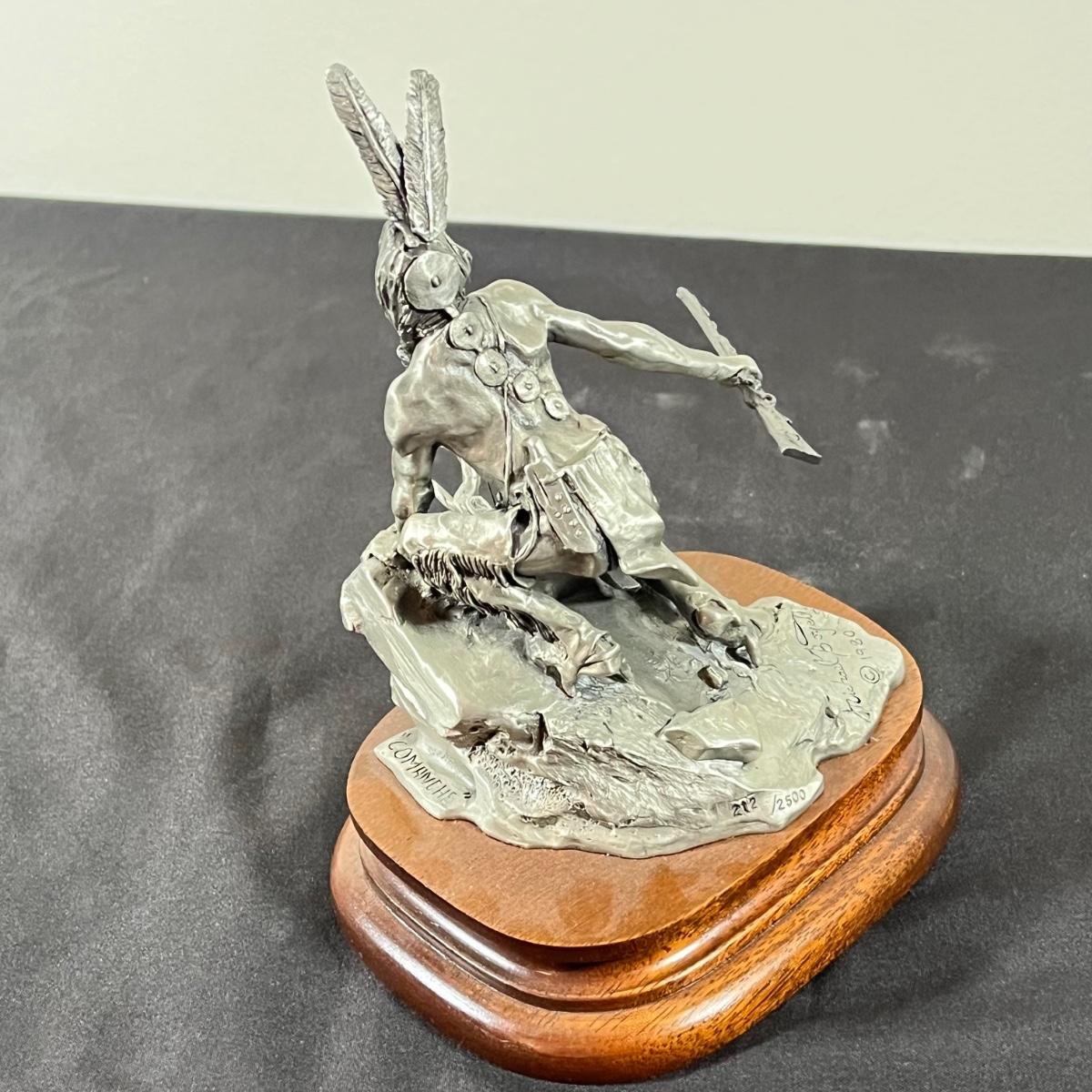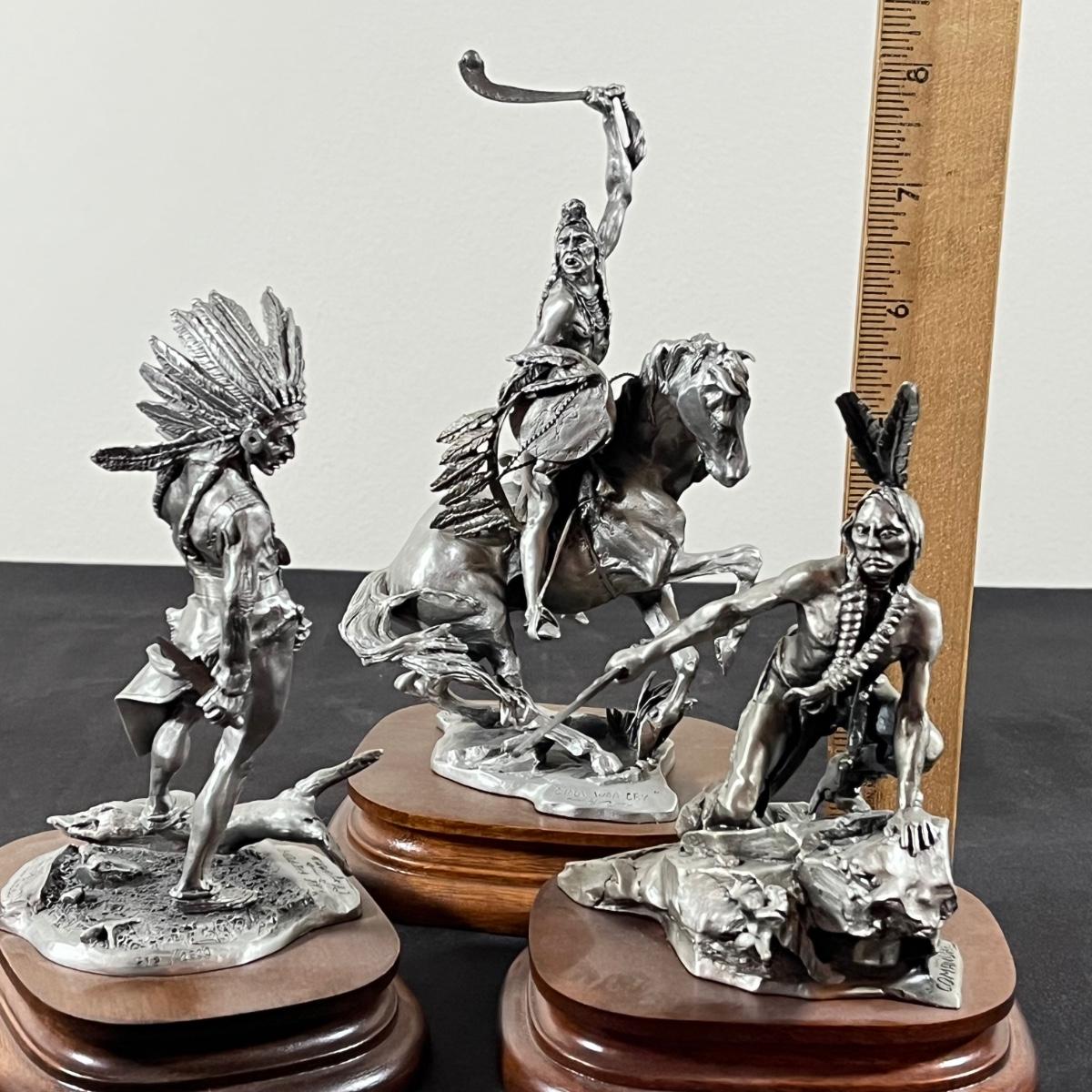 LOT 127B: Three Native American Chilmark Pewter Figurines by Artist Michael Boyett - Sioux War Cry, Comanche, The Victor Cheyenne