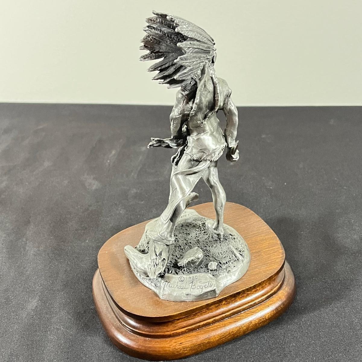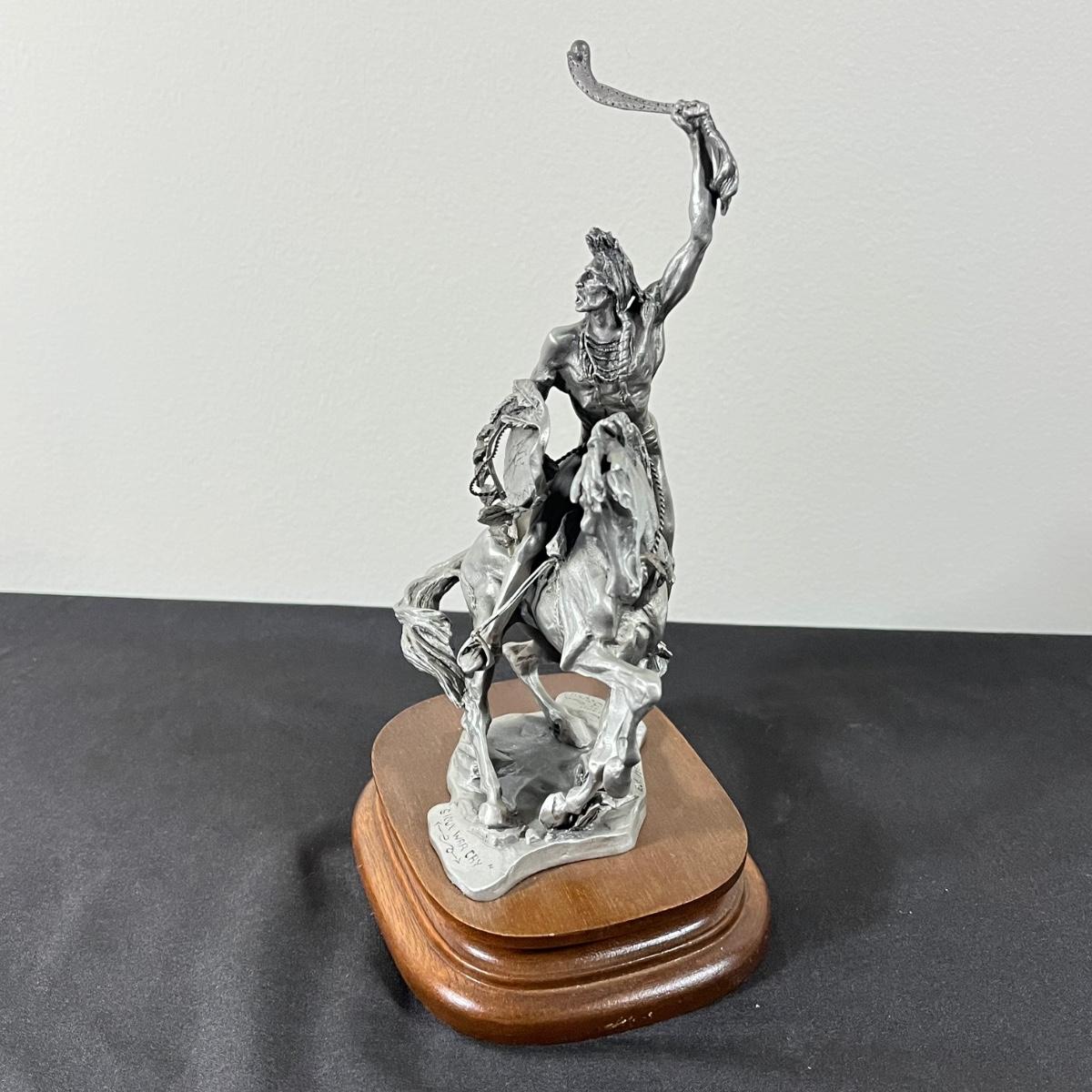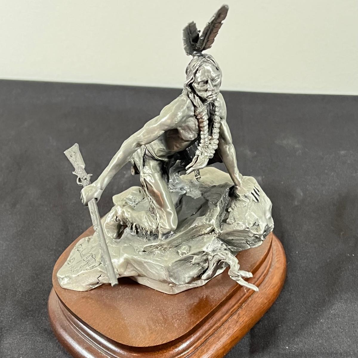 LOT 127B: Three Native American Chilmark Pewter Figurines by Artist Michael Boyett - Sioux War Cry, Comanche, The Victor Cheyenne