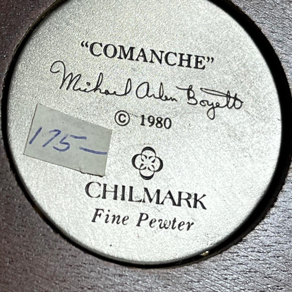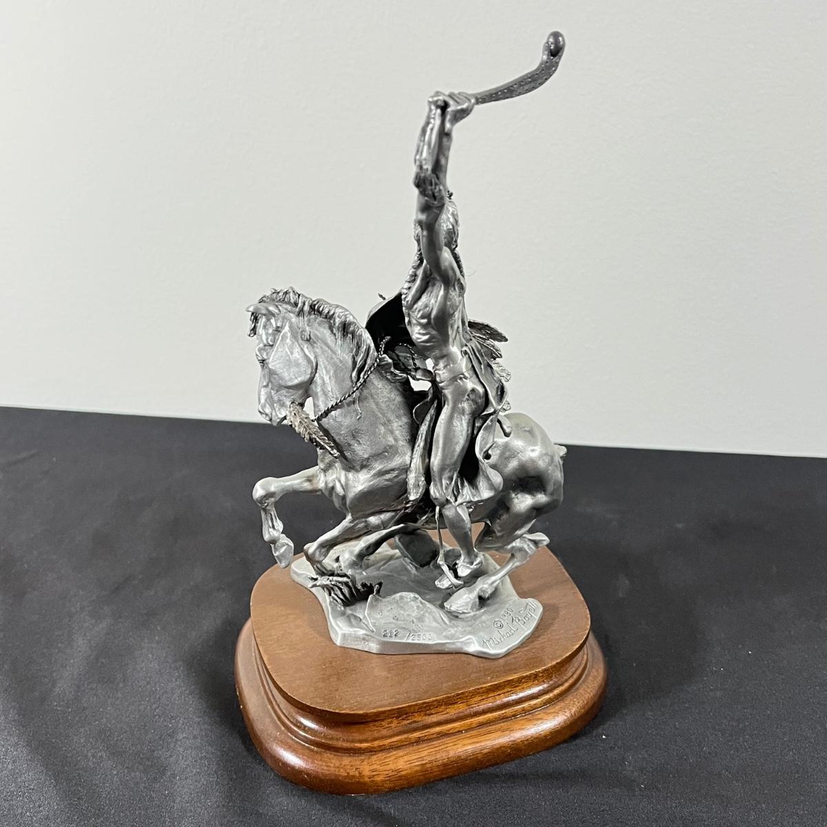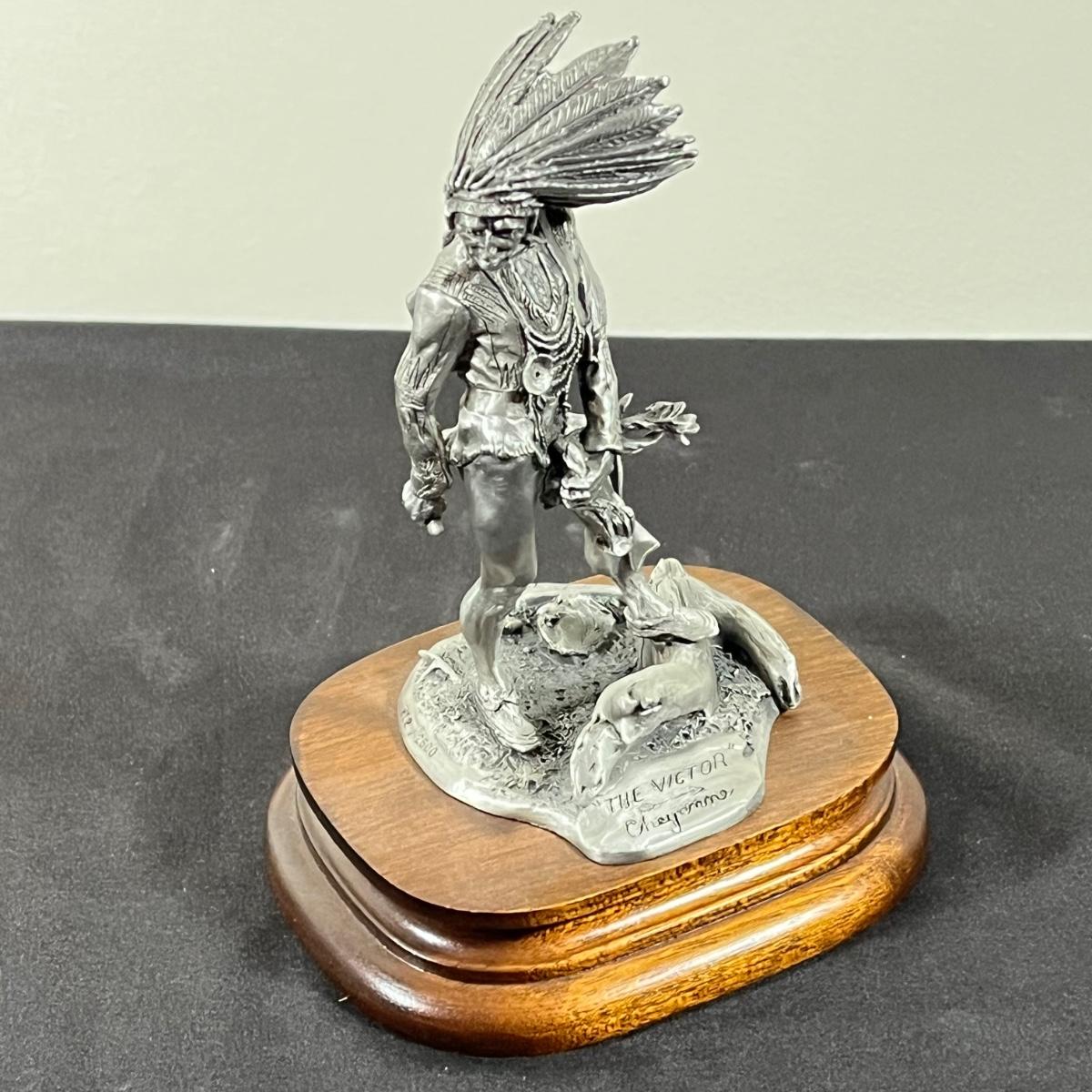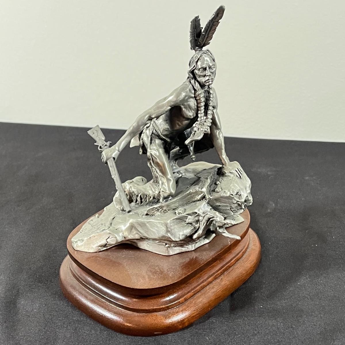 LOT 127B: Three Native American Chilmark Pewter Figurines by Artist Michael Boyett - Sioux War Cry, Comanche, The Victor Cheyenne