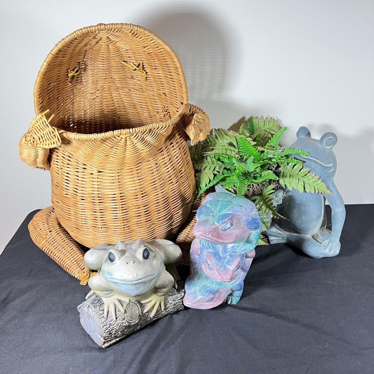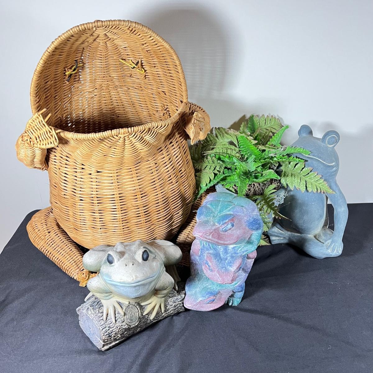 LOT 129B: Frog and Toad Decor - Wicker Basket, Planter and More