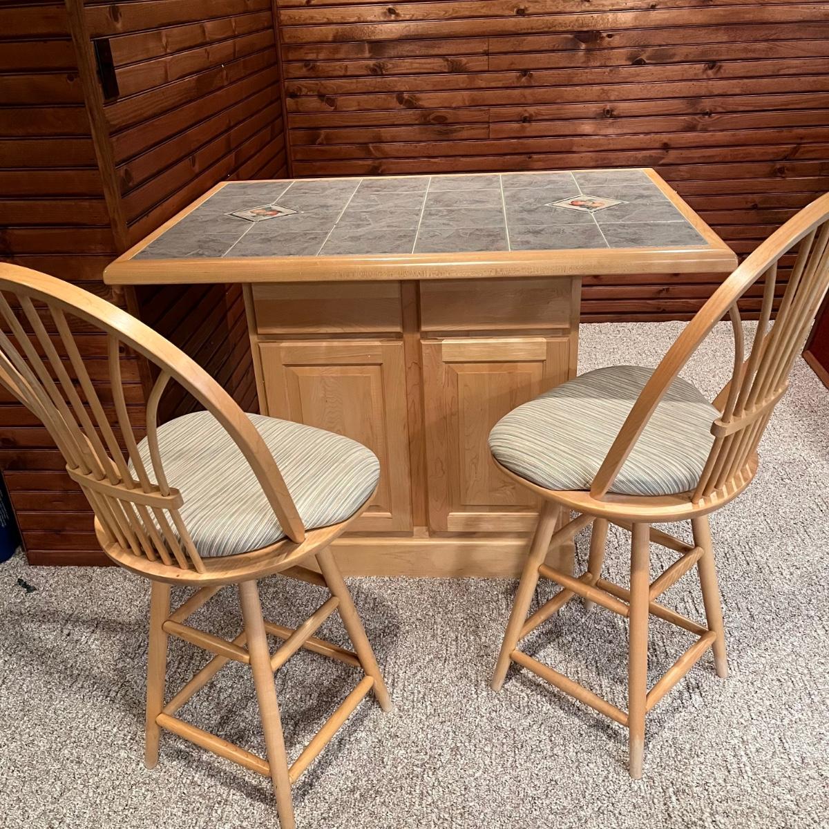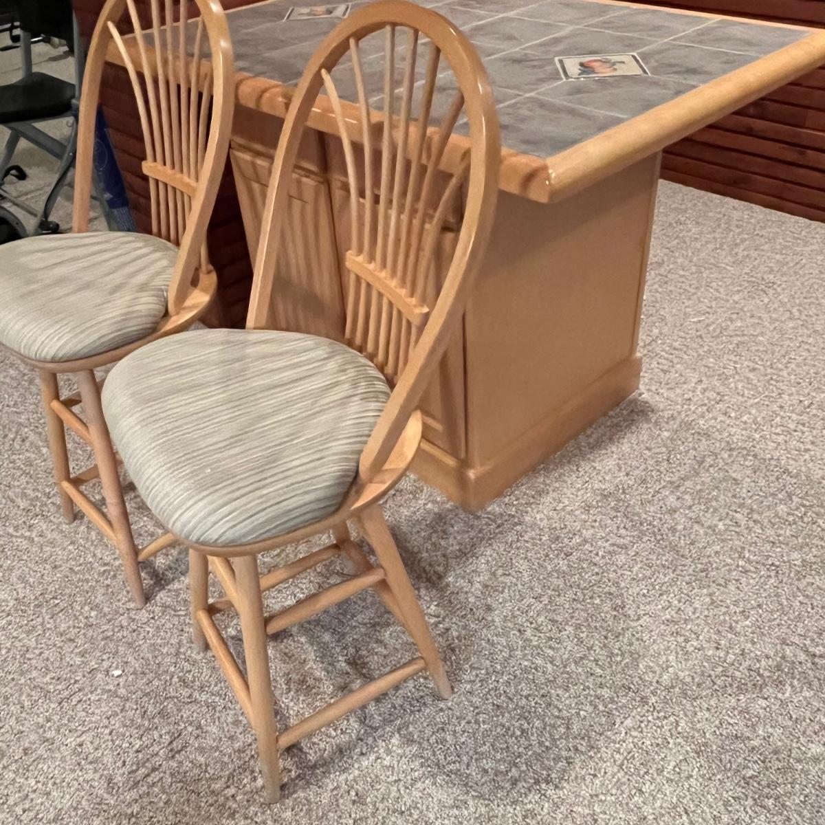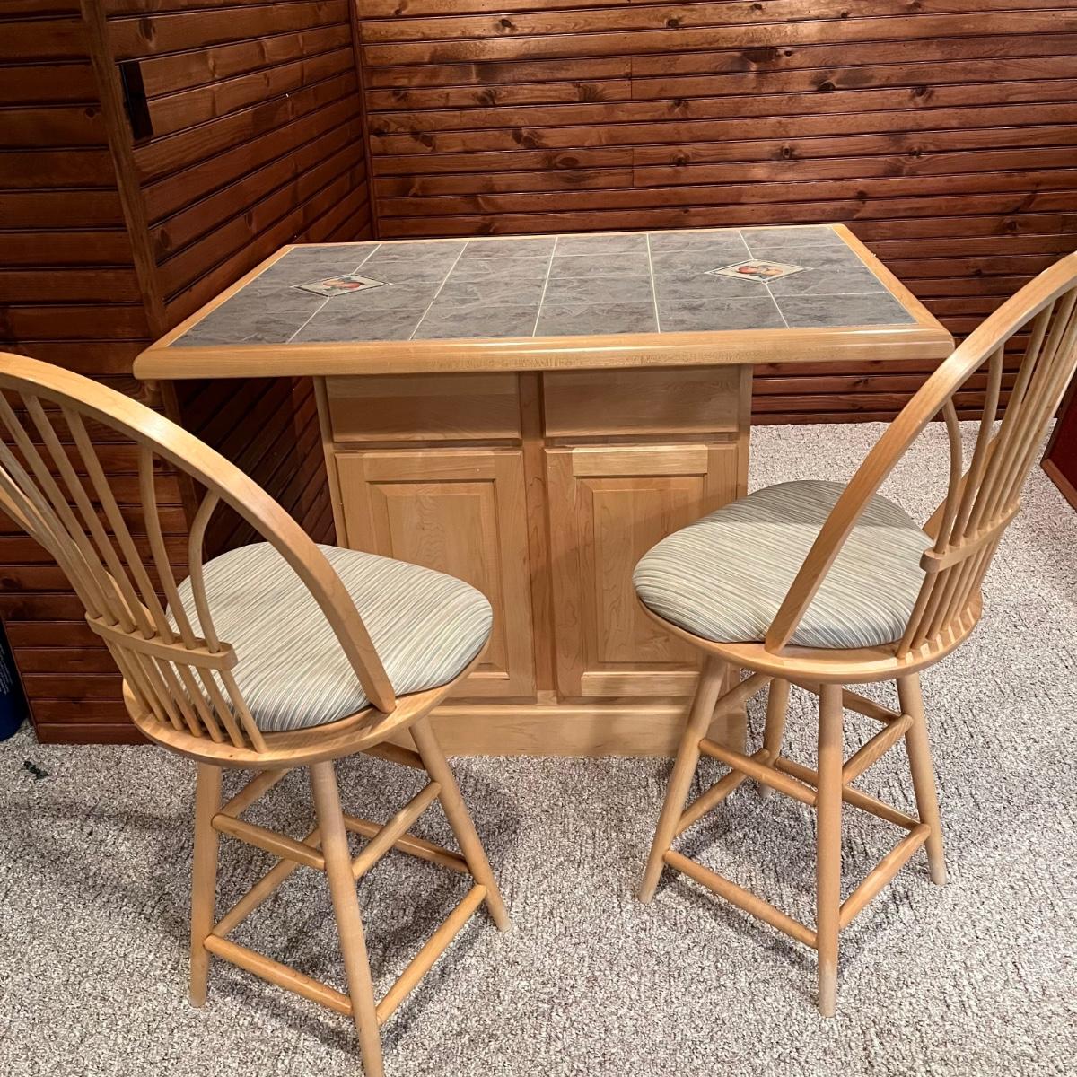 LOT 137B: Bar / Kitchen Island w/ Tile Counter Top and Two Swivel Stools
