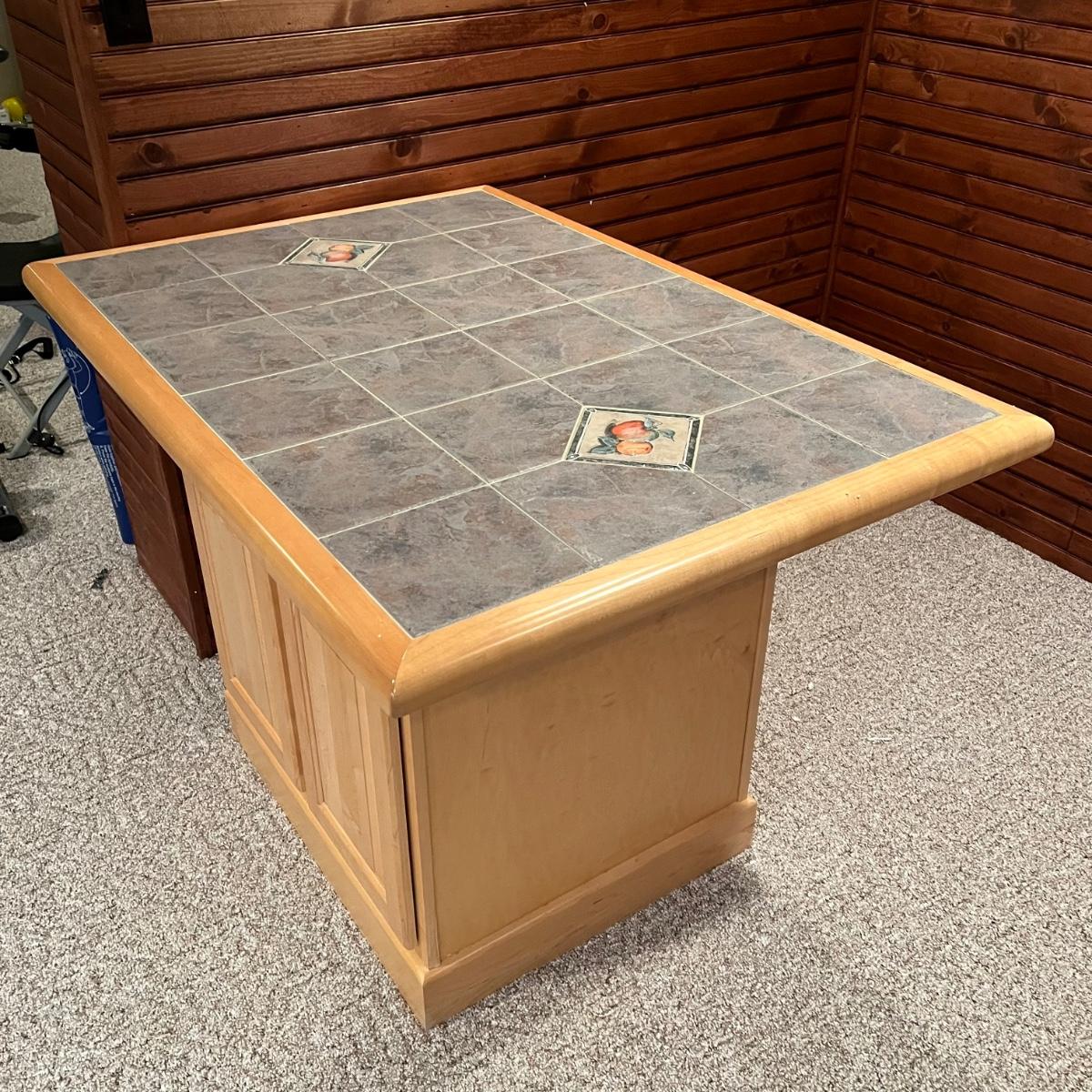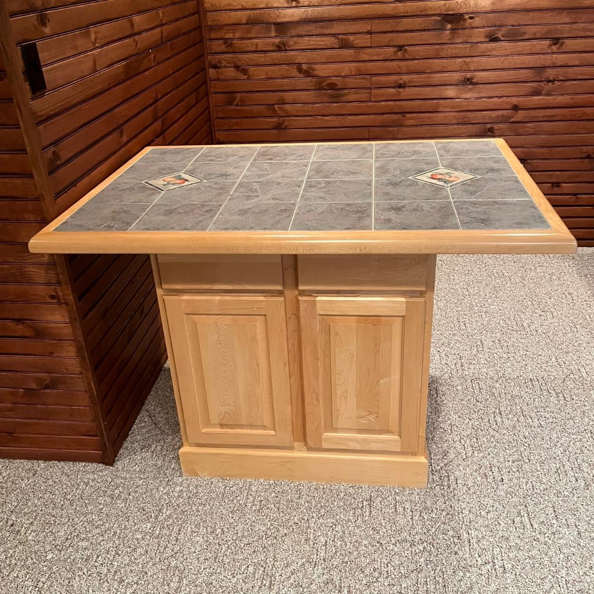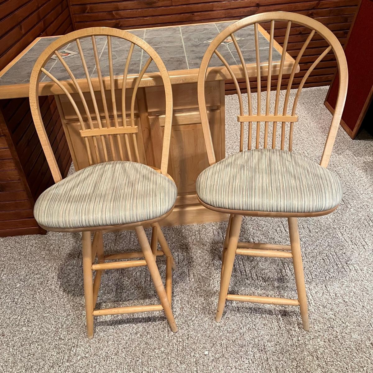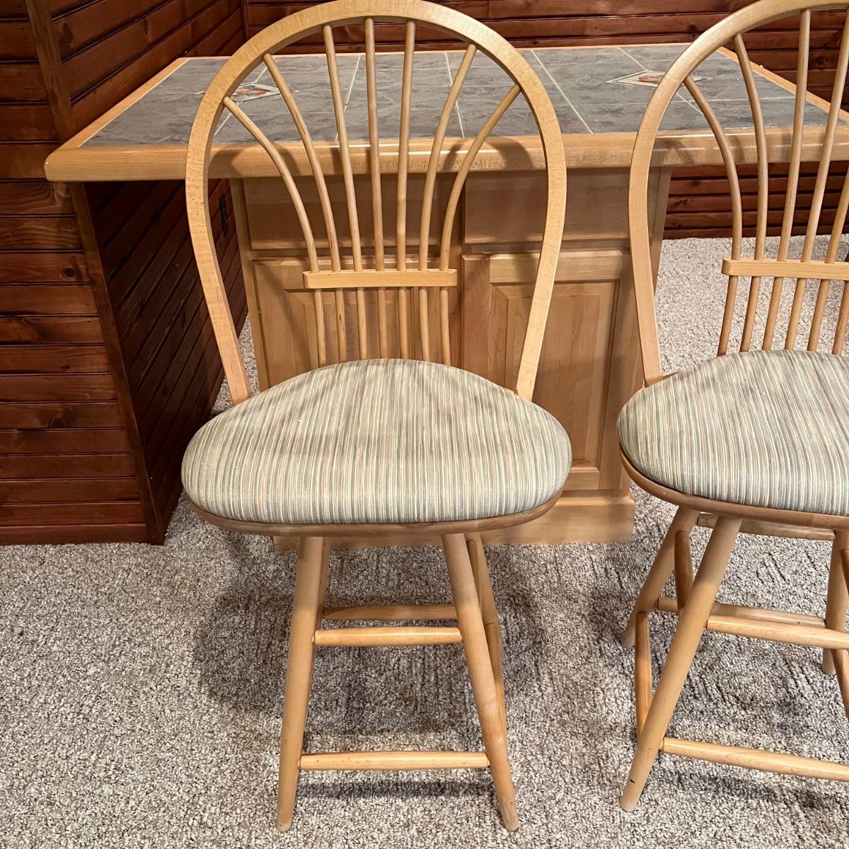 LOT 137B: Bar / Kitchen Island w/ Tile Counter Top and Two Swivel Stools
