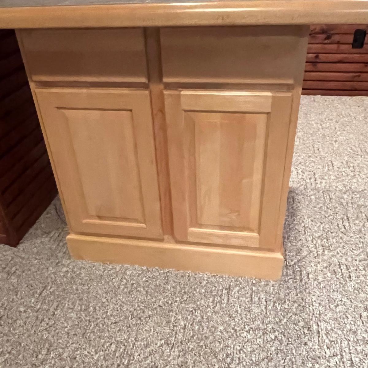 Counter top not secured to cabinet base.