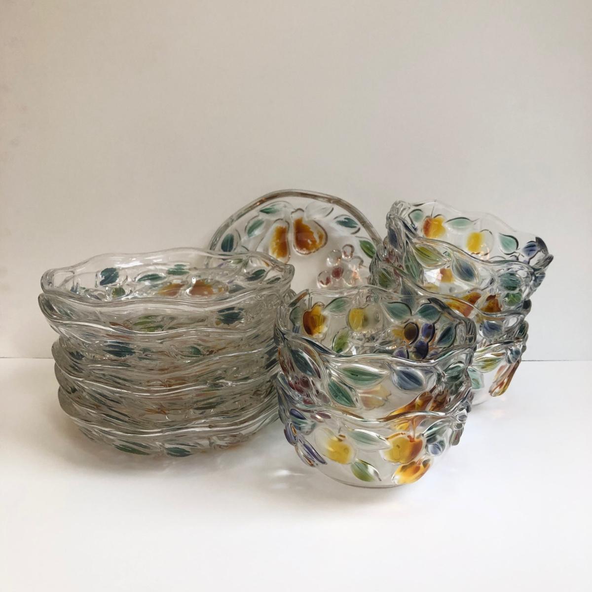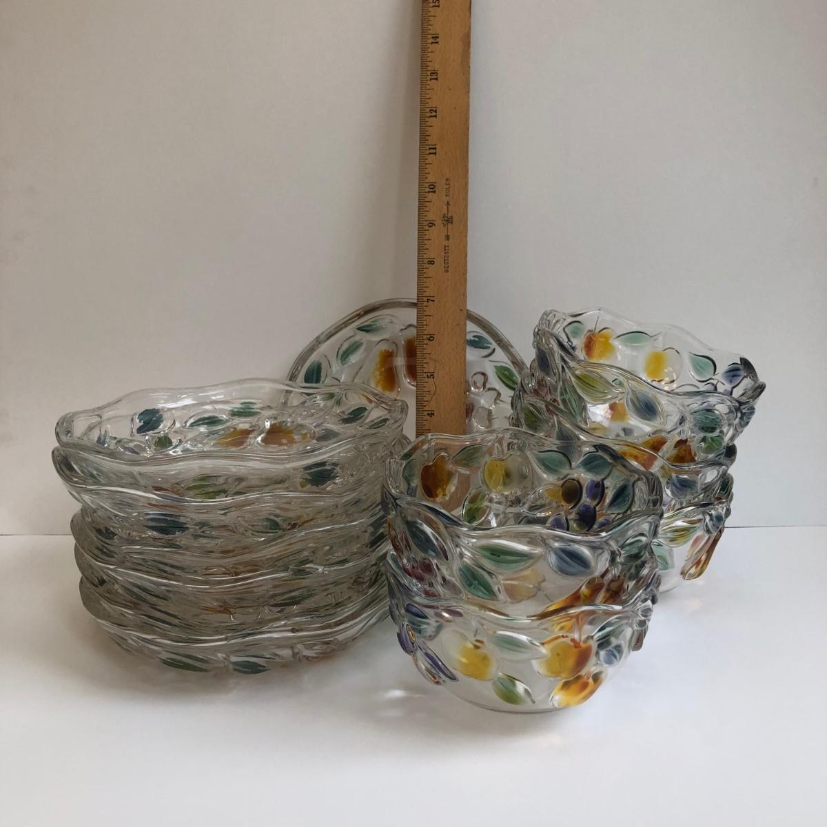 LOT 142K: Glass Painted Fruit Plates & Bowls