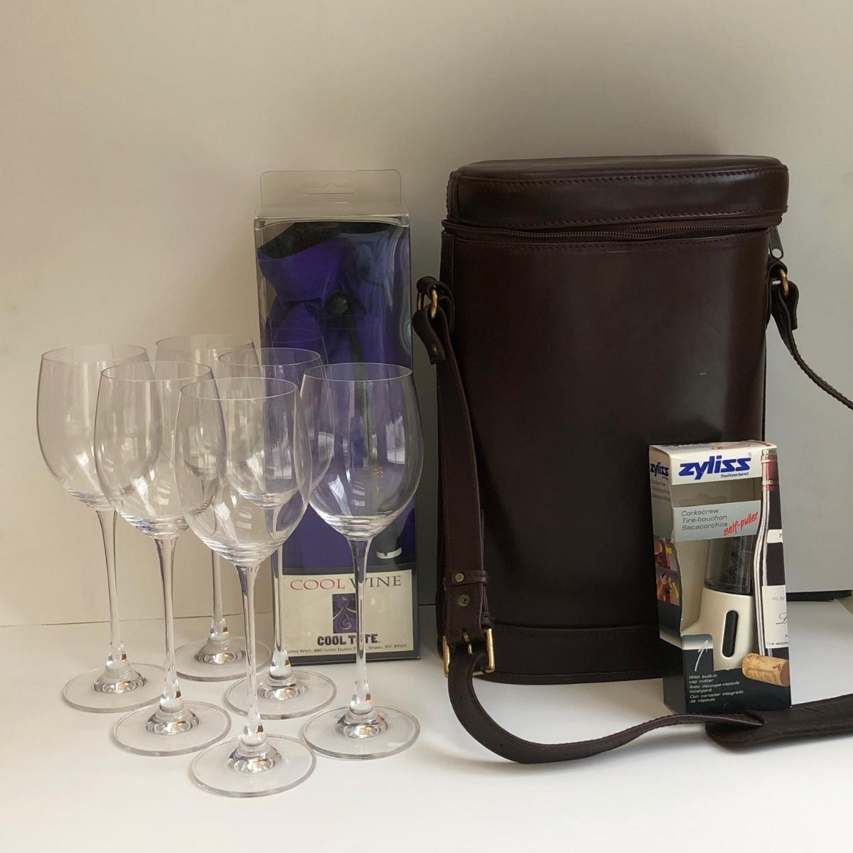 LOT 144K: Wine To Go - Travel Bag, Cooling Tote, Automatic Opener & 6 Glasses