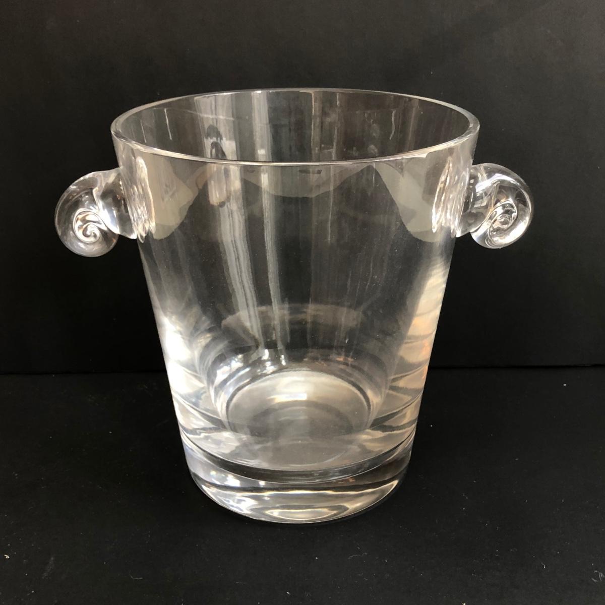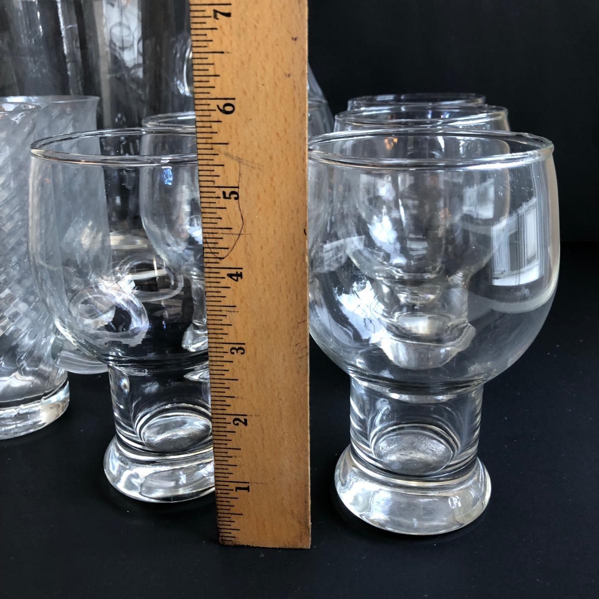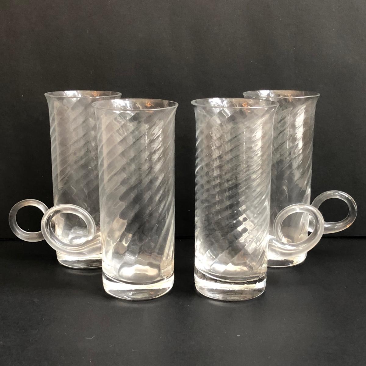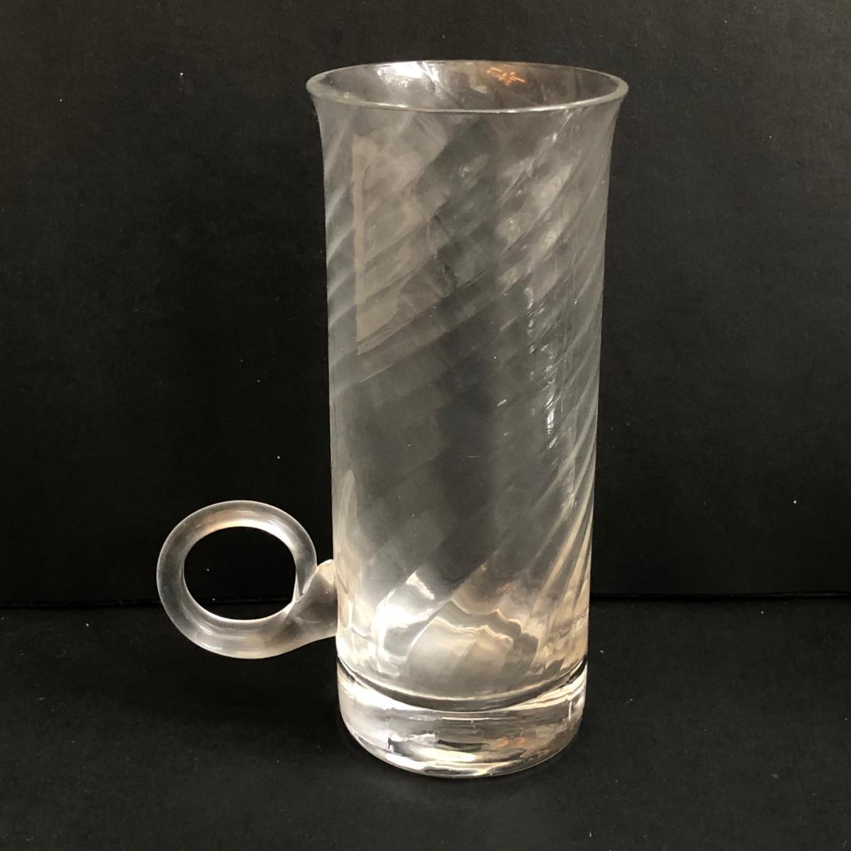 LOT 147K: MCM Hollow Stem Beer/Soda Glasses, Vintage Irish Glass Coffee Mugs, Crystal Decanter & Swirl Handle Ice Bucket