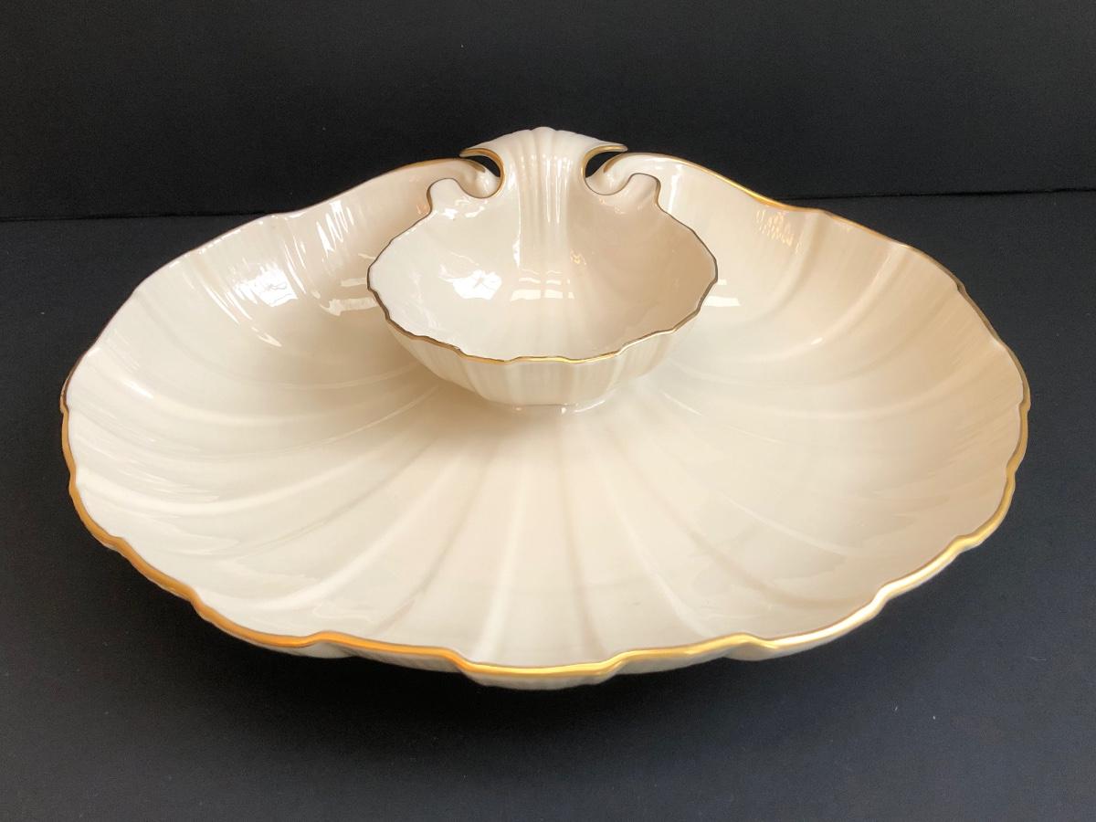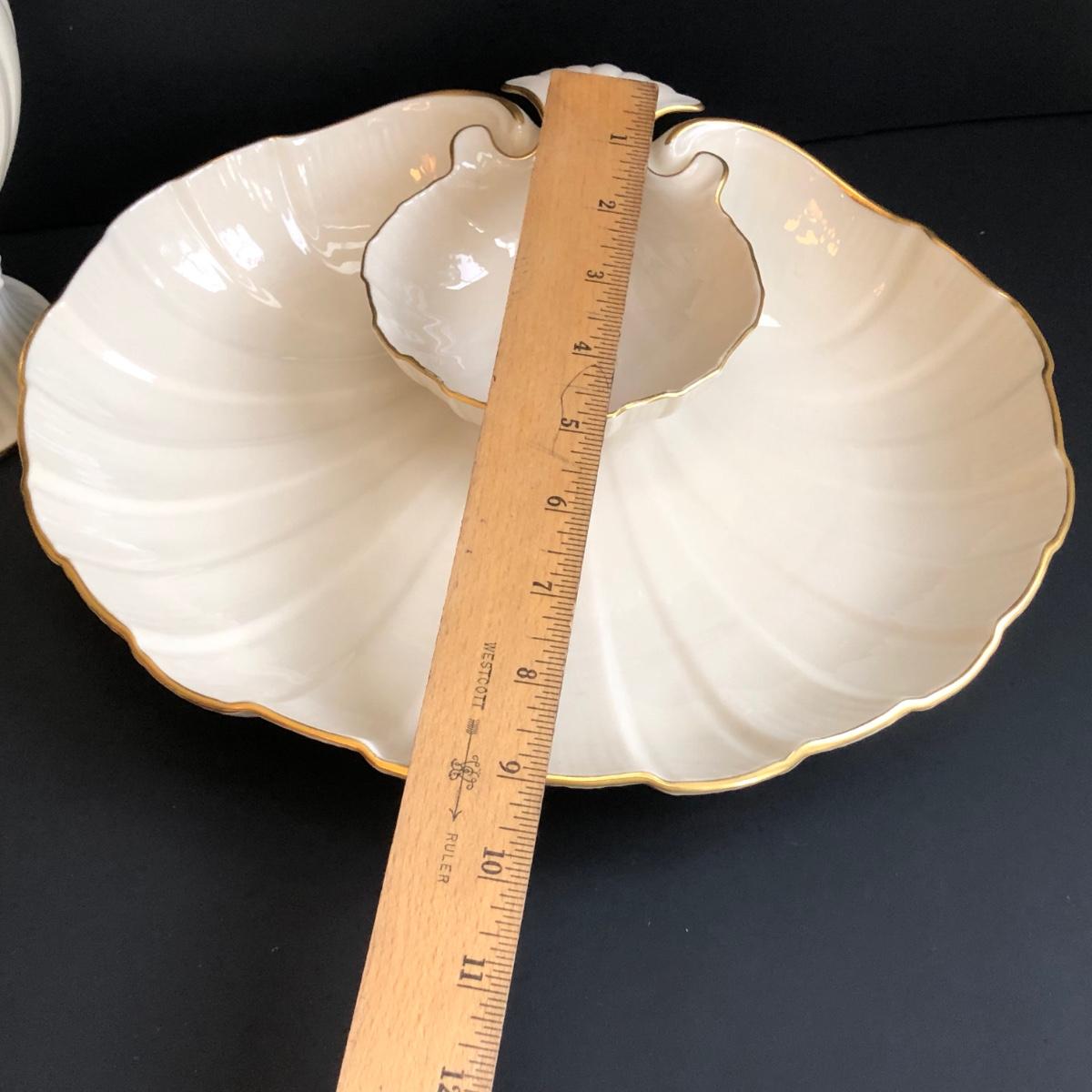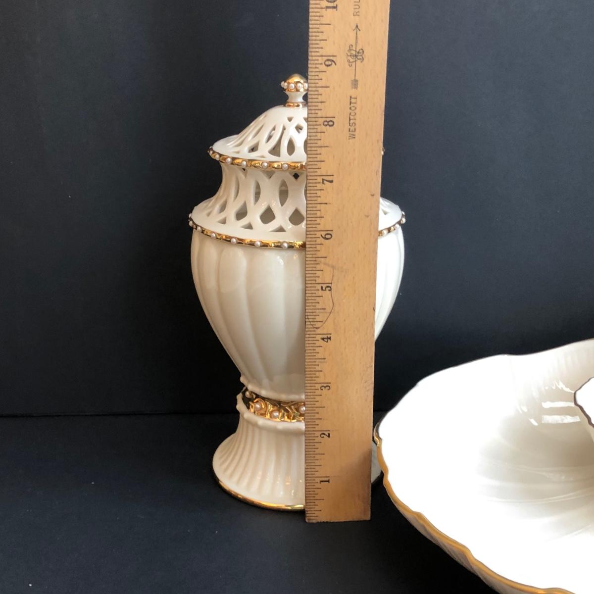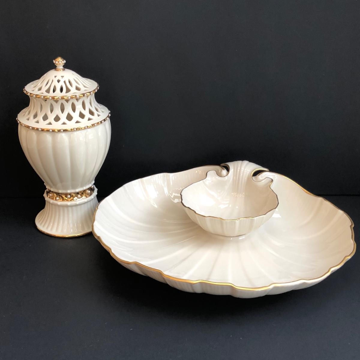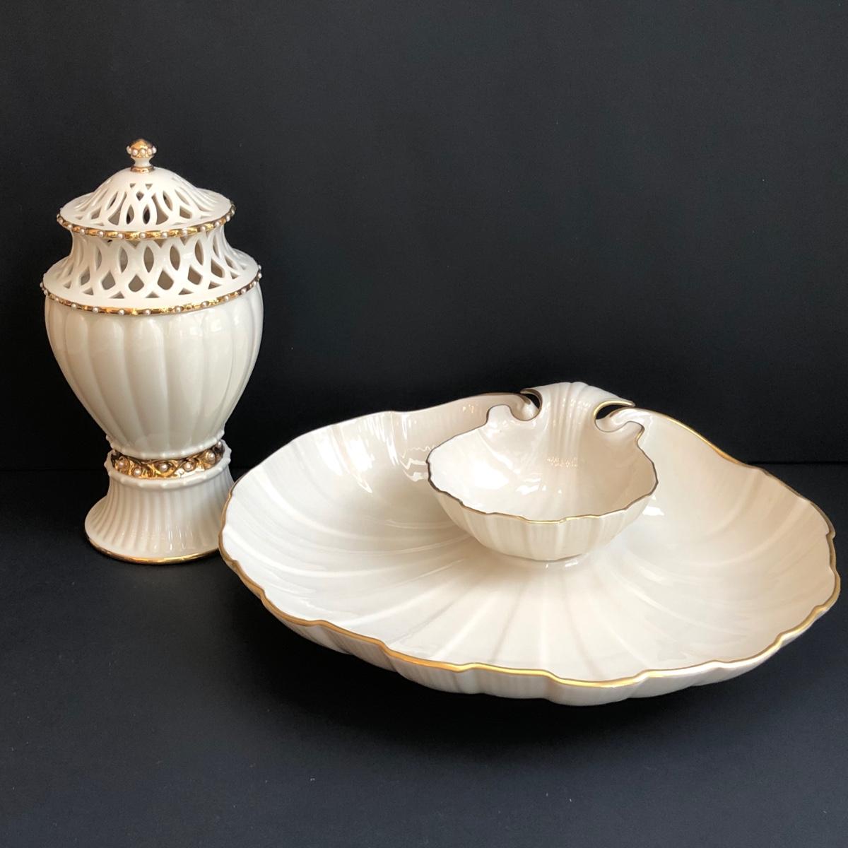LOT 150K: Lenox - Illuminations Collection Florentine & Pearl Canister Candle Jar & Aegean Seashell Serving Bowl/Chip & Dip