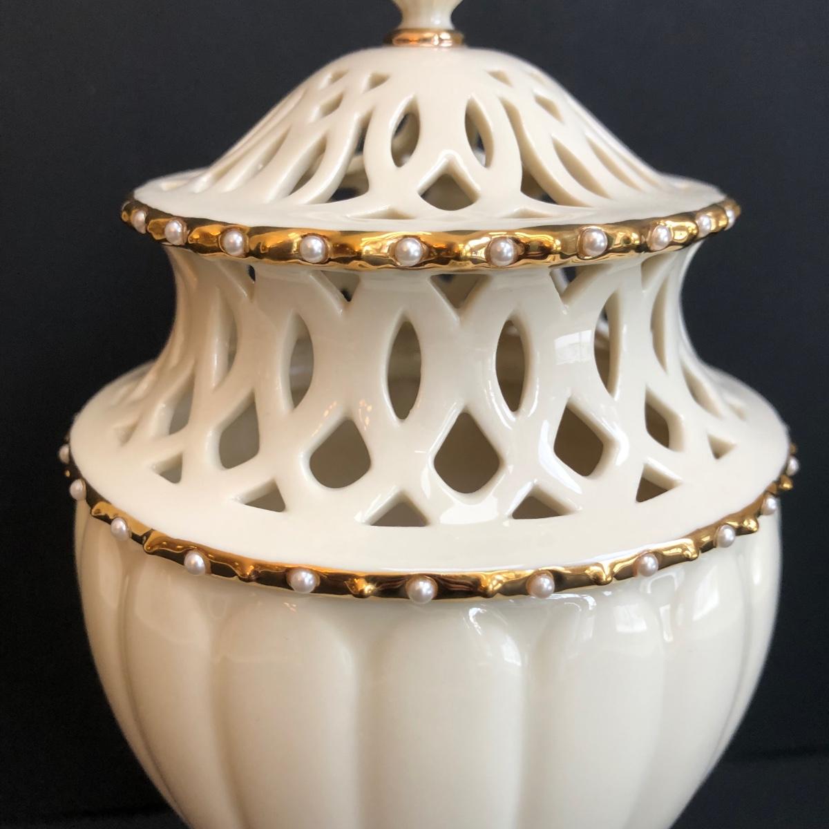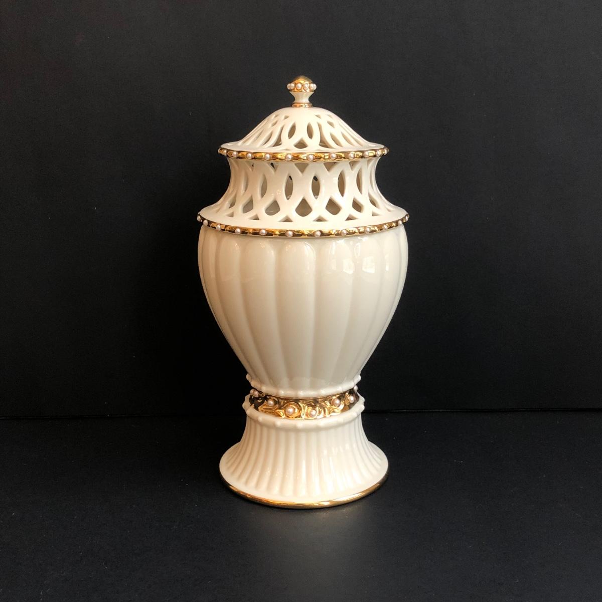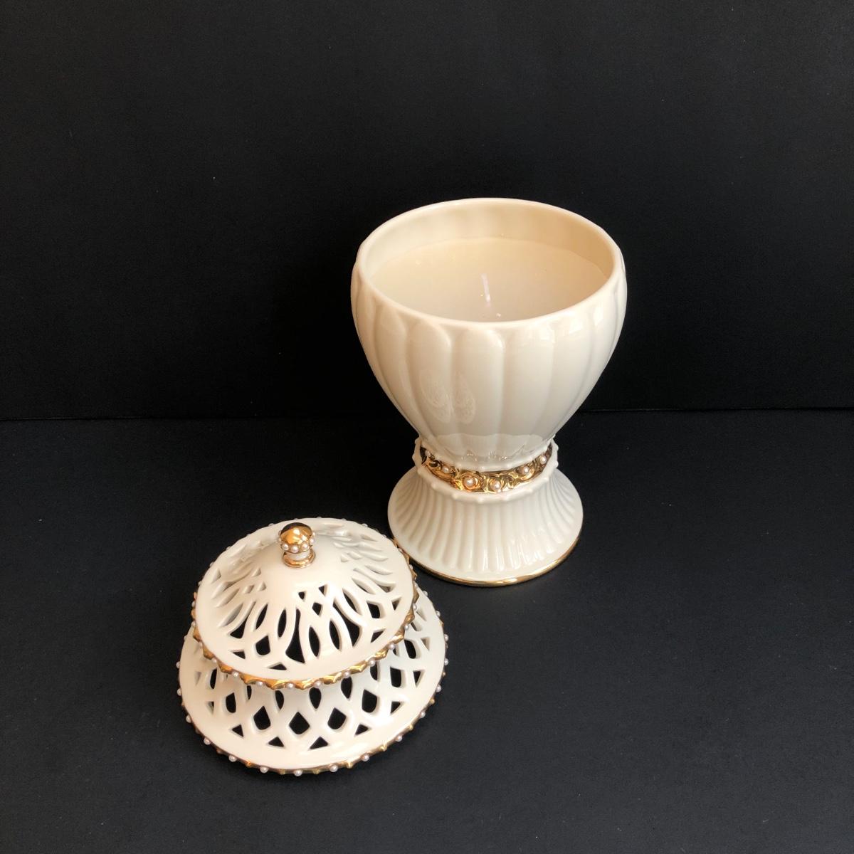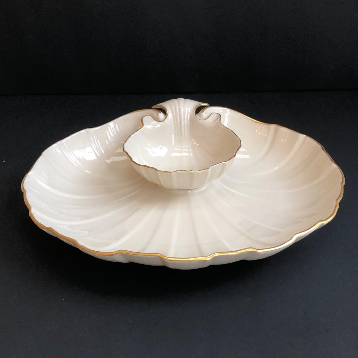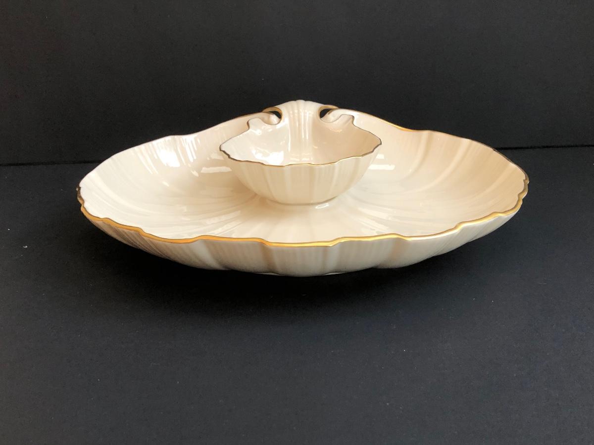 LOT 150K: Lenox - Illuminations Collection Florentine & Pearl Canister Candle Jar & Aegean Seashell Serving Bowl/Chip & Dip