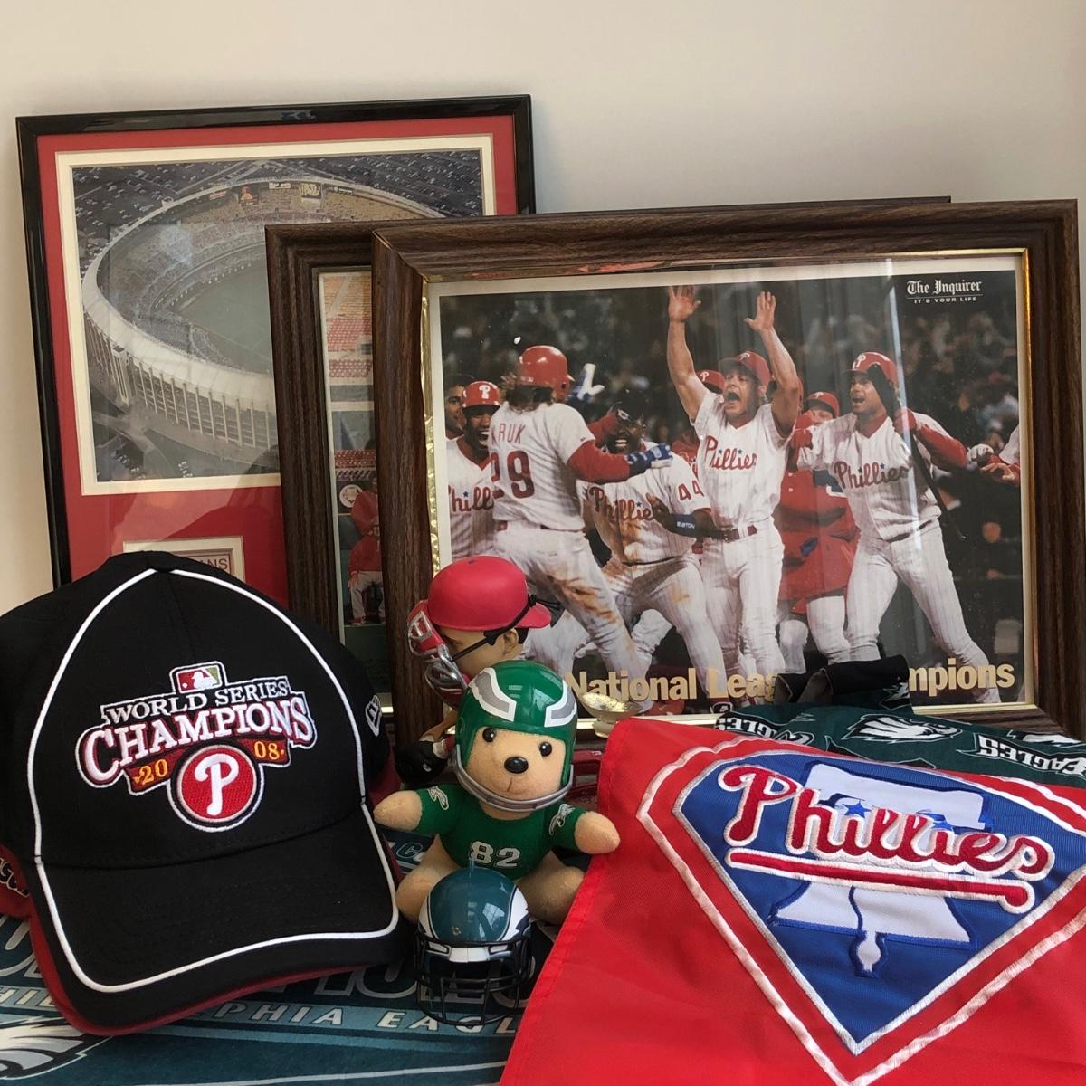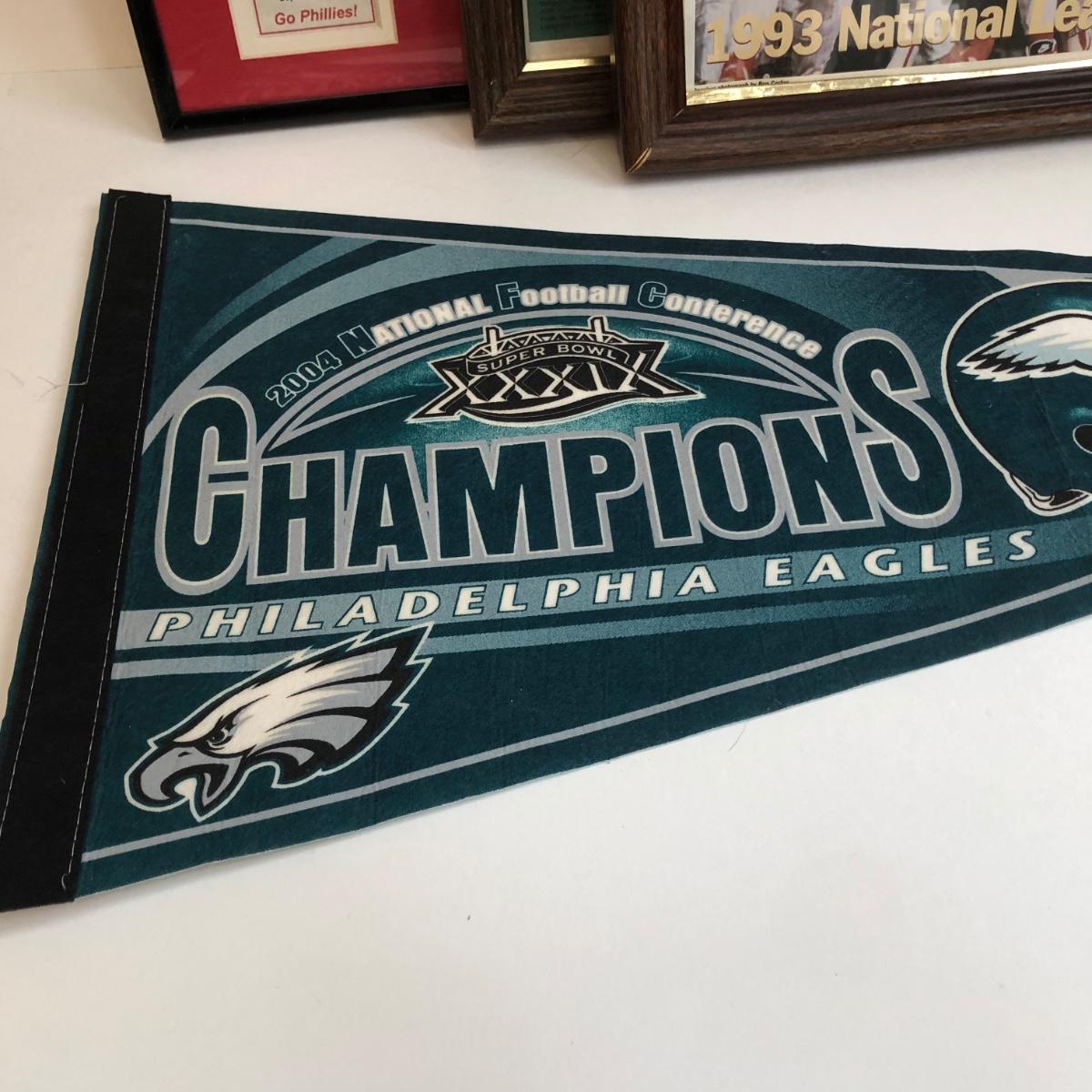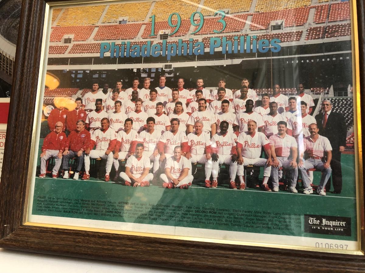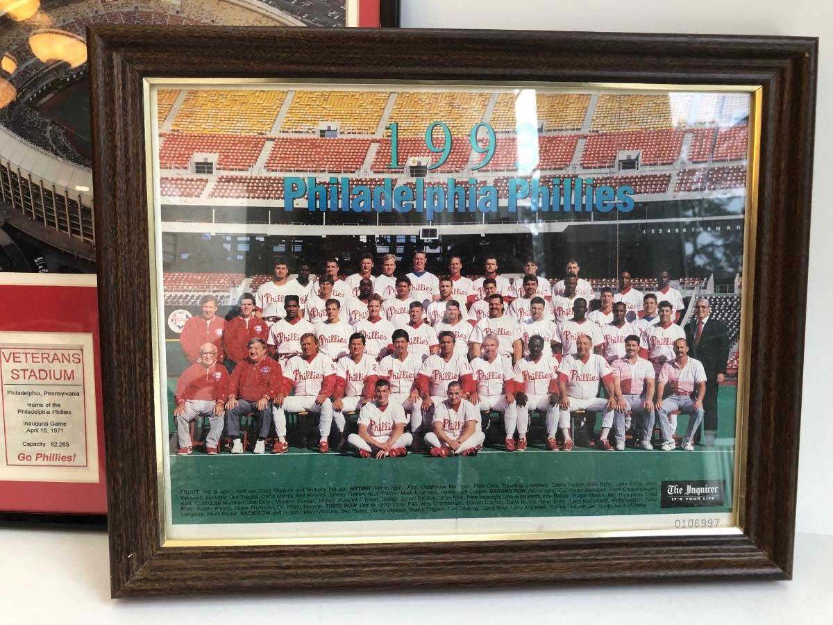 LOT 169X: Philadelphia Sports Collection - 1993 Phillies Team Photo, Hats, Eagles Pennant & More
