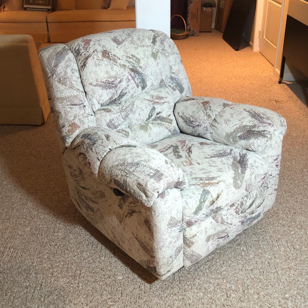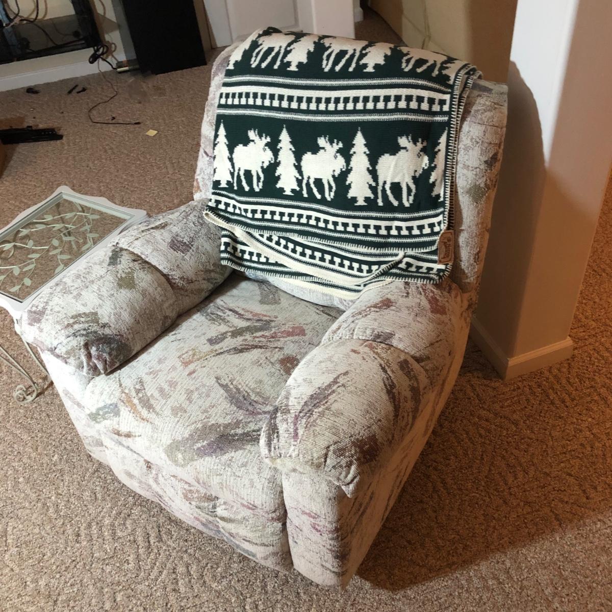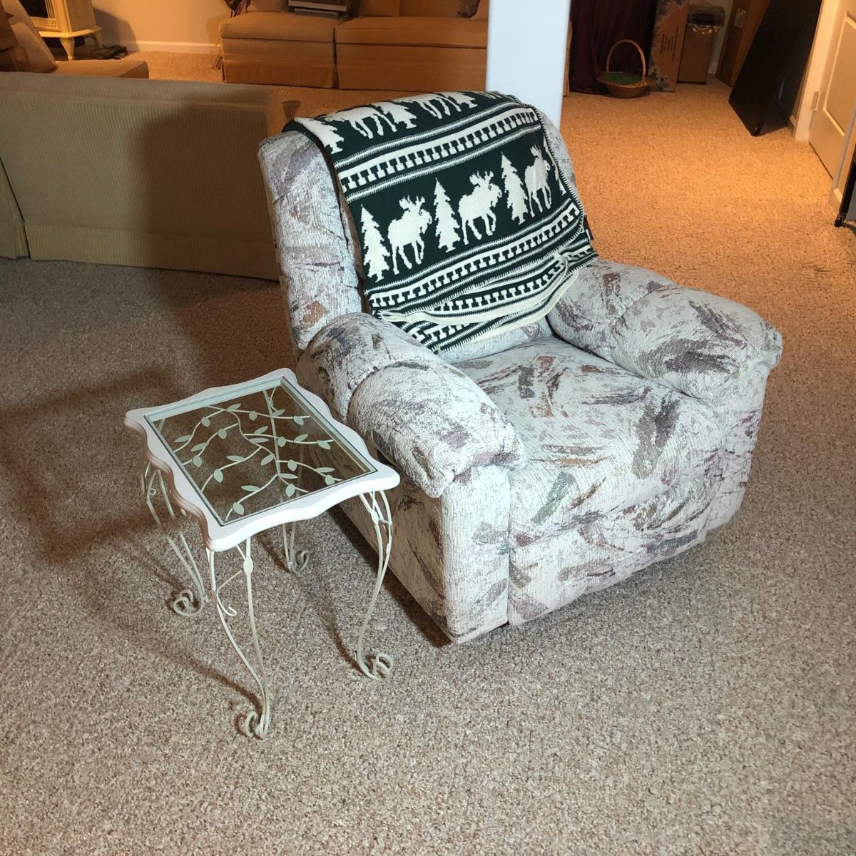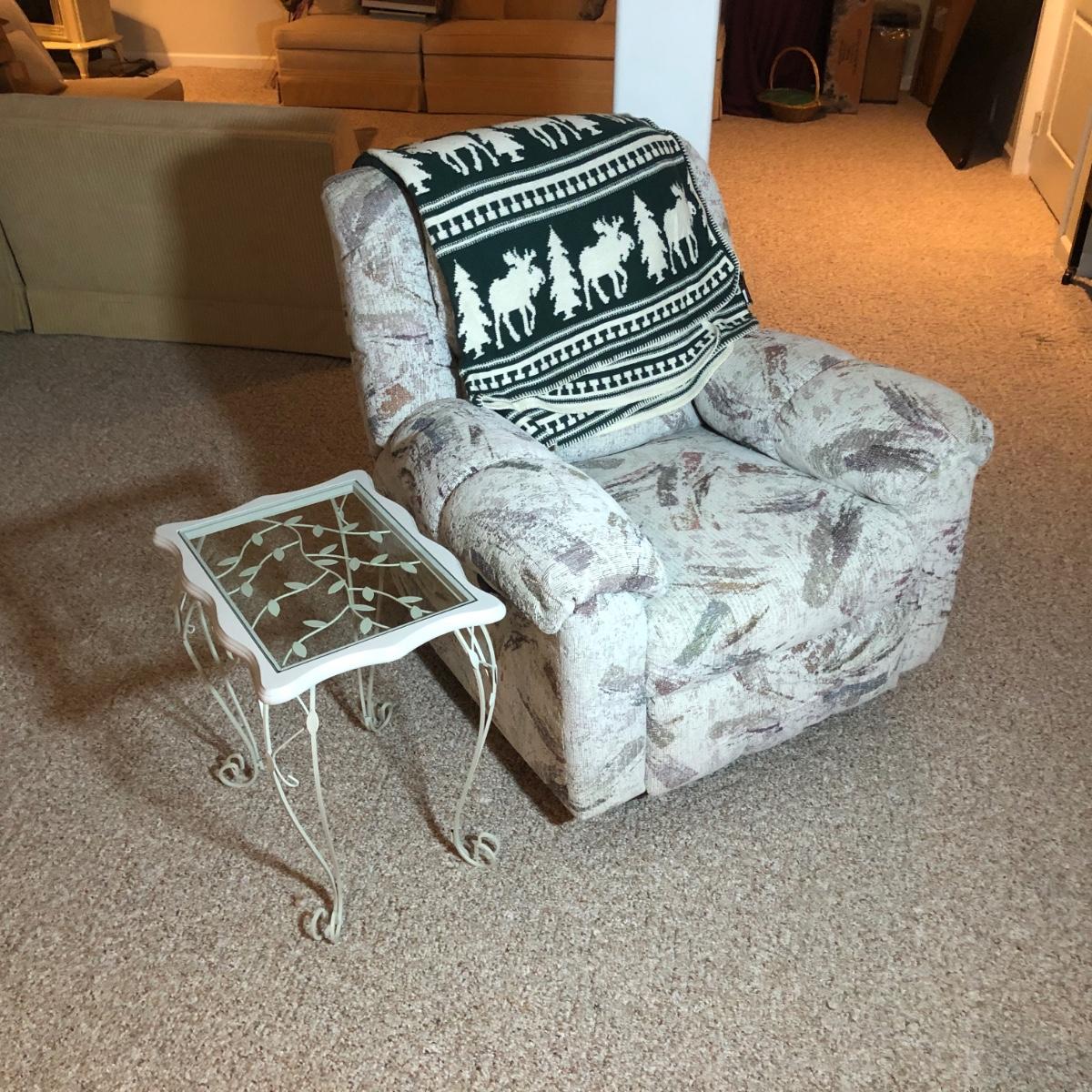 LOT 177B: Vintage Recliner w/ Glass Top Accent Table & Native America Green Moose Blanket