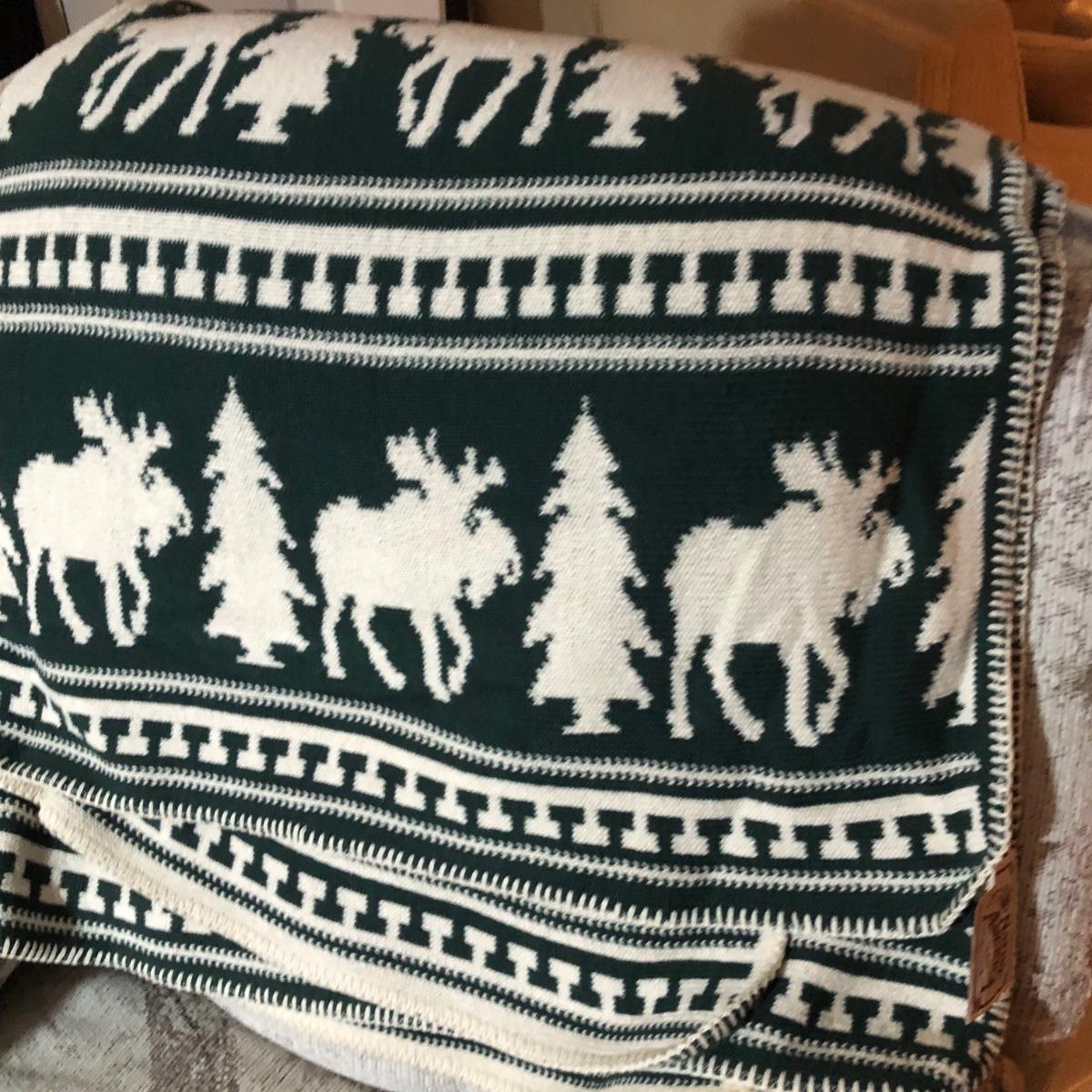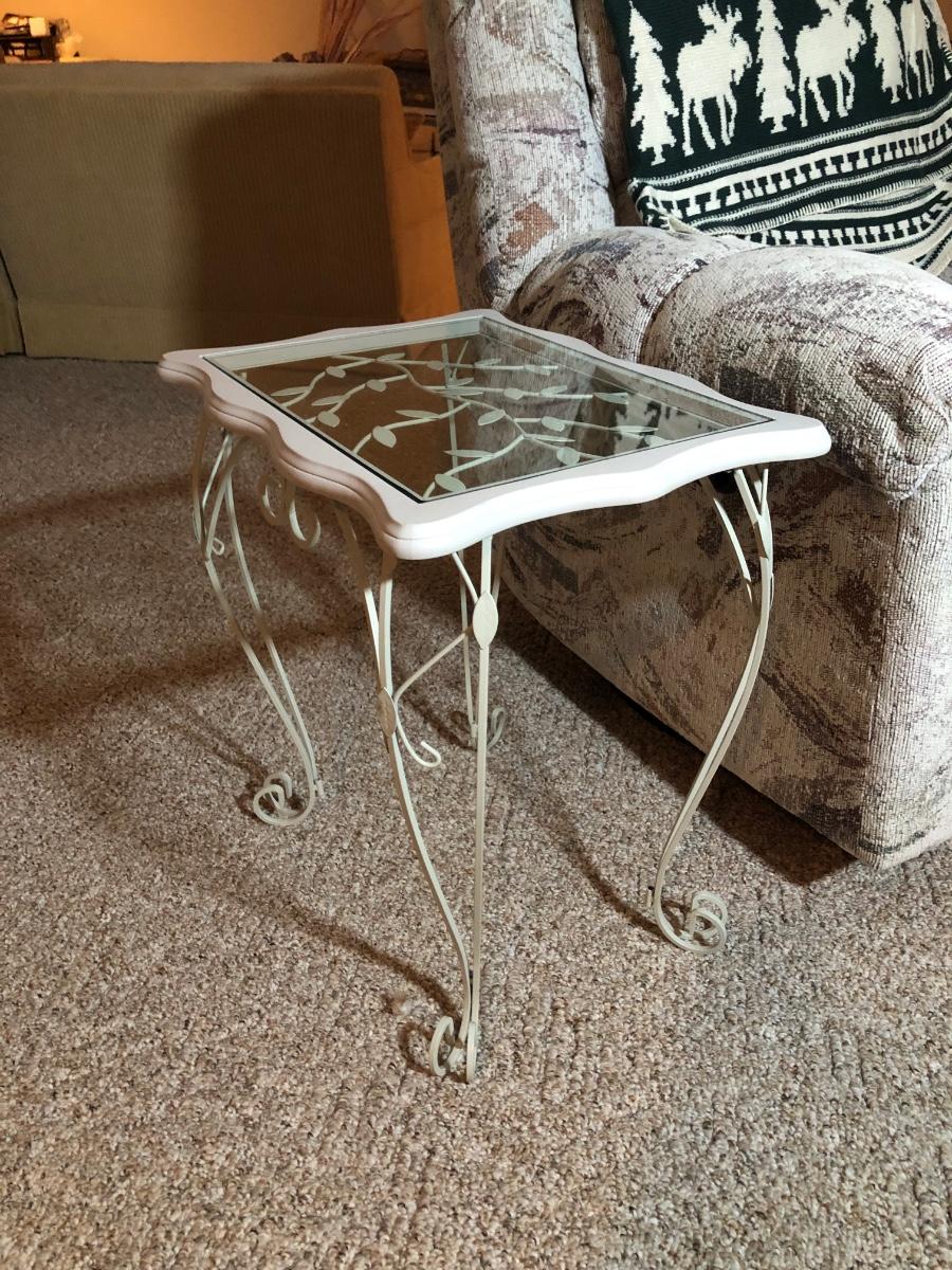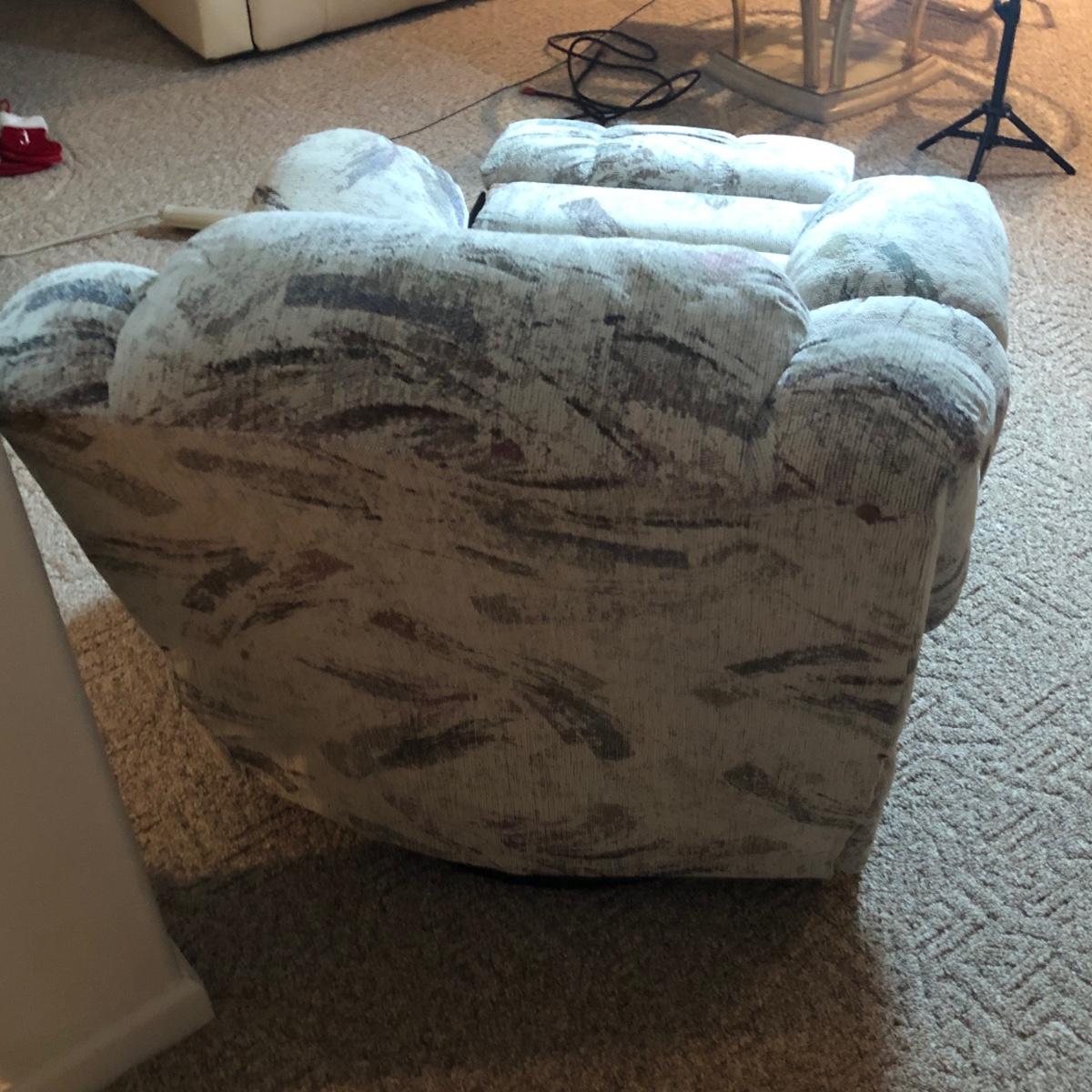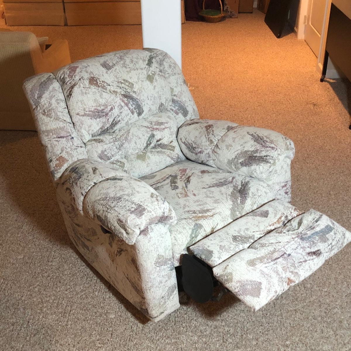 LOT 177B: Vintage Recliner w/ Glass Top Accent Table & Native America Green Moose Blanket