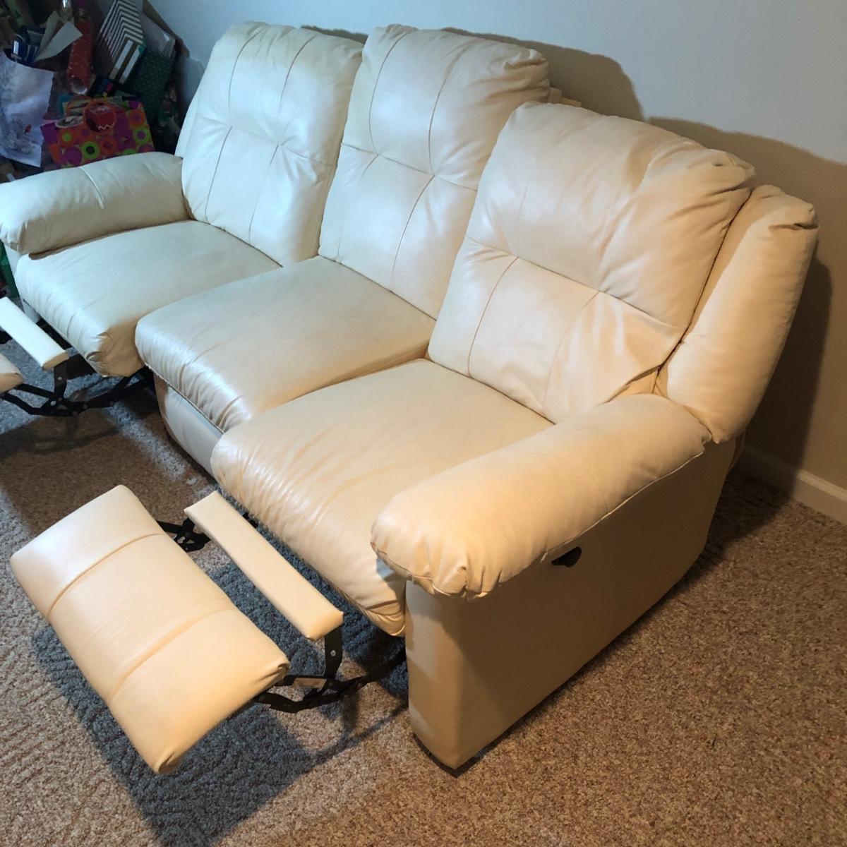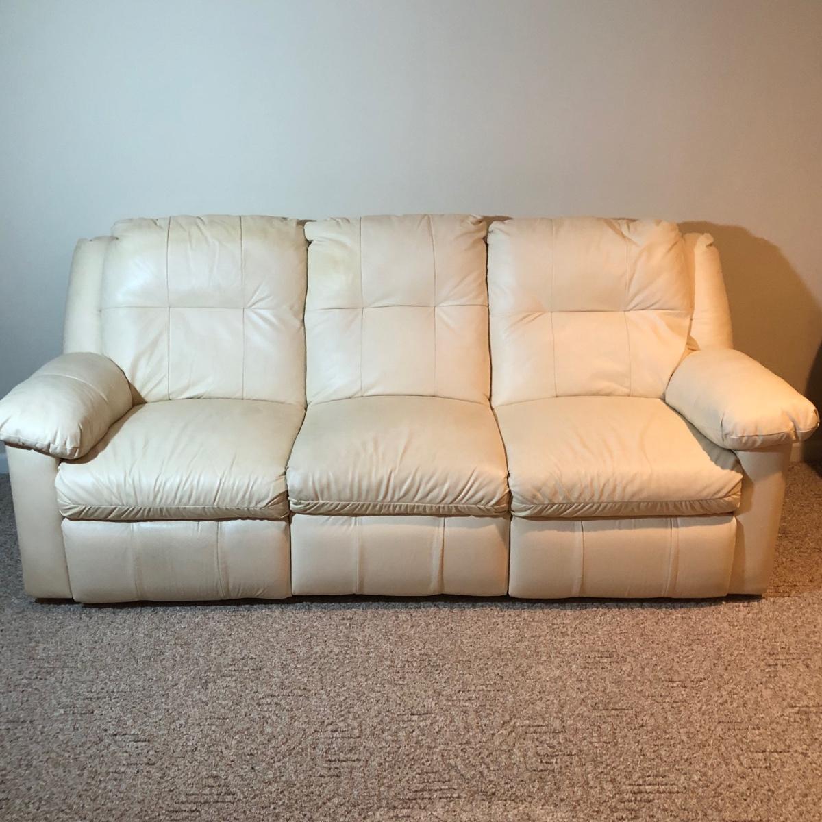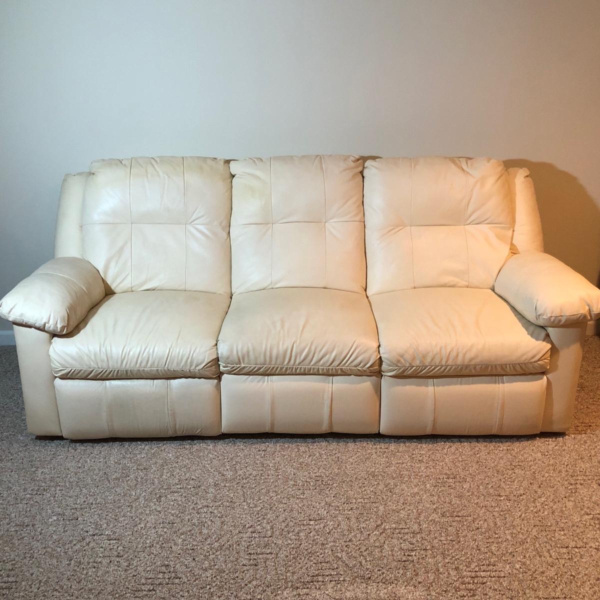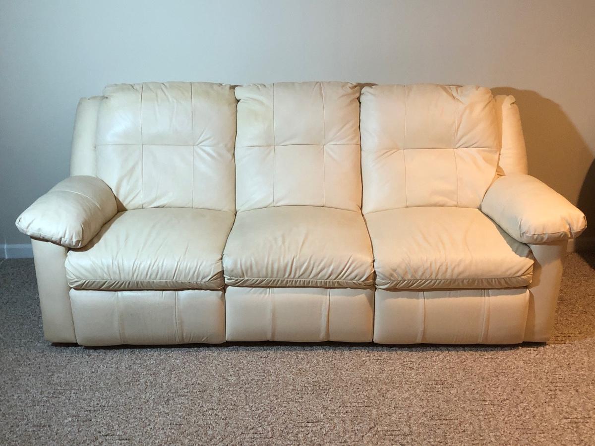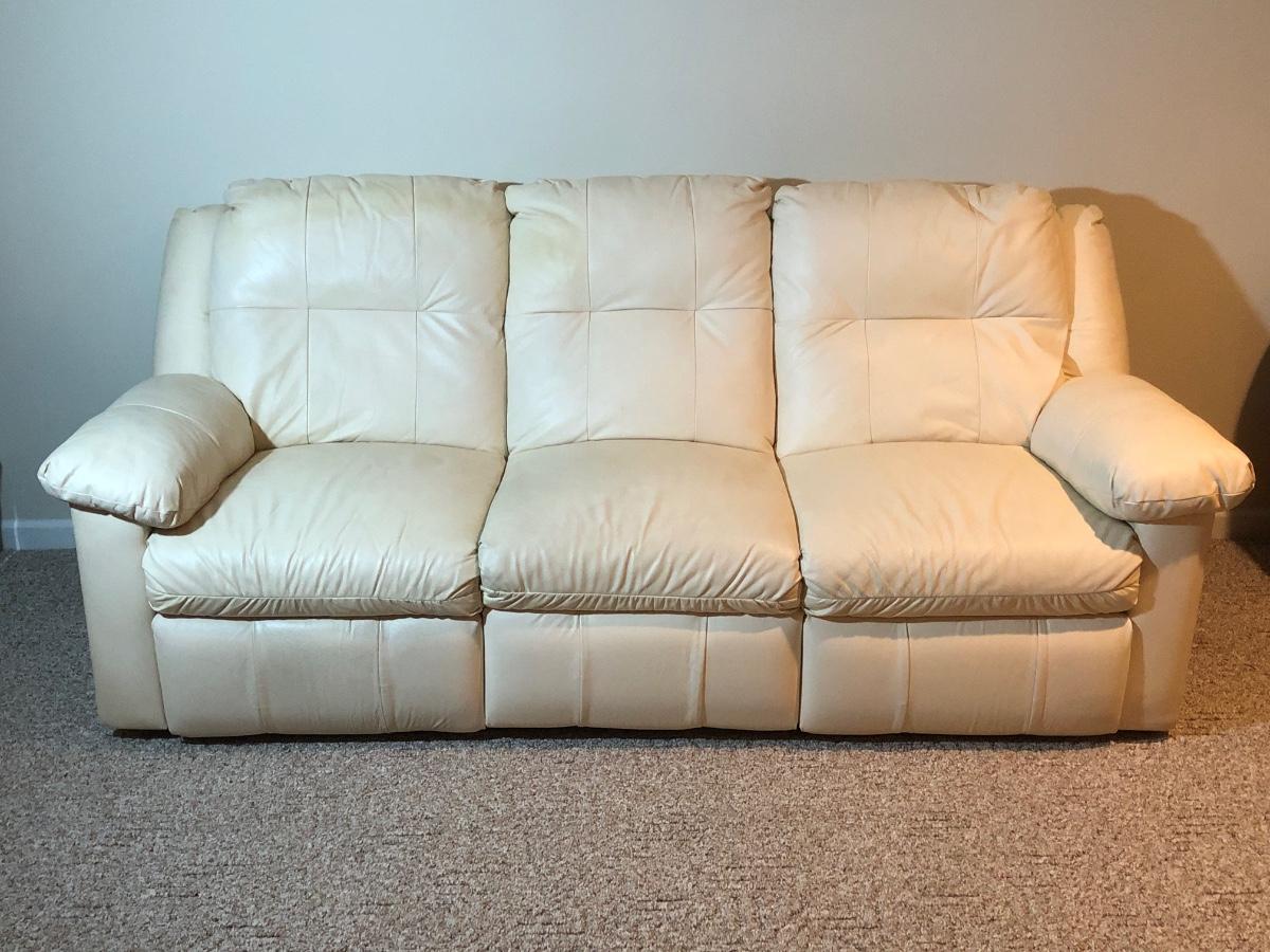 LOT 179B: Cream Faux Leather Sofa w/ 2 Reclining Seats