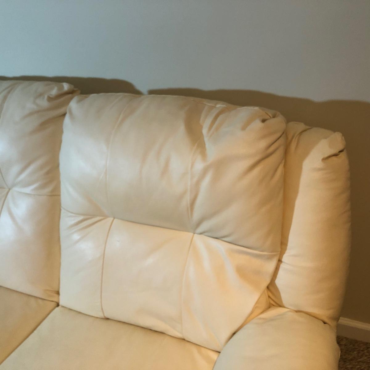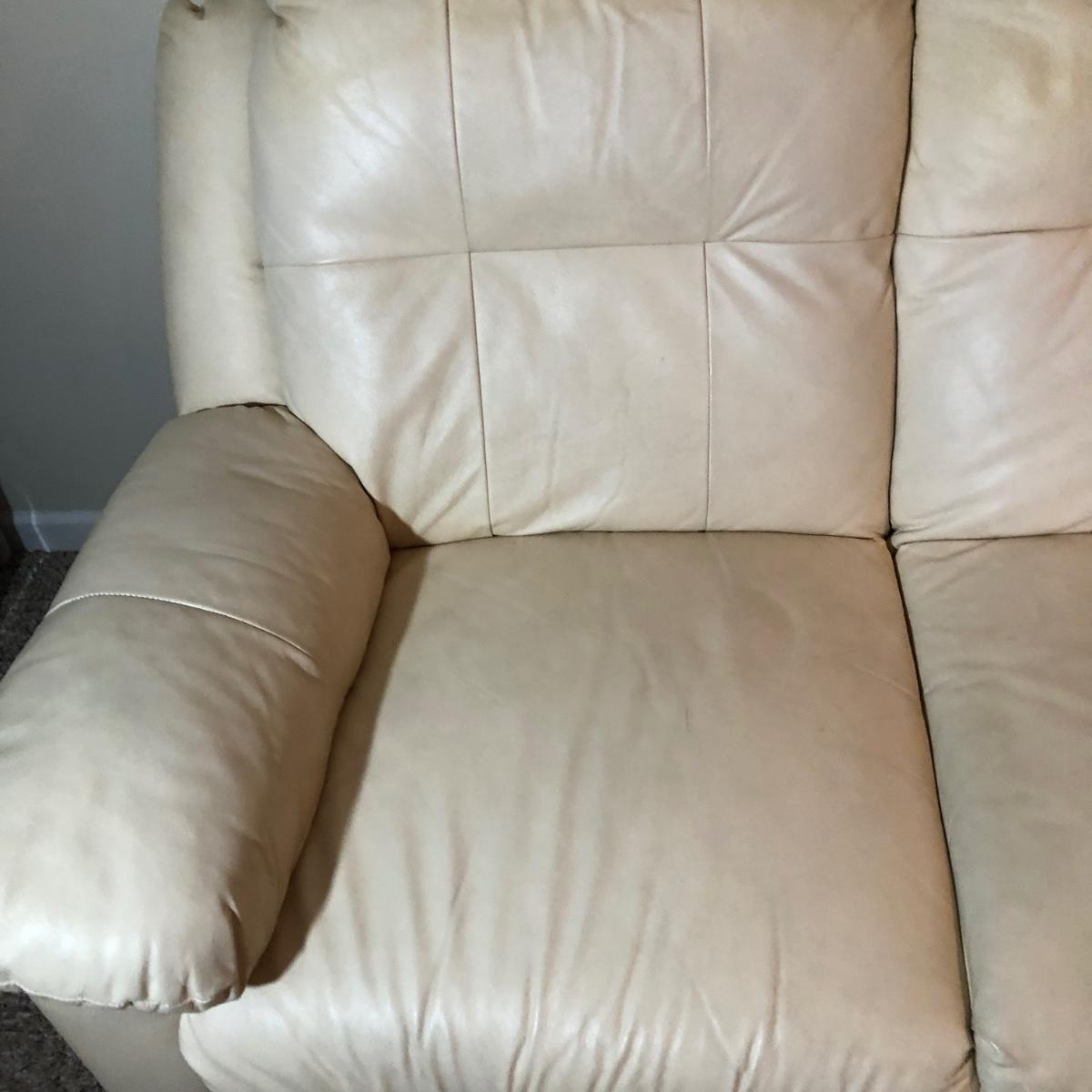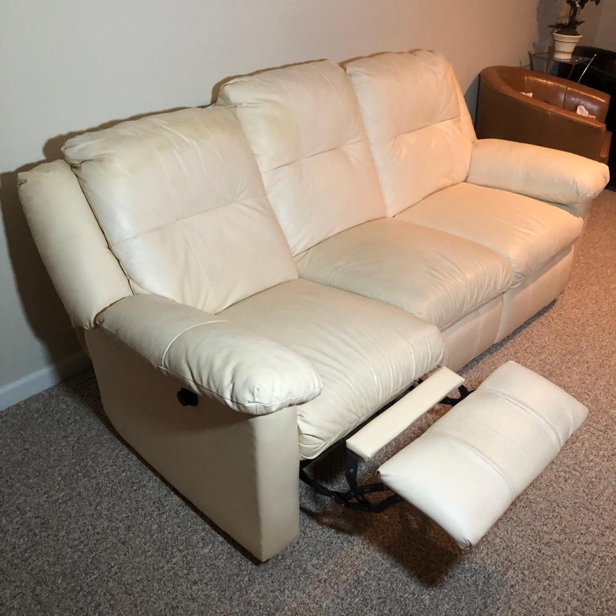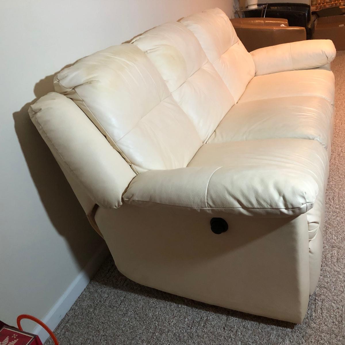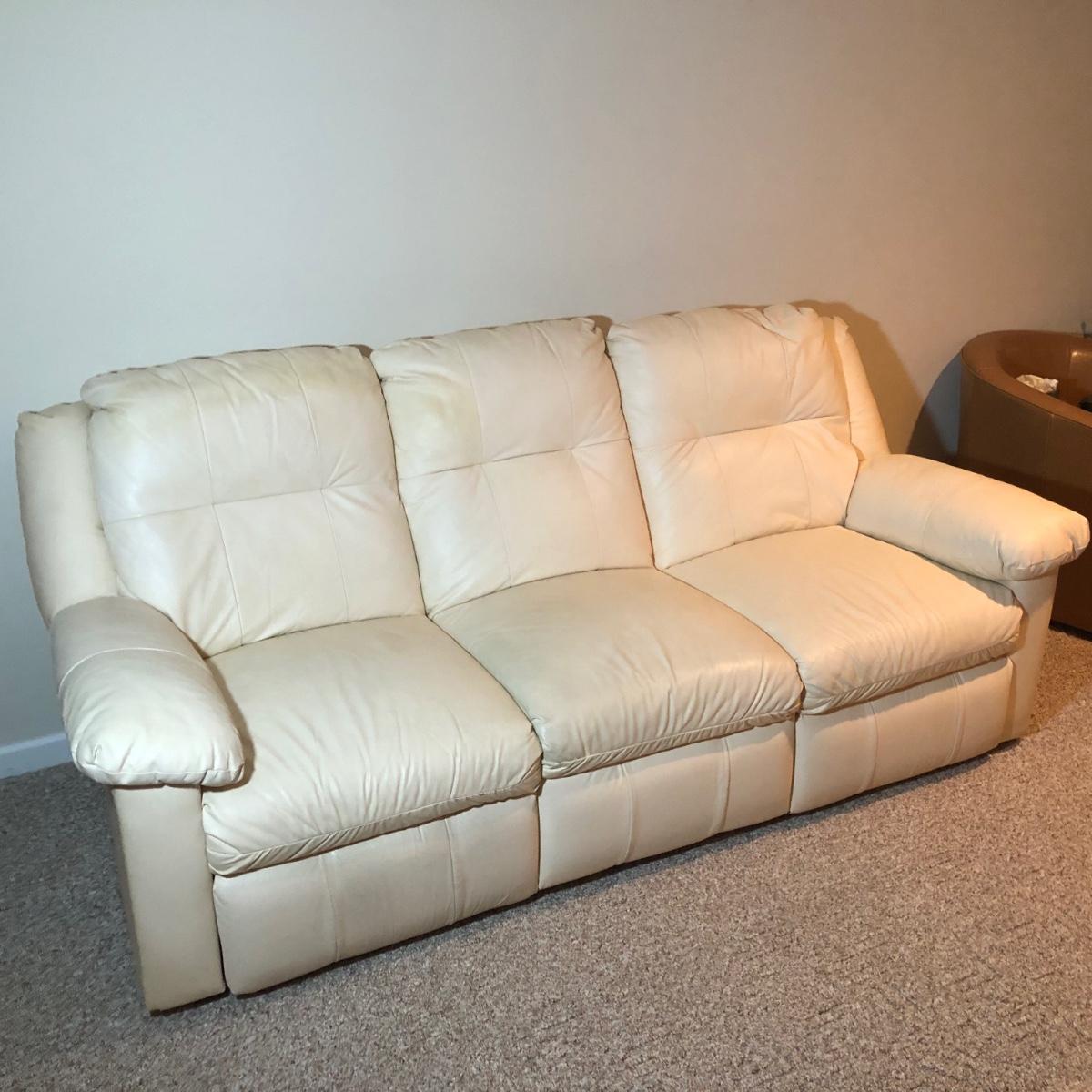 LOT 179B: Cream Faux Leather Sofa w/ 2 Reclining Seats