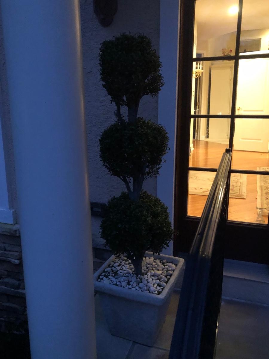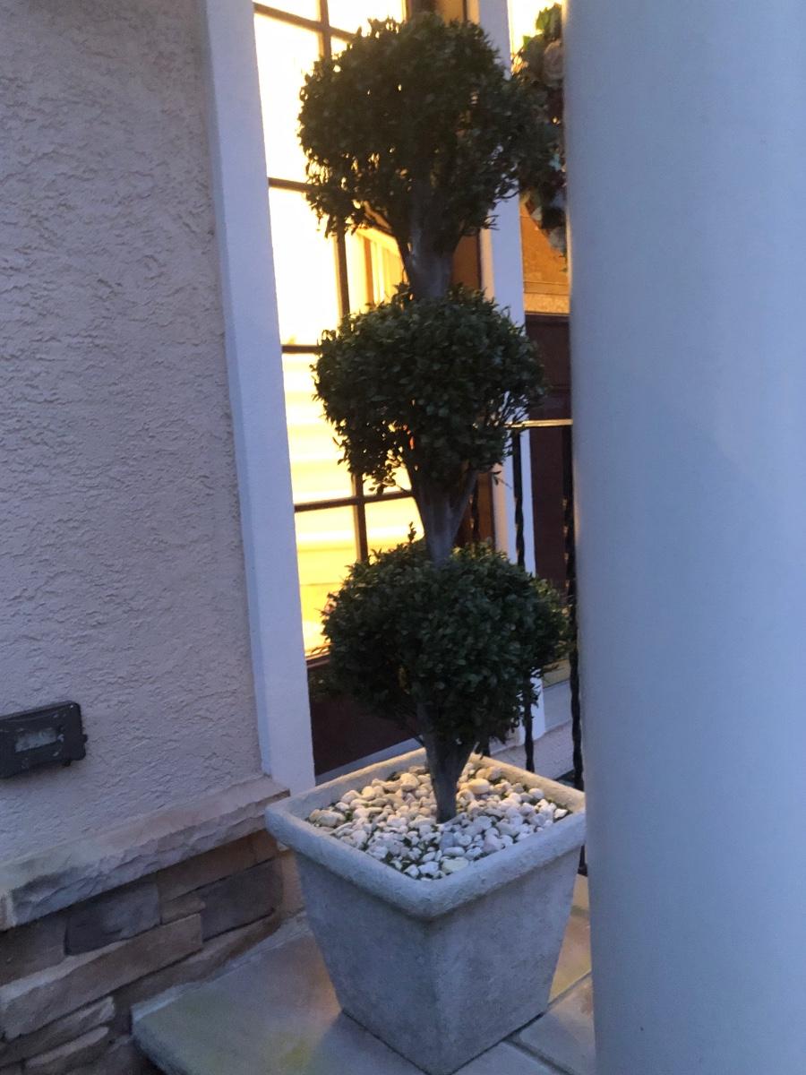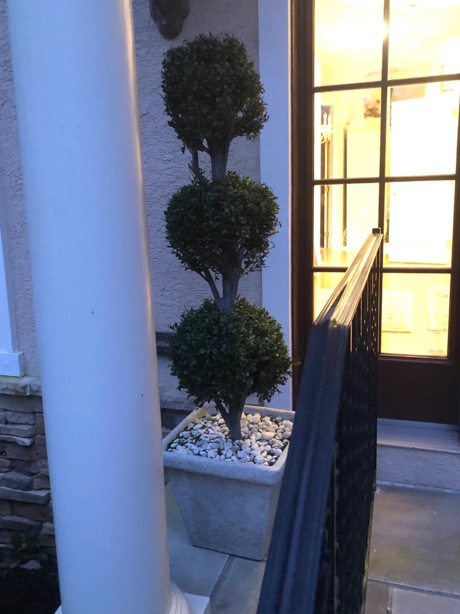 LOT 199Y: Two Faux Outdoor Topiaries in Concrete Planters (58")