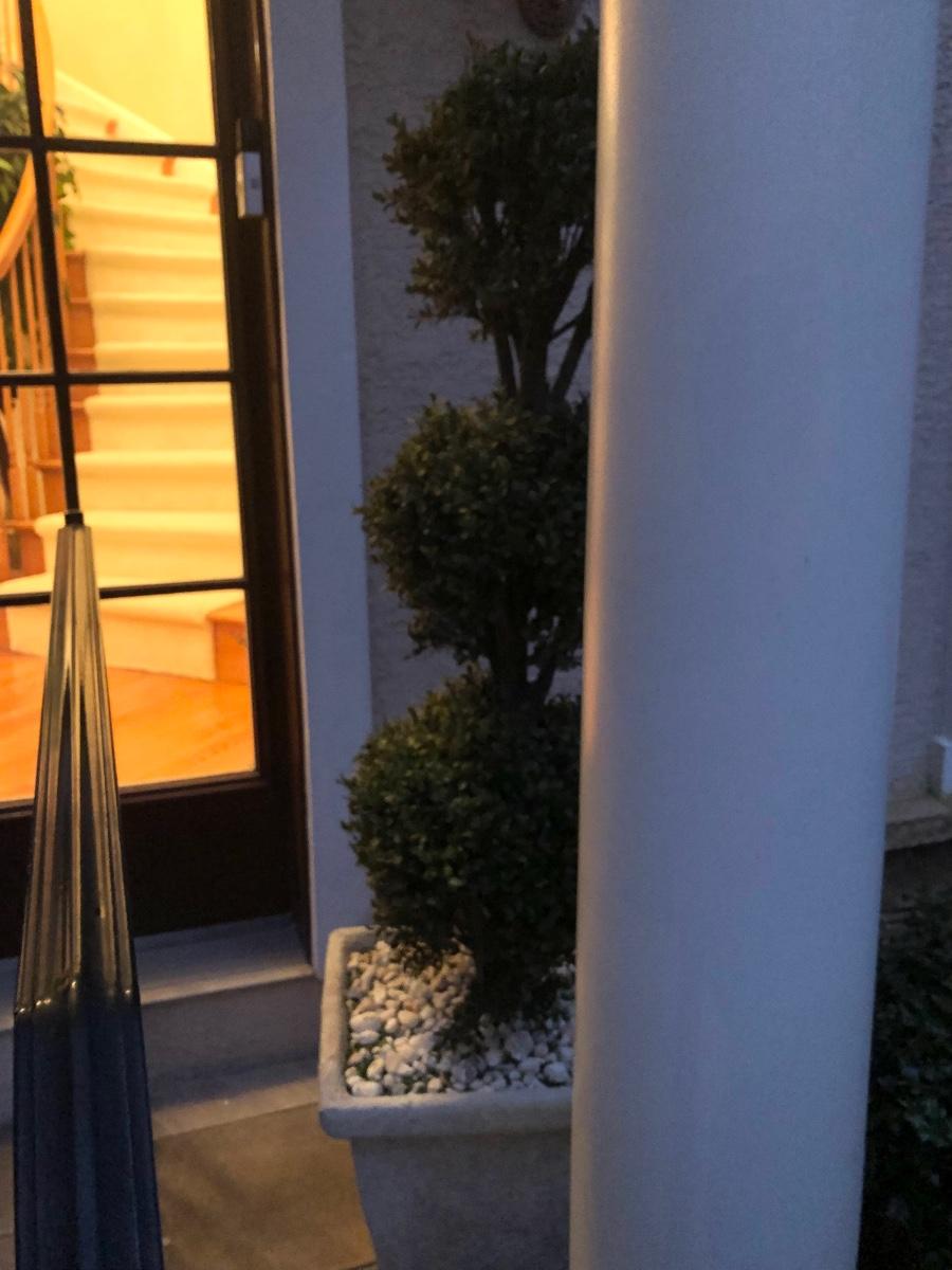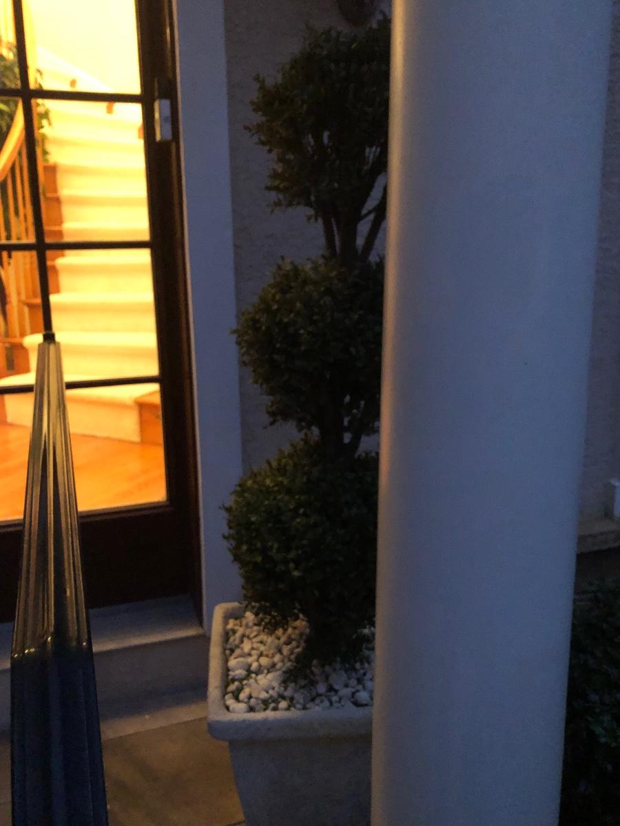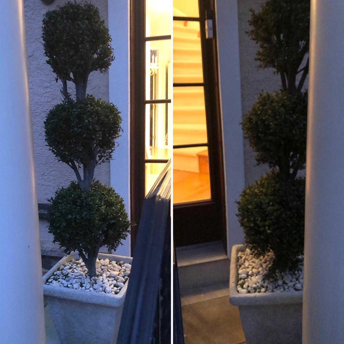 LOT 199Y: Two Faux Outdoor Topiaries in Concrete Planters (58")