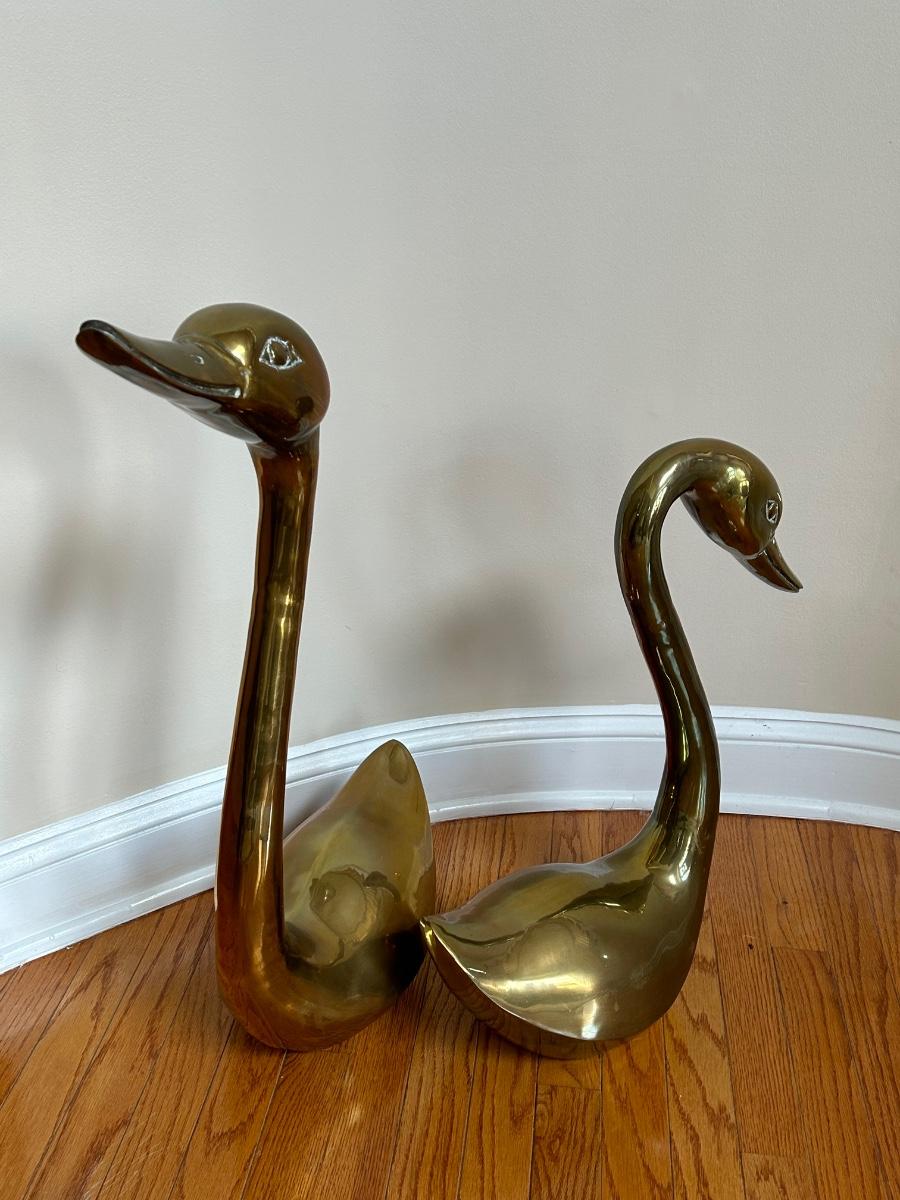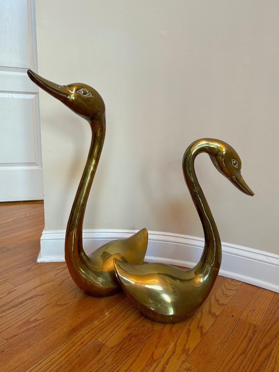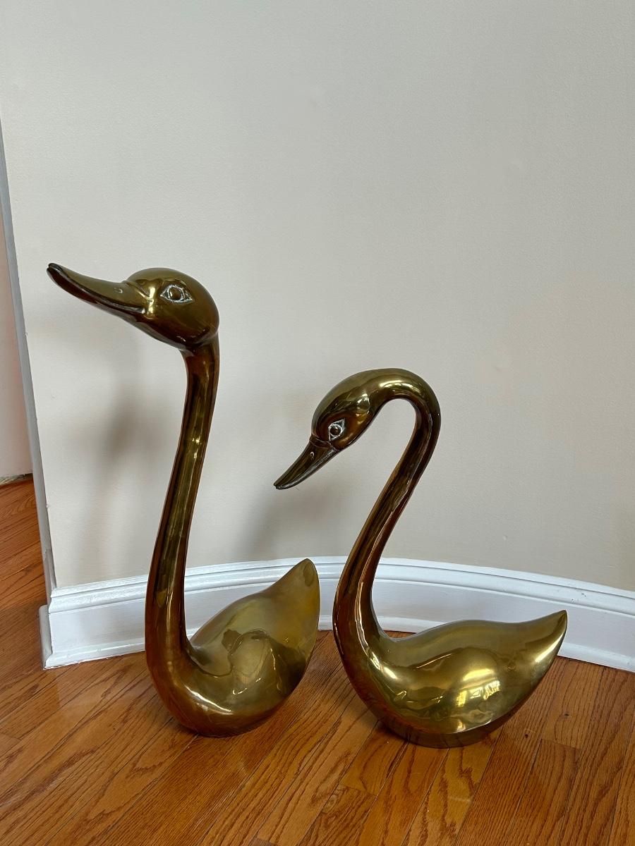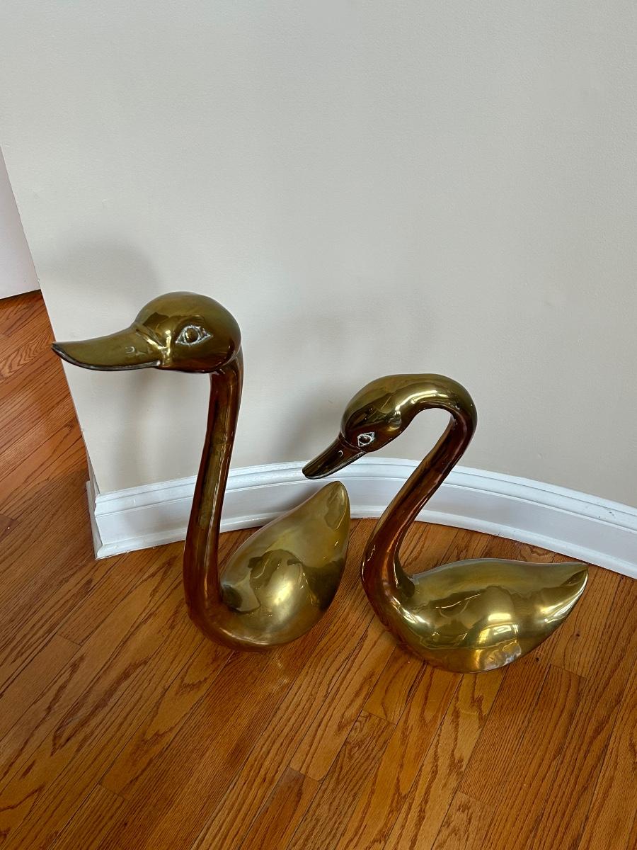LOT 210FOY: Pair Of Brass Swans