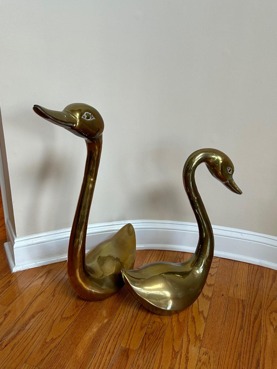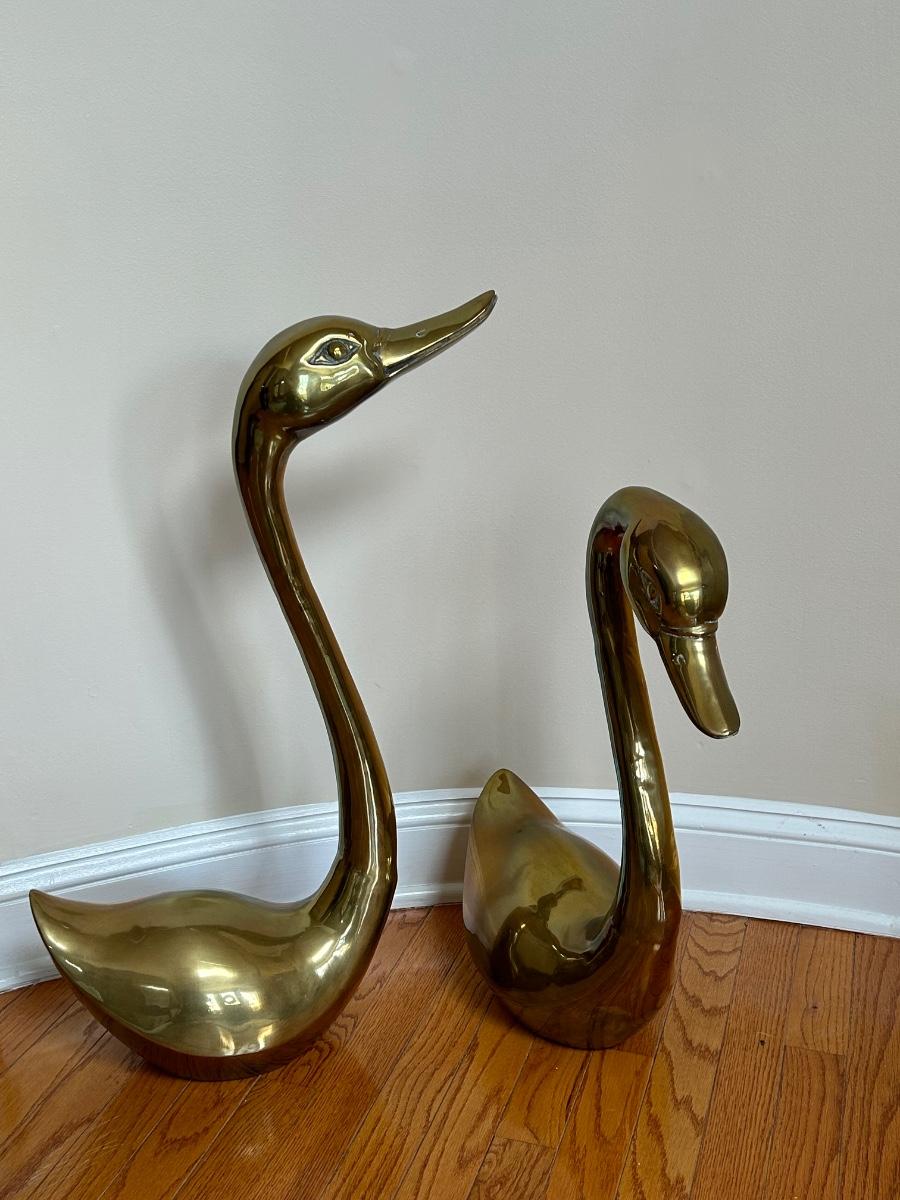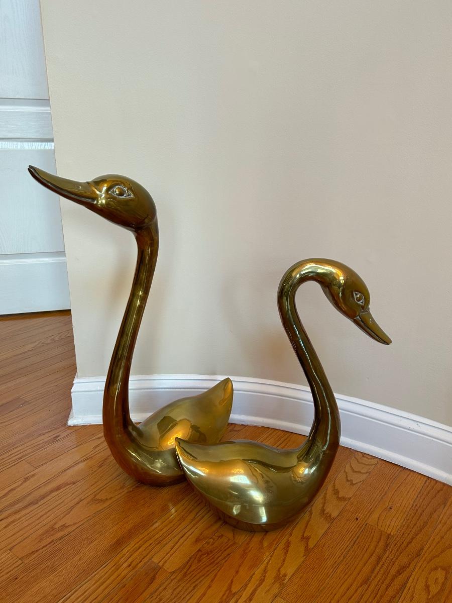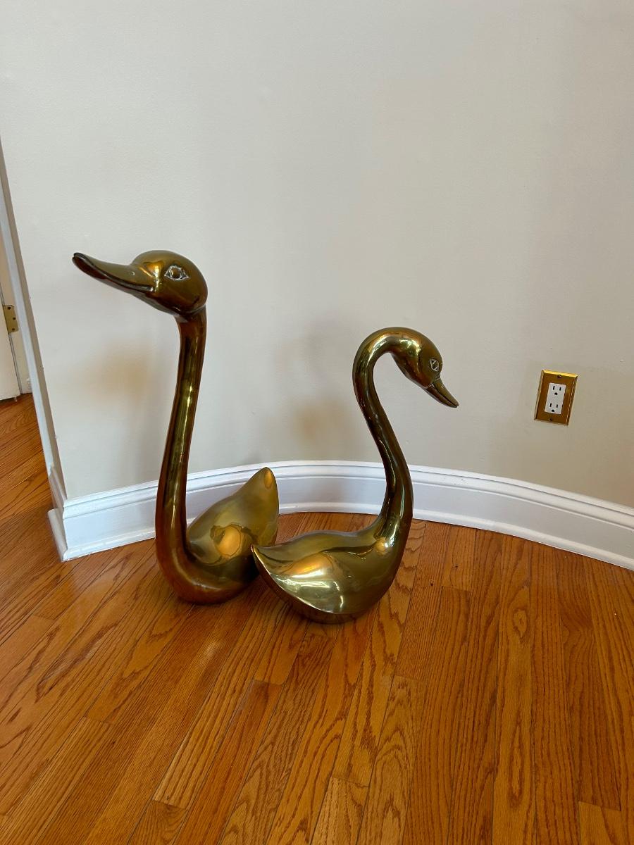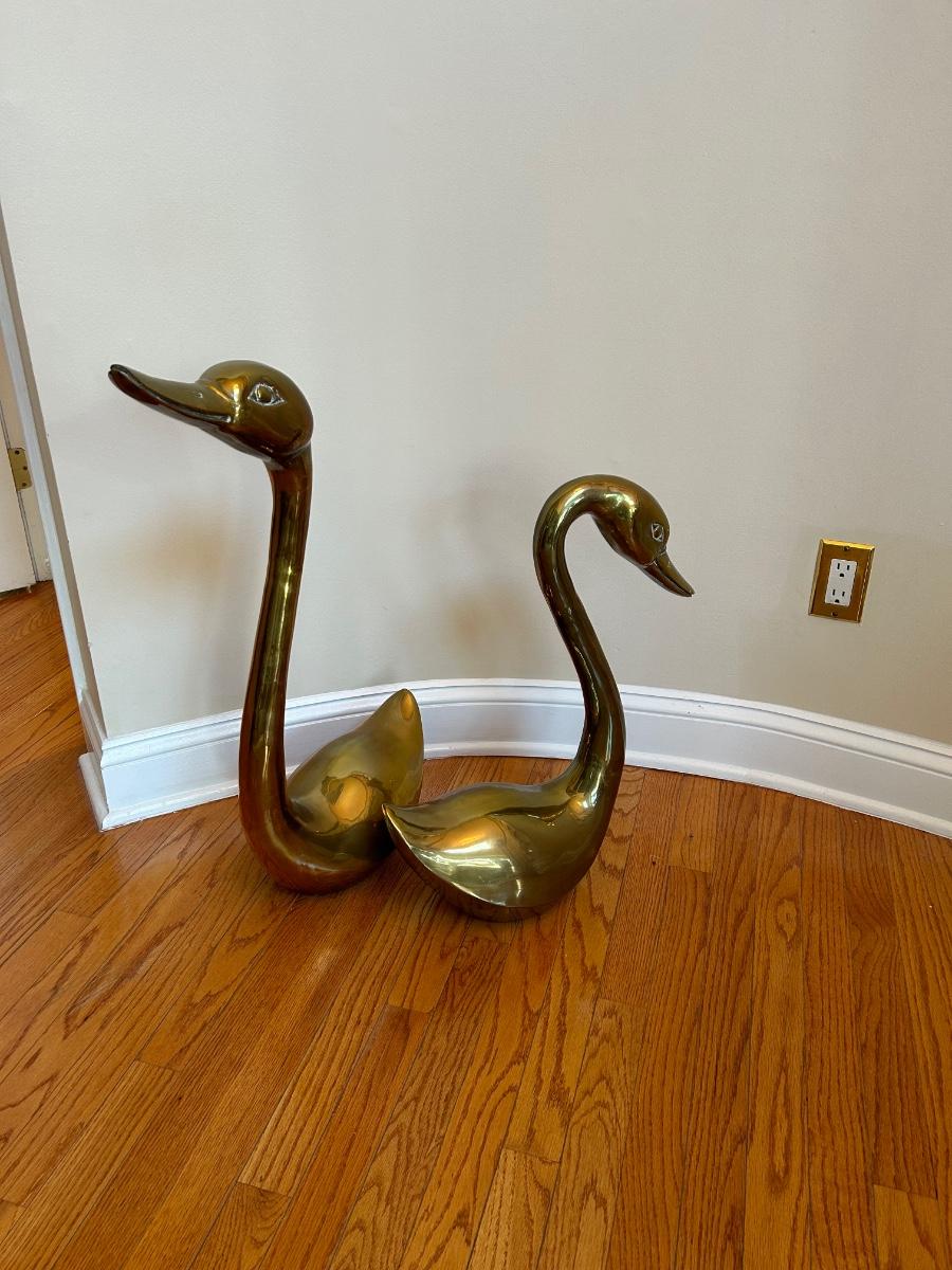 LOT 210FOY: Pair Of Brass Swans
