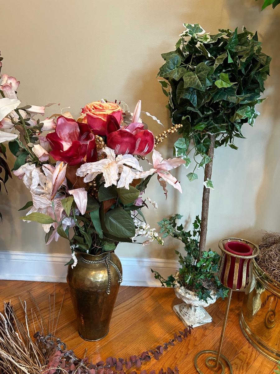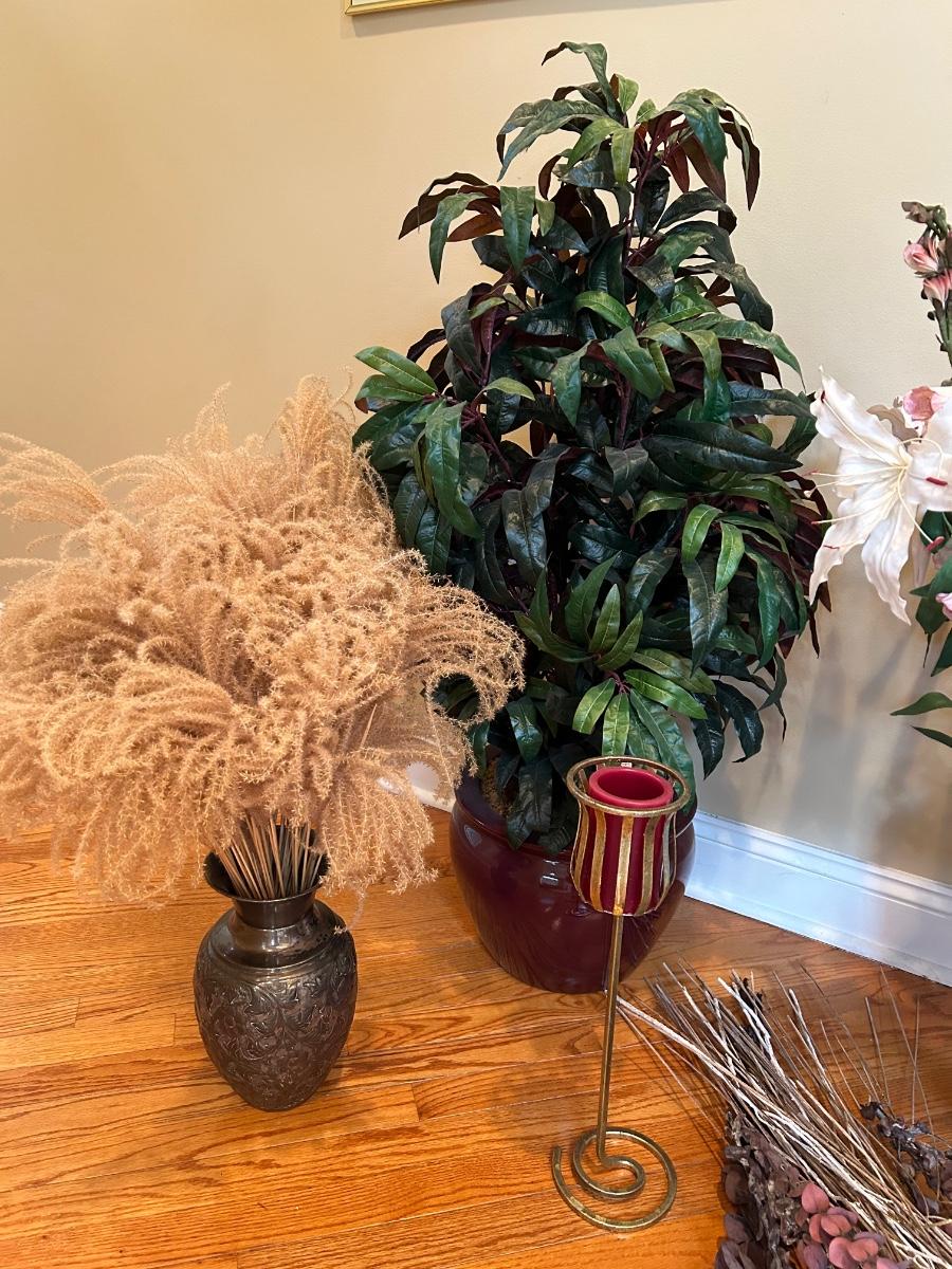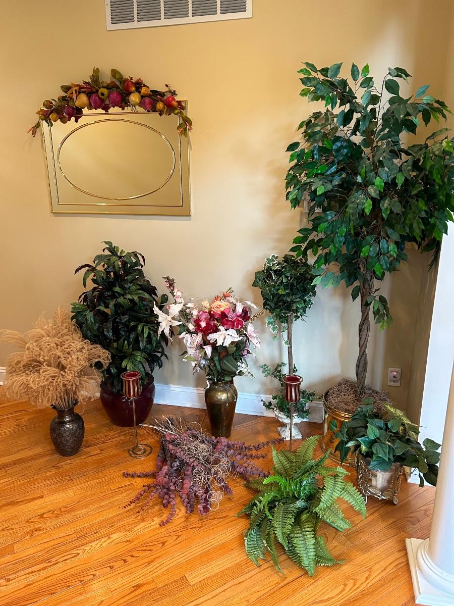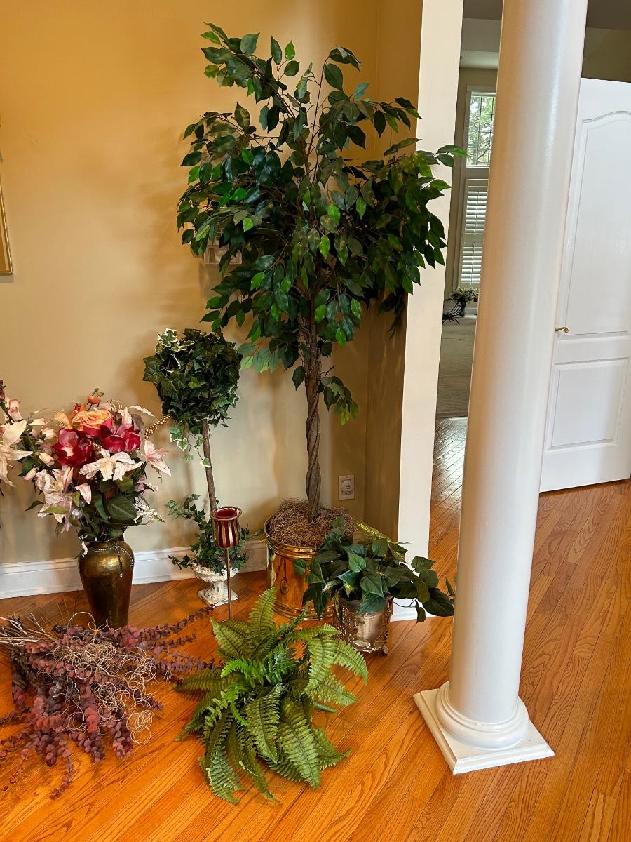 LOT 216FOY: Large Collection Of Faux Trees, Plants And Flowers