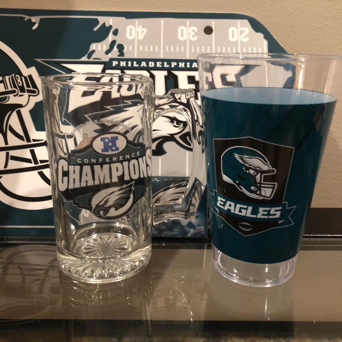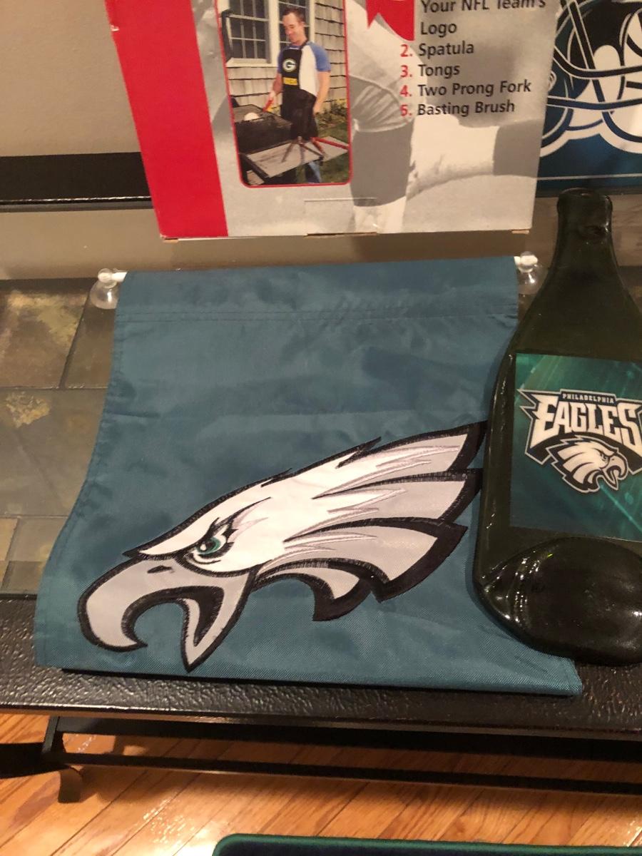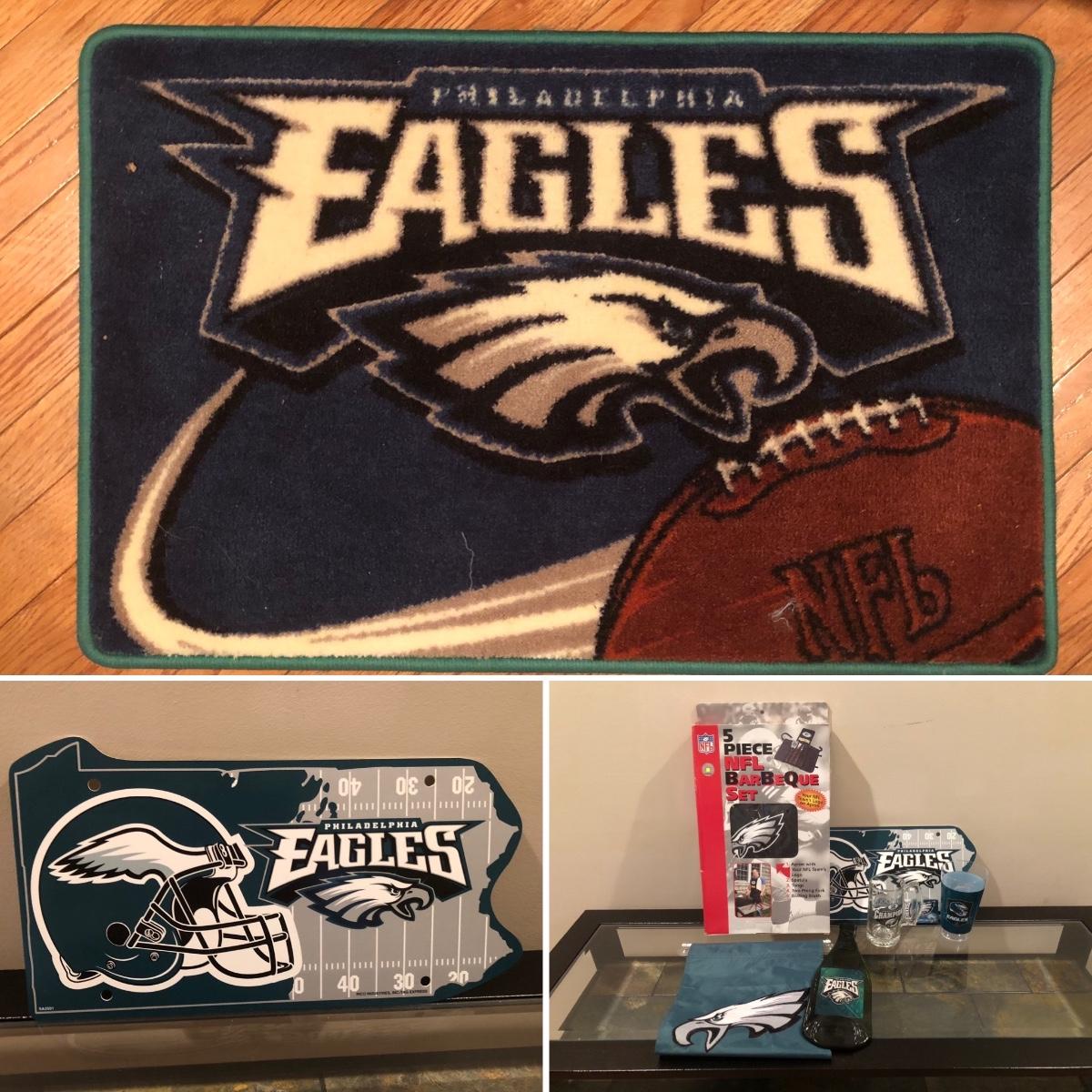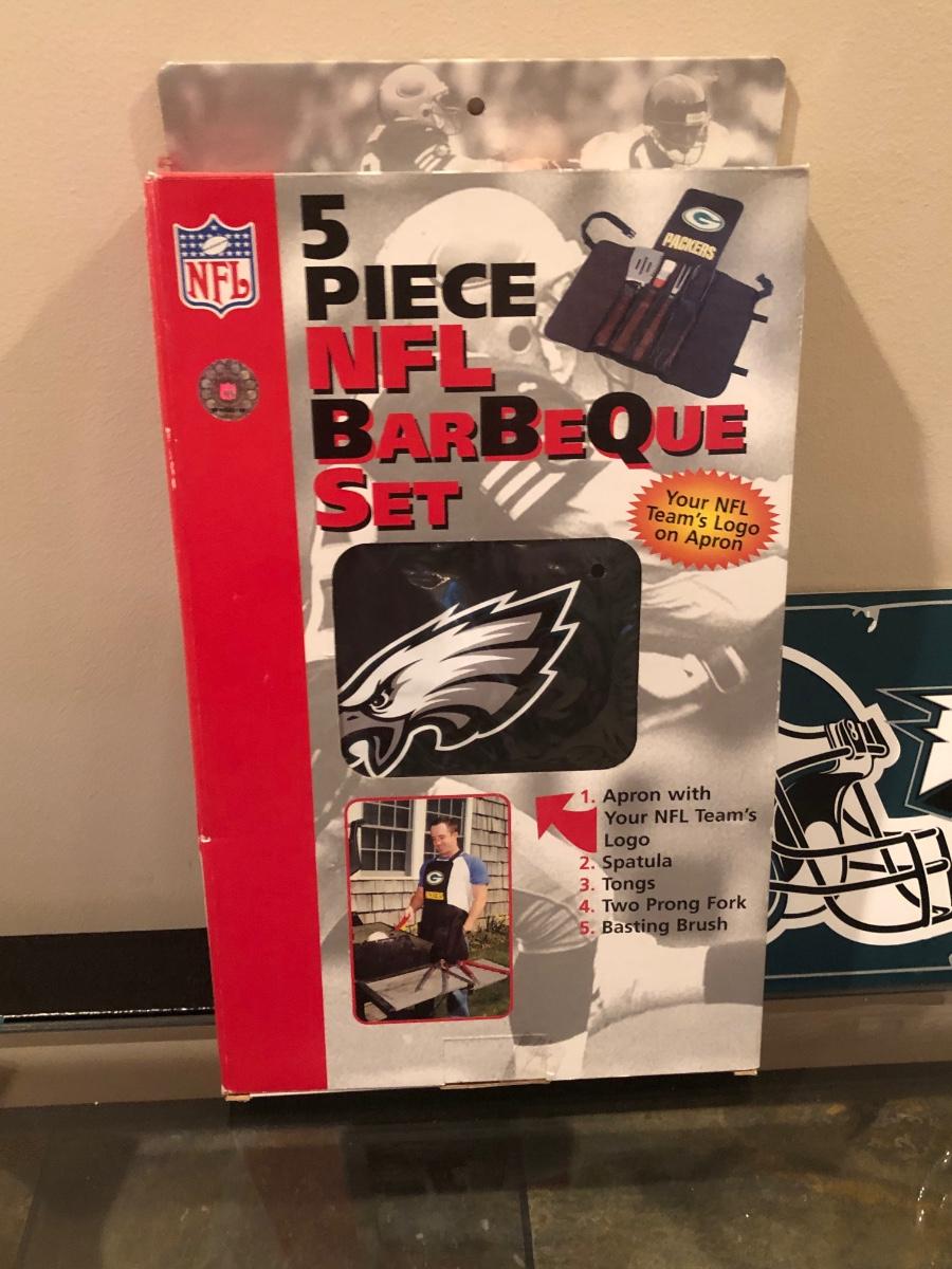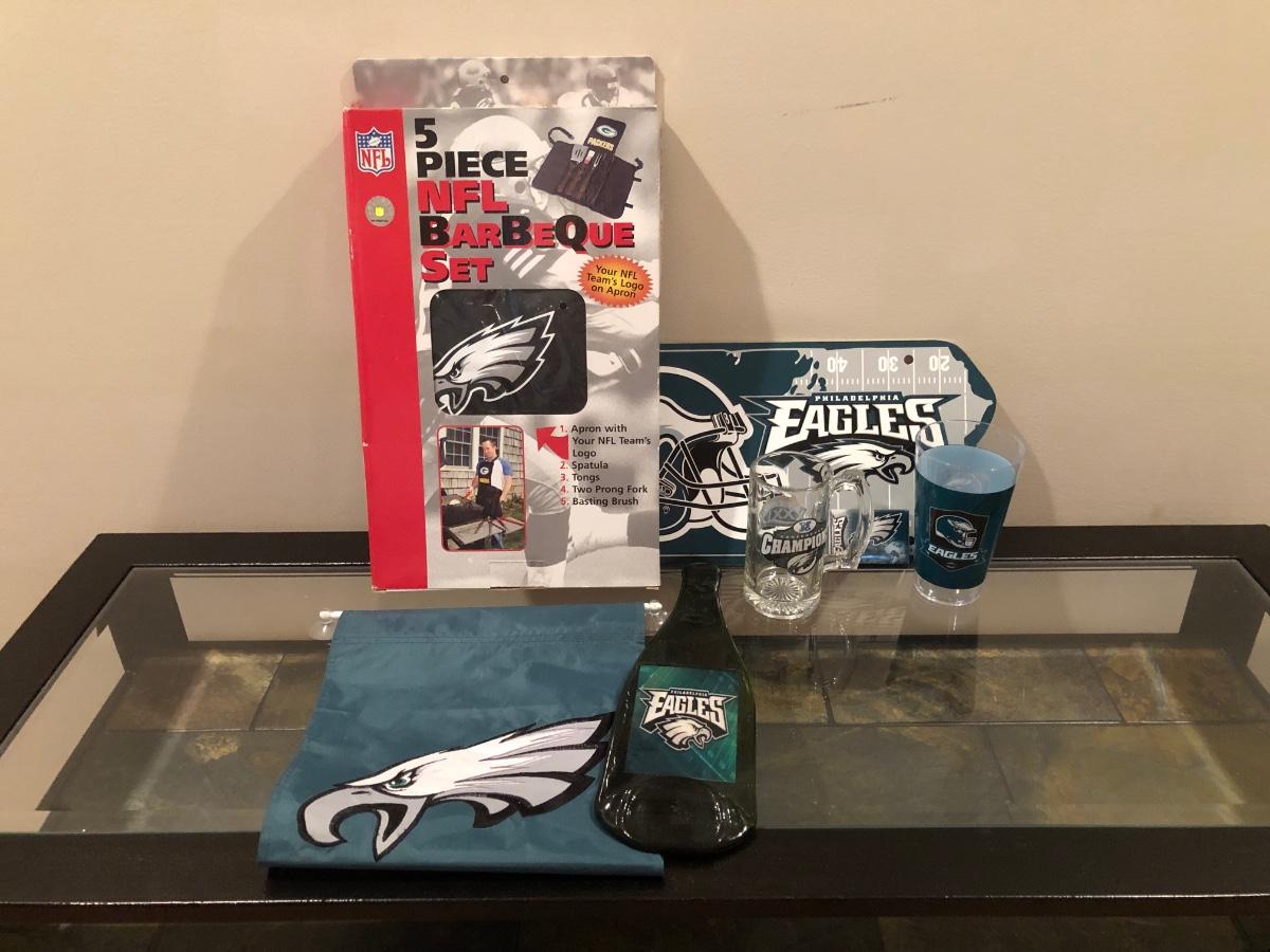 LOT 222X: Philadelphia Eagles Collection - 5-Piece BBQ Grilling Set, Decor, Glass, Doormat & More