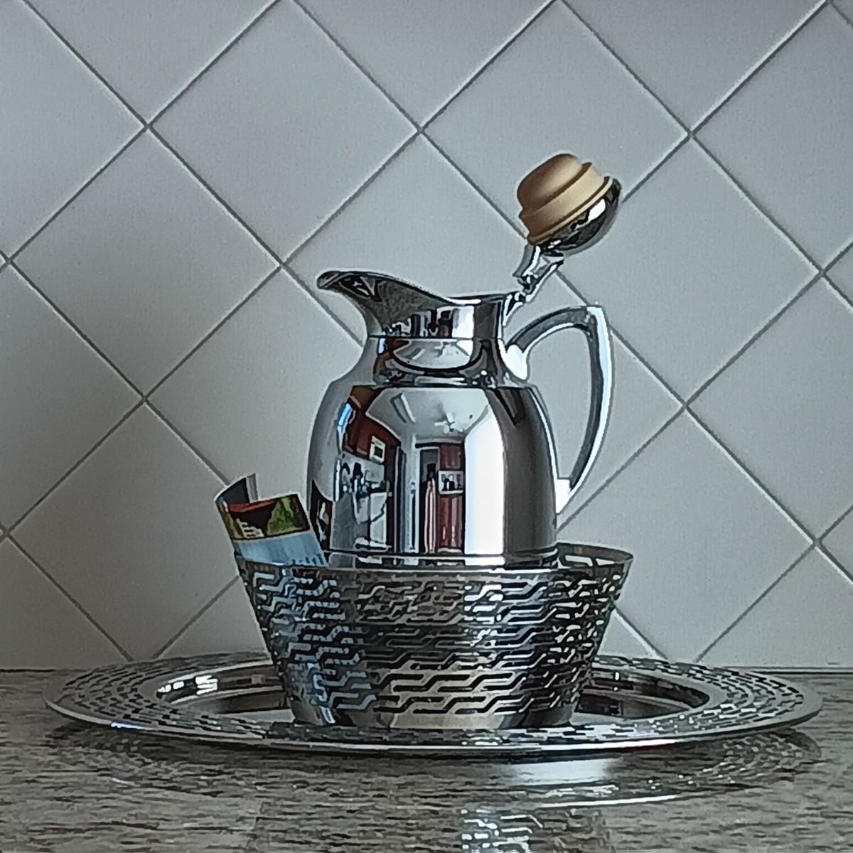 LOT 2K: Vintage Alfi Chrome Vacuum Thermos with Alessi Shaman Bowl & Tray