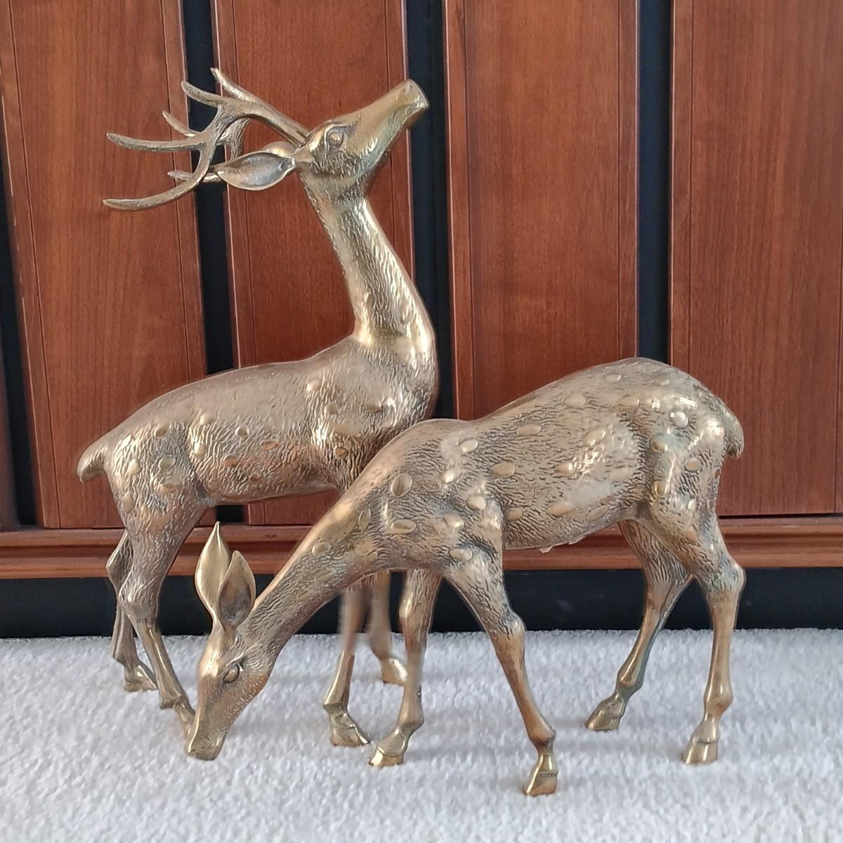 LOT 8K: Vintage Brass Stag and Doe Figurines/Statues 22 inches From Rosenthal-Netter Imports