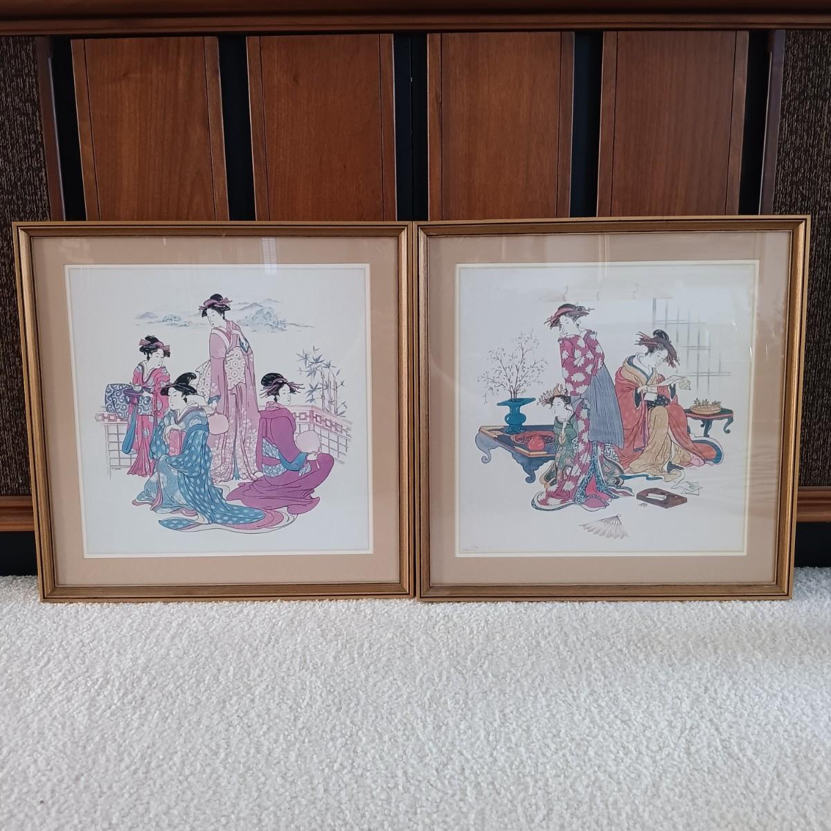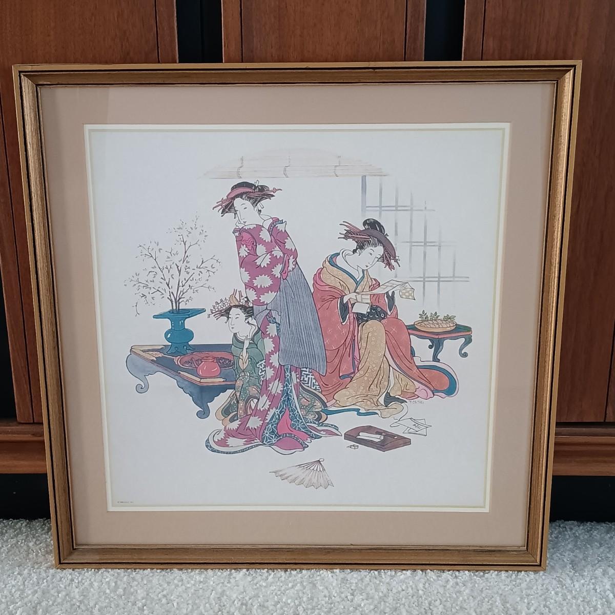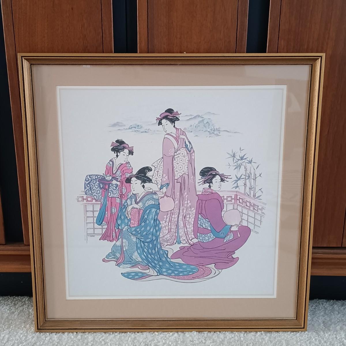 LOT 9L: Thomas Cathey Geisha Prints with Umbrella Stand & Goddess Kuan Yin Statue