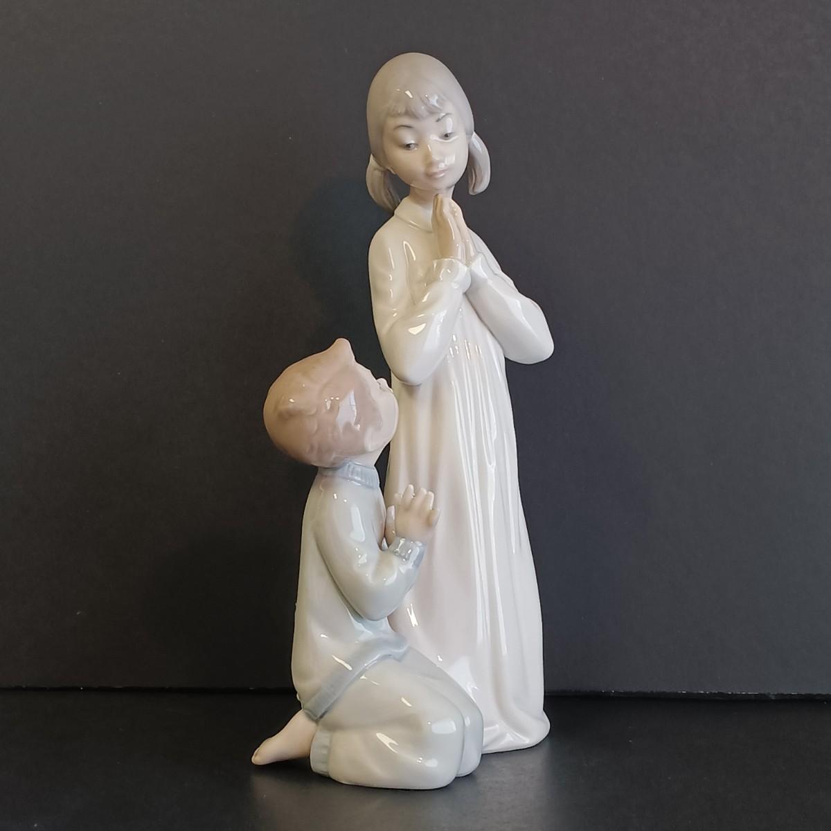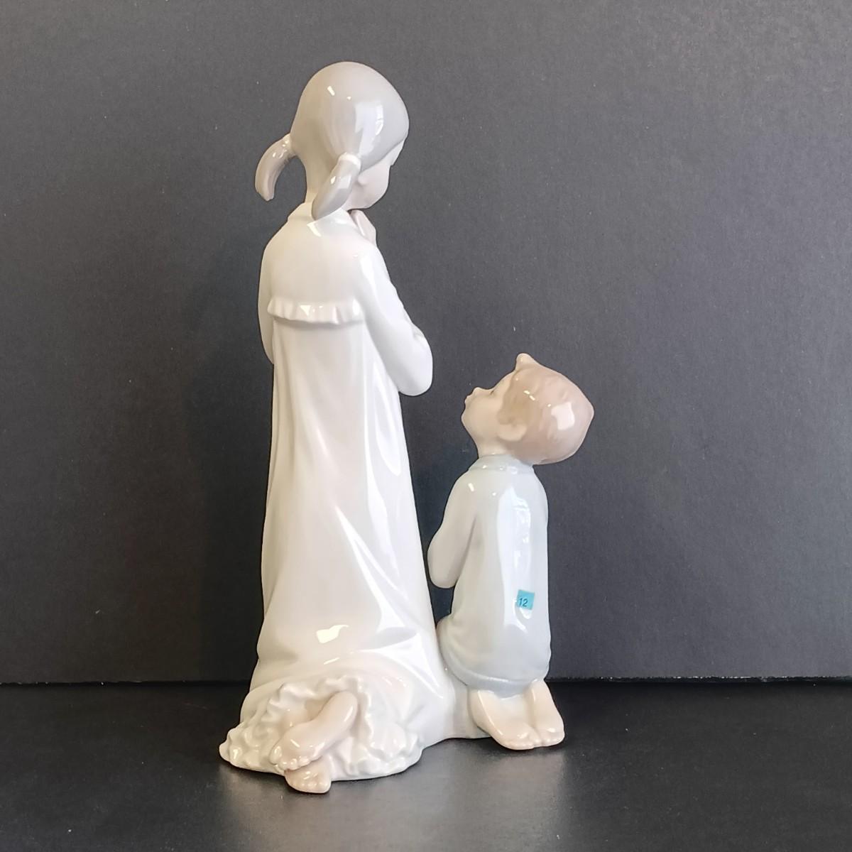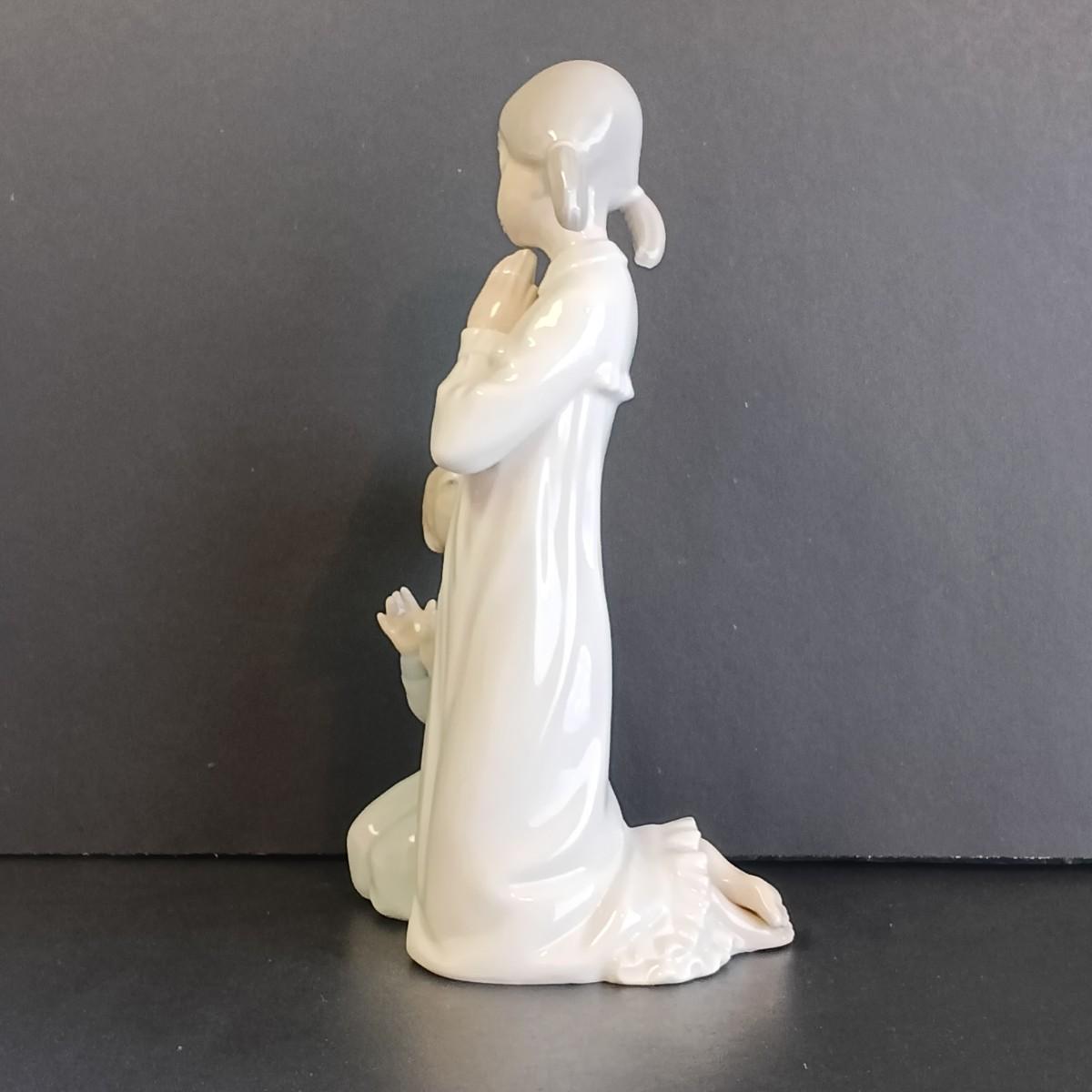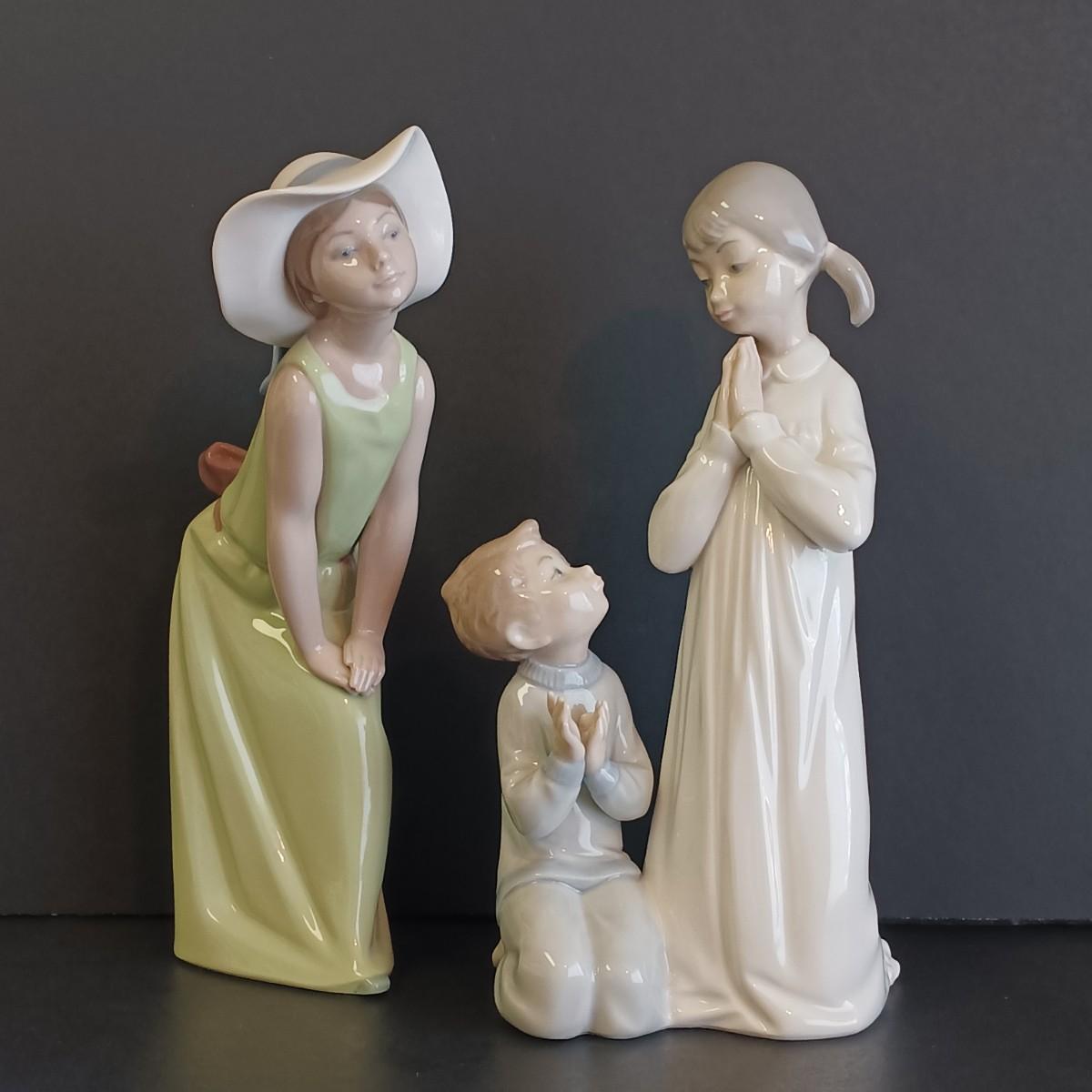 LOT 11K: Lladro 'Teaching to Pray' and 'Curious Girl with Straw Hat' Porcelain Figurines