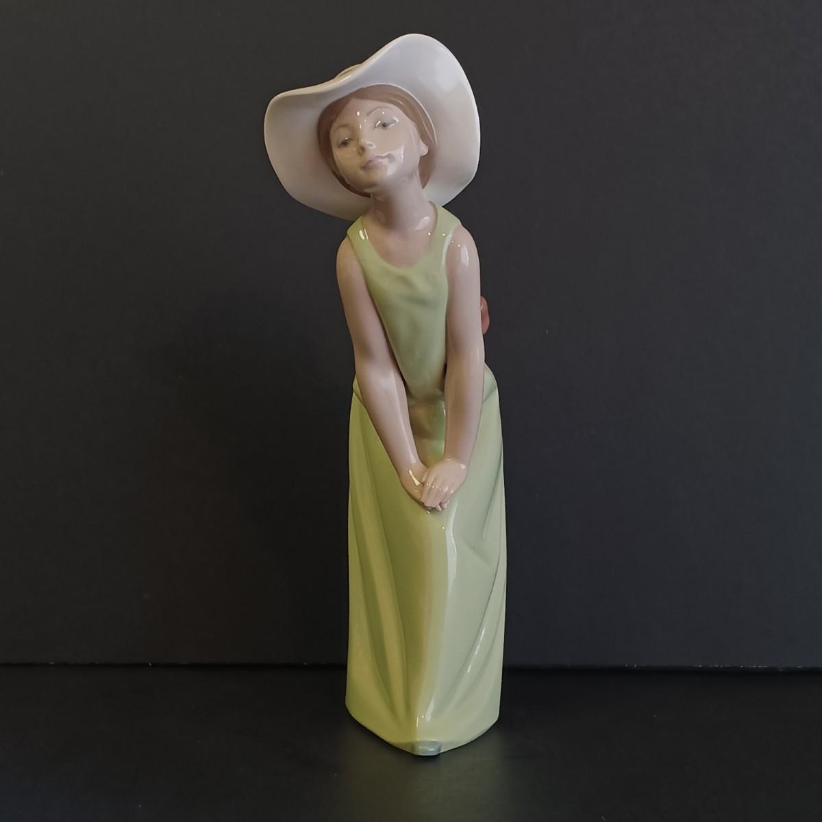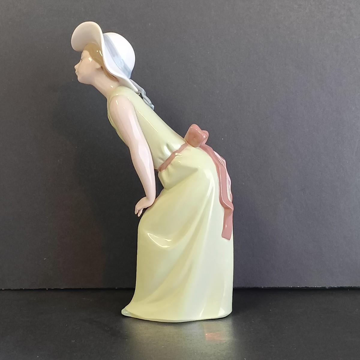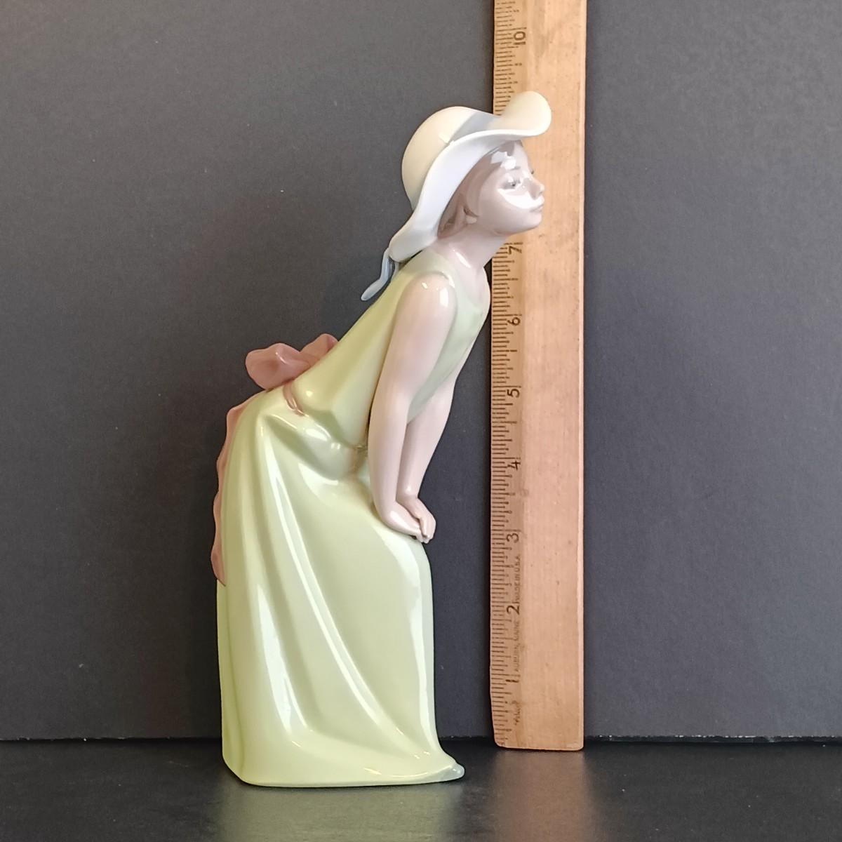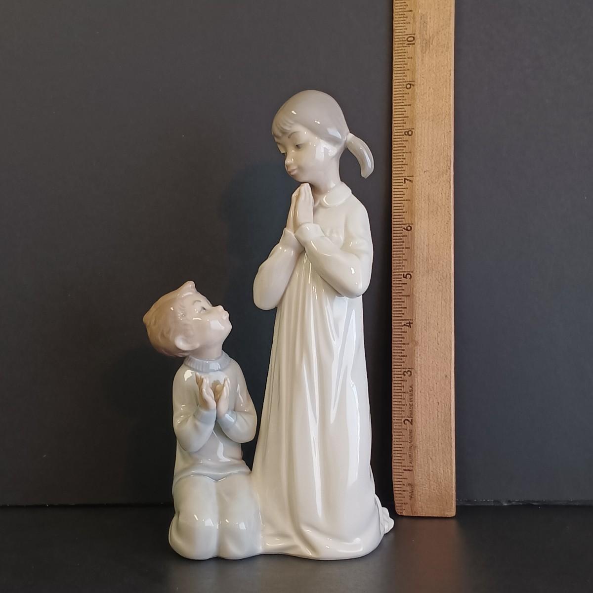 LOT 11K: Lladro 'Teaching to Pray' and 'Curious Girl with Straw Hat' Porcelain Figurines