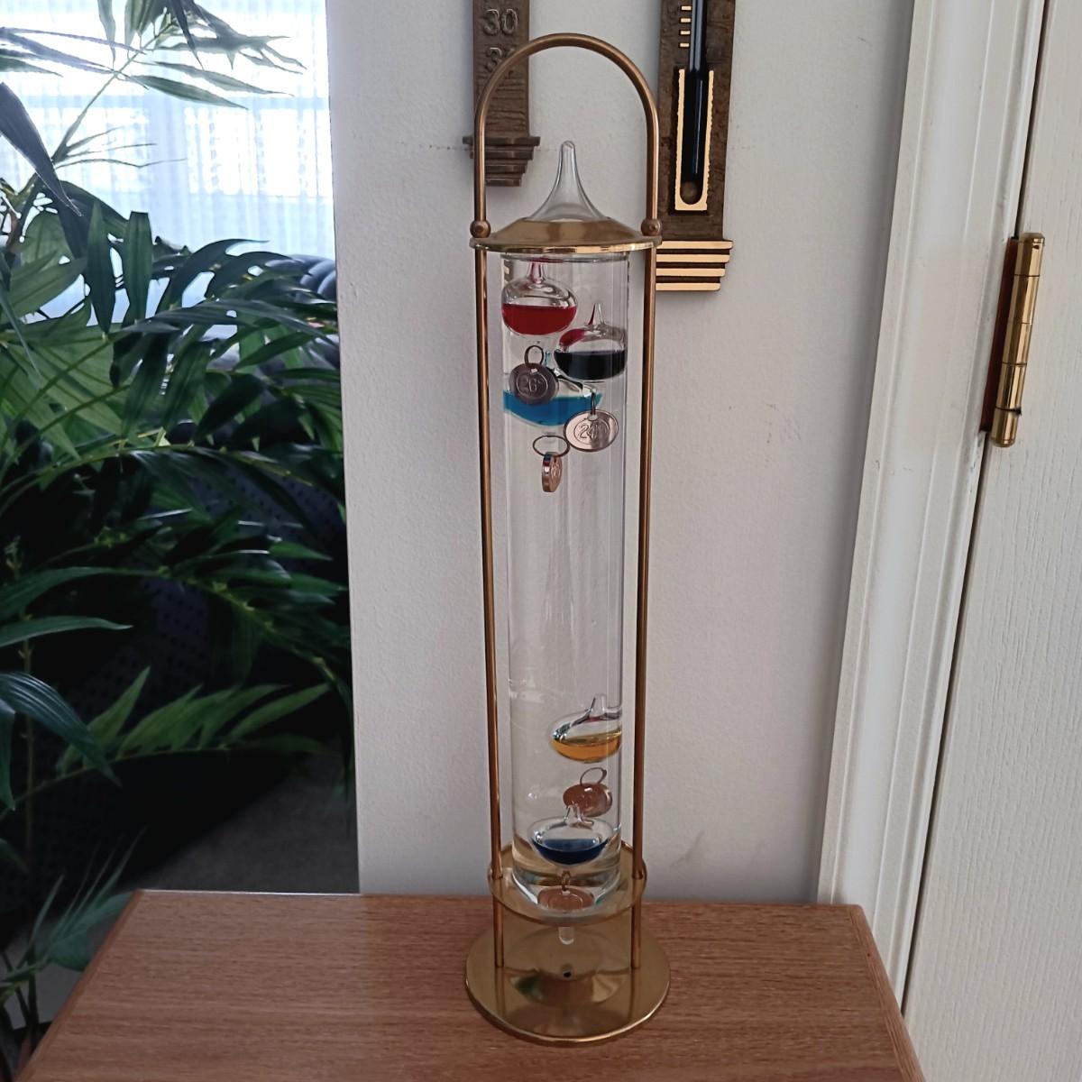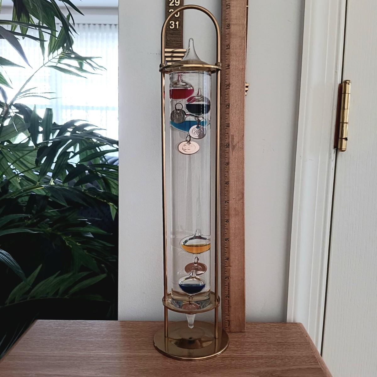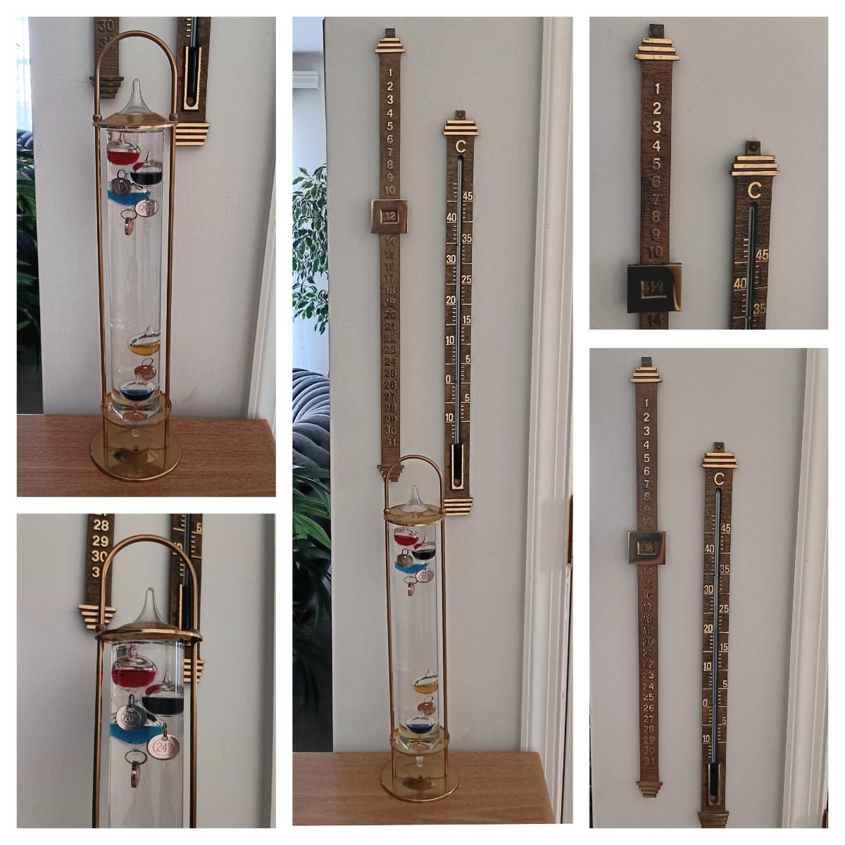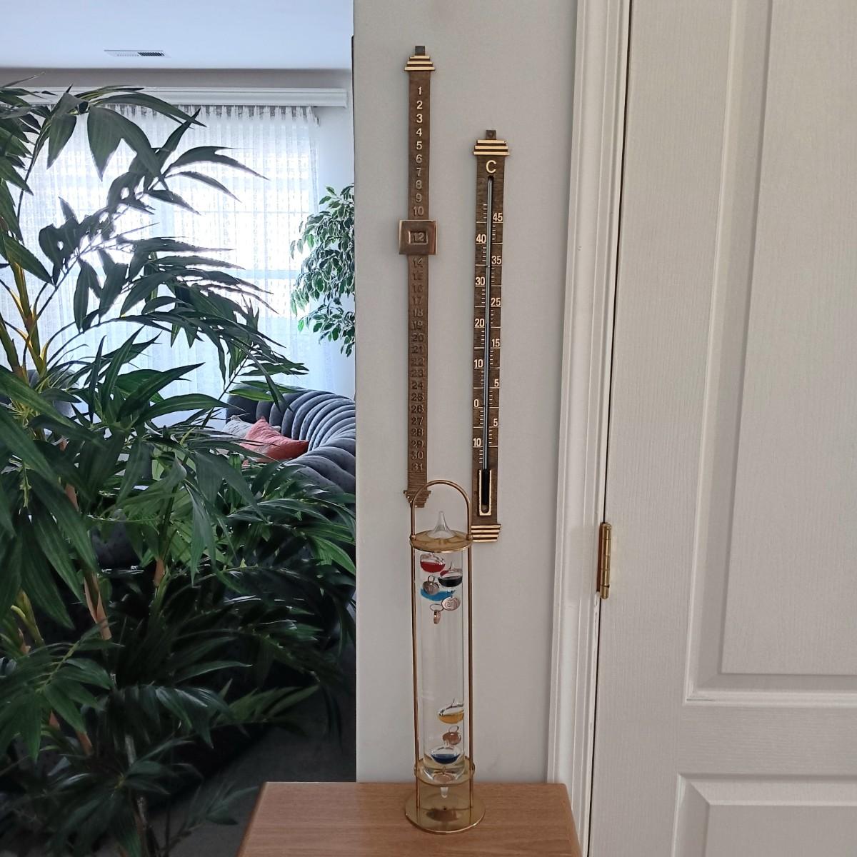 LOT 32K: Vintage Brass Galileo Thermometer with Wall Thermometer and Date Calendar Set