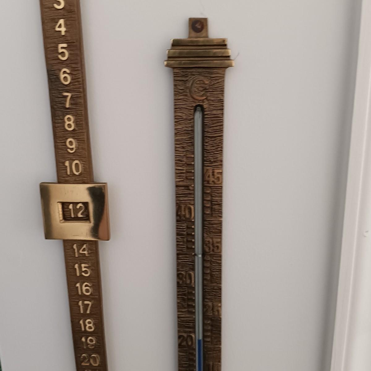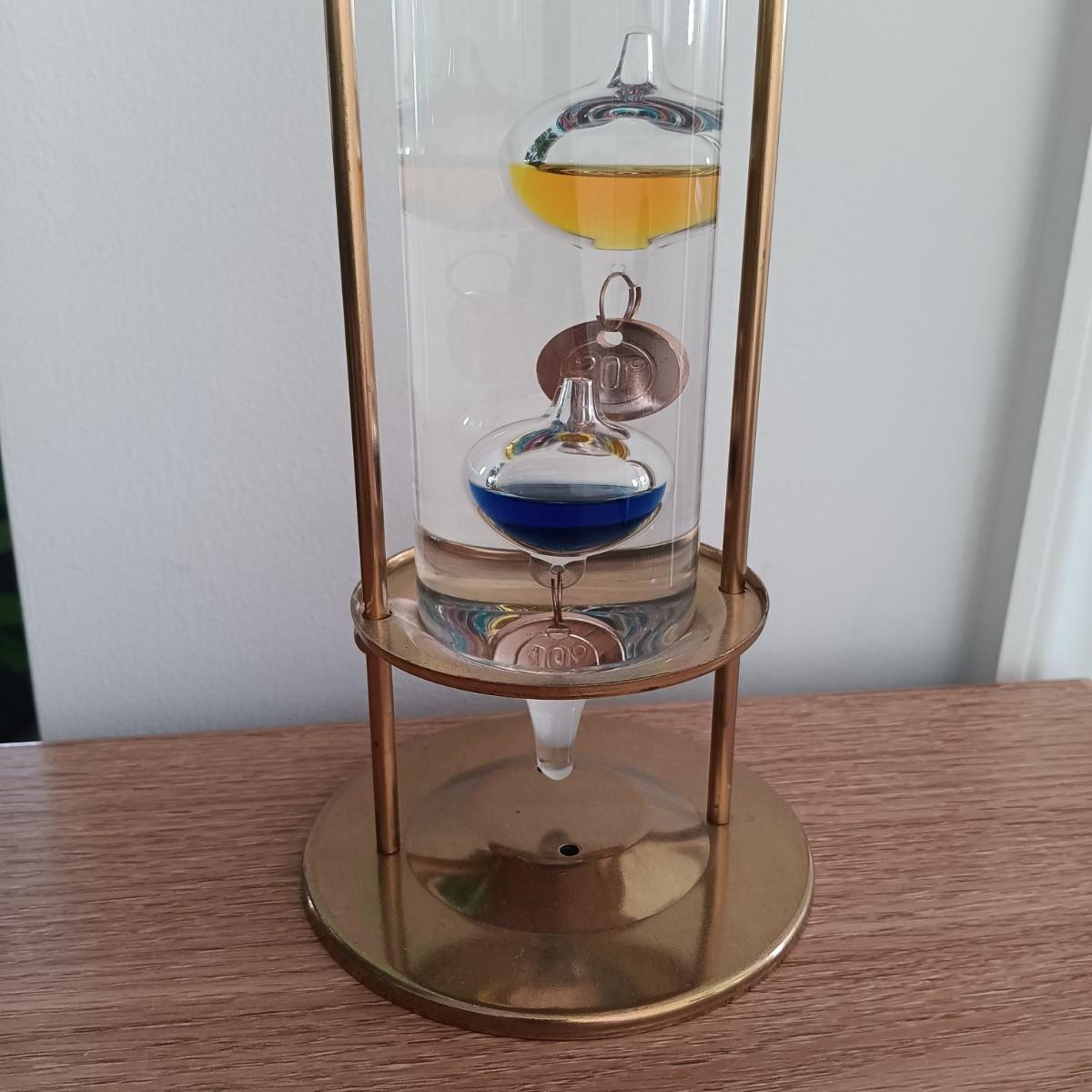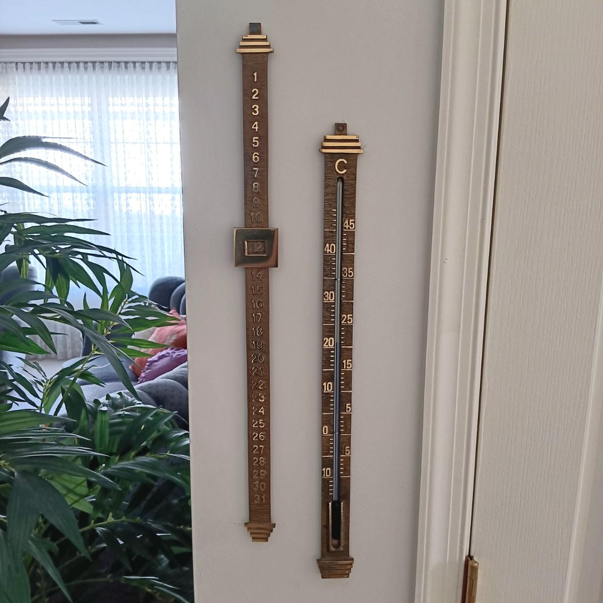 LOT 32K: Vintage Brass Galileo Thermometer with Wall Thermometer and Date Calendar Set