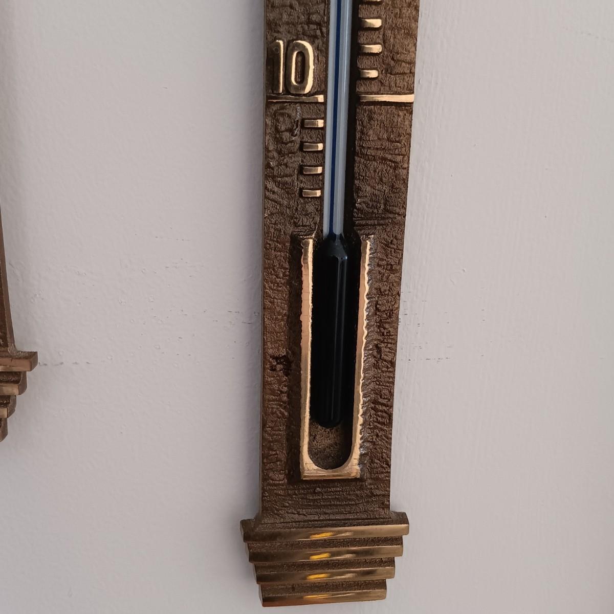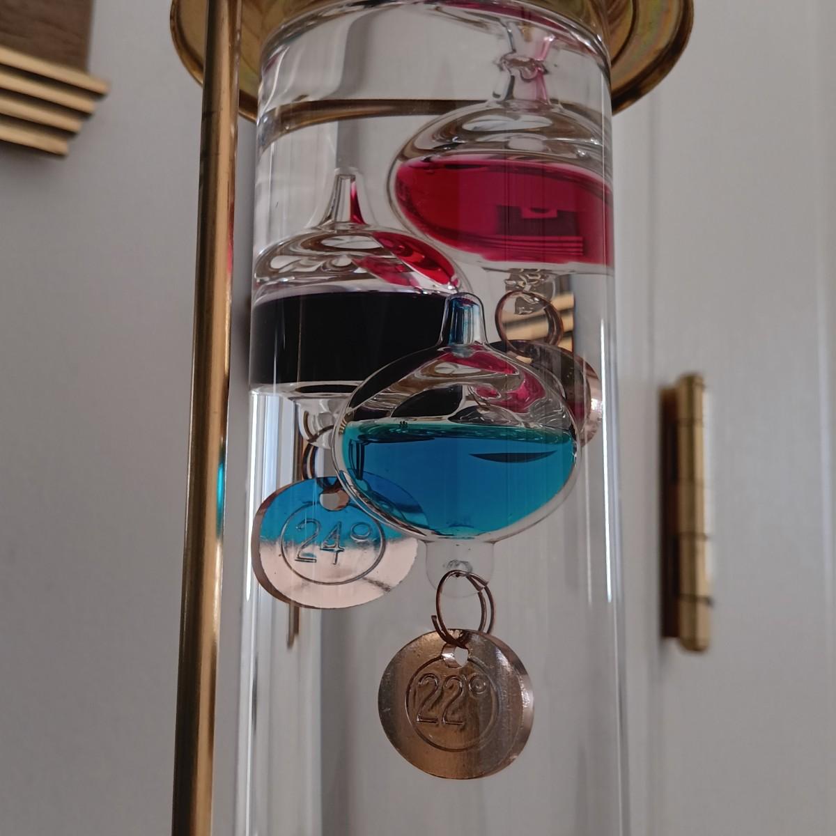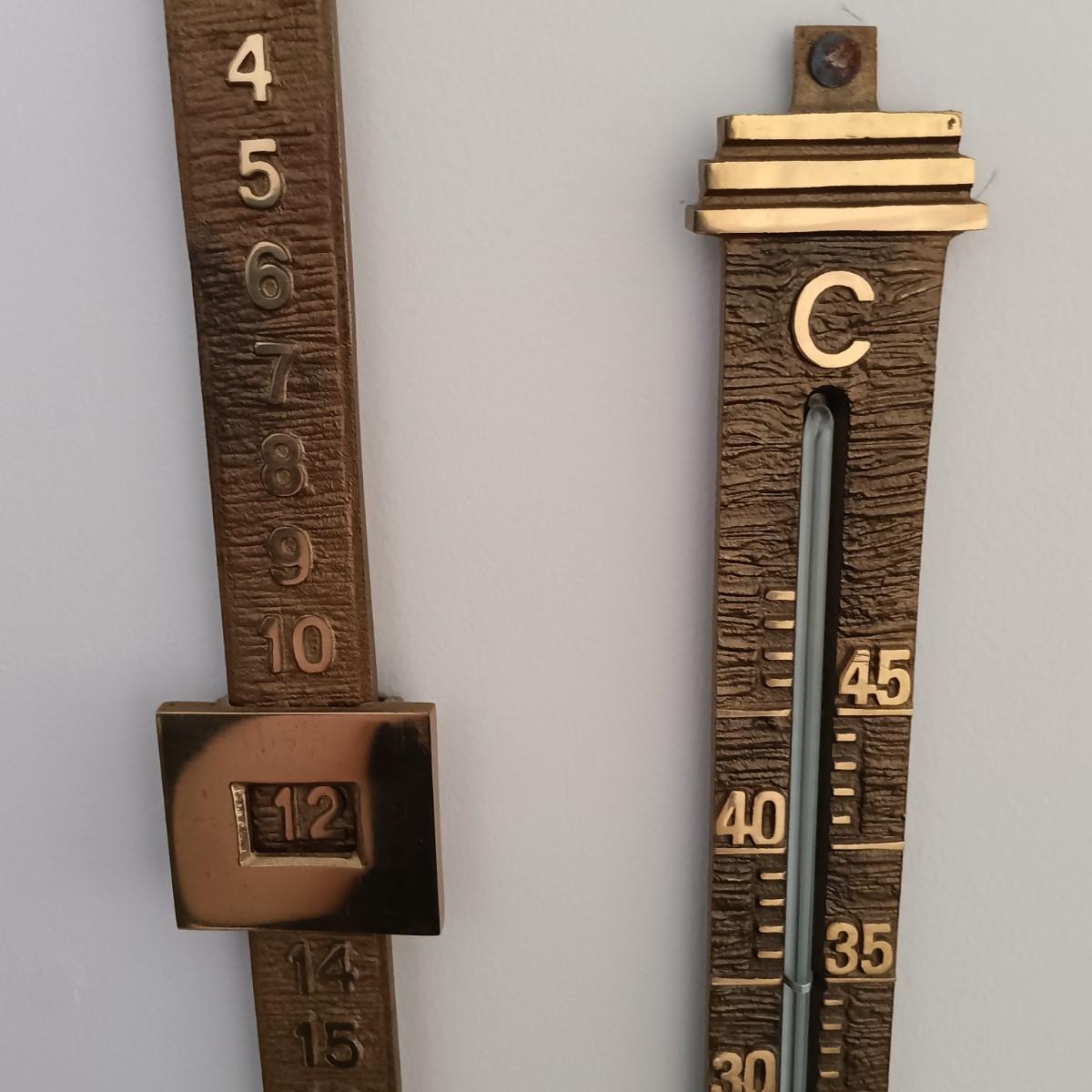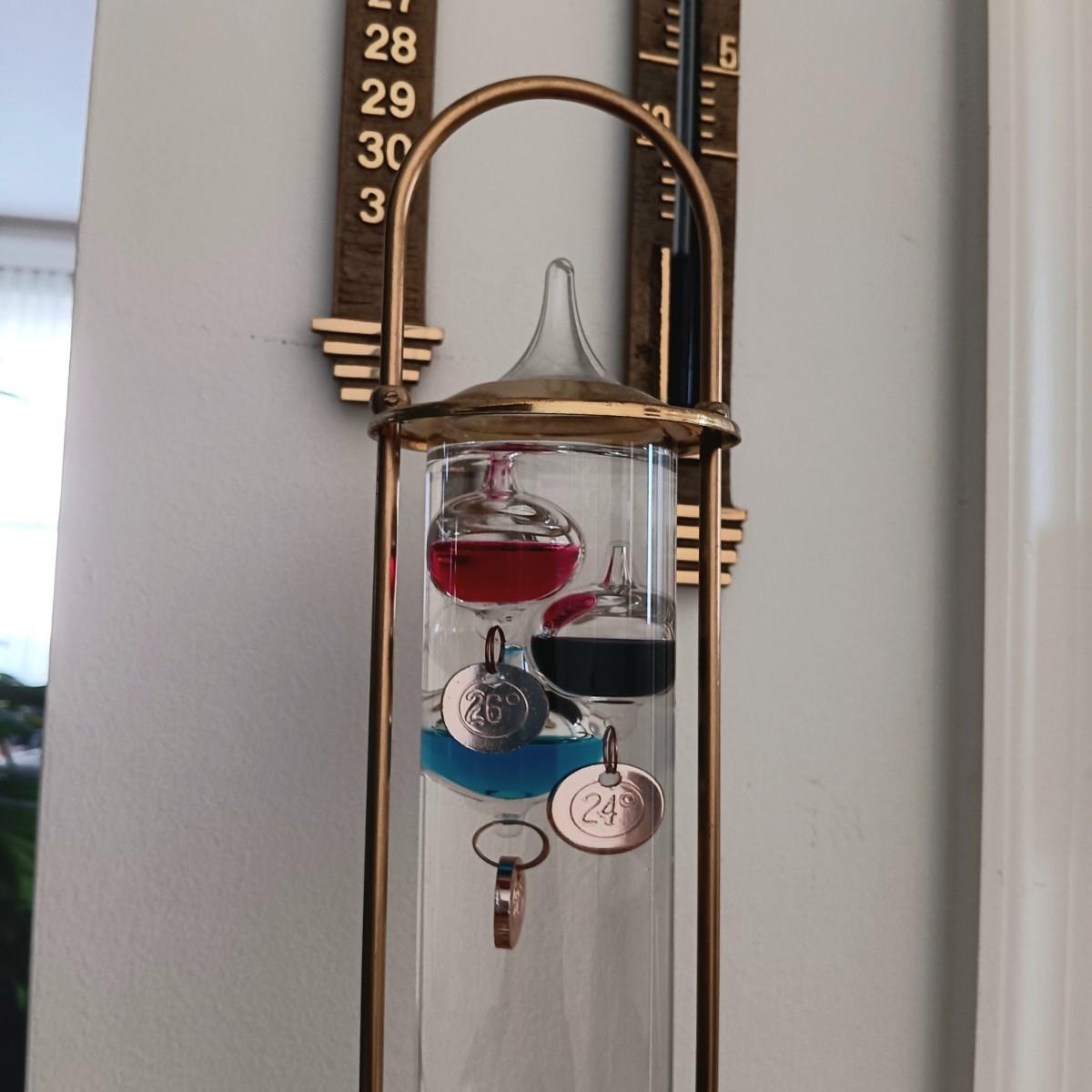 LOT 32K: Vintage Brass Galileo Thermometer with Wall Thermometer and Date Calendar Set