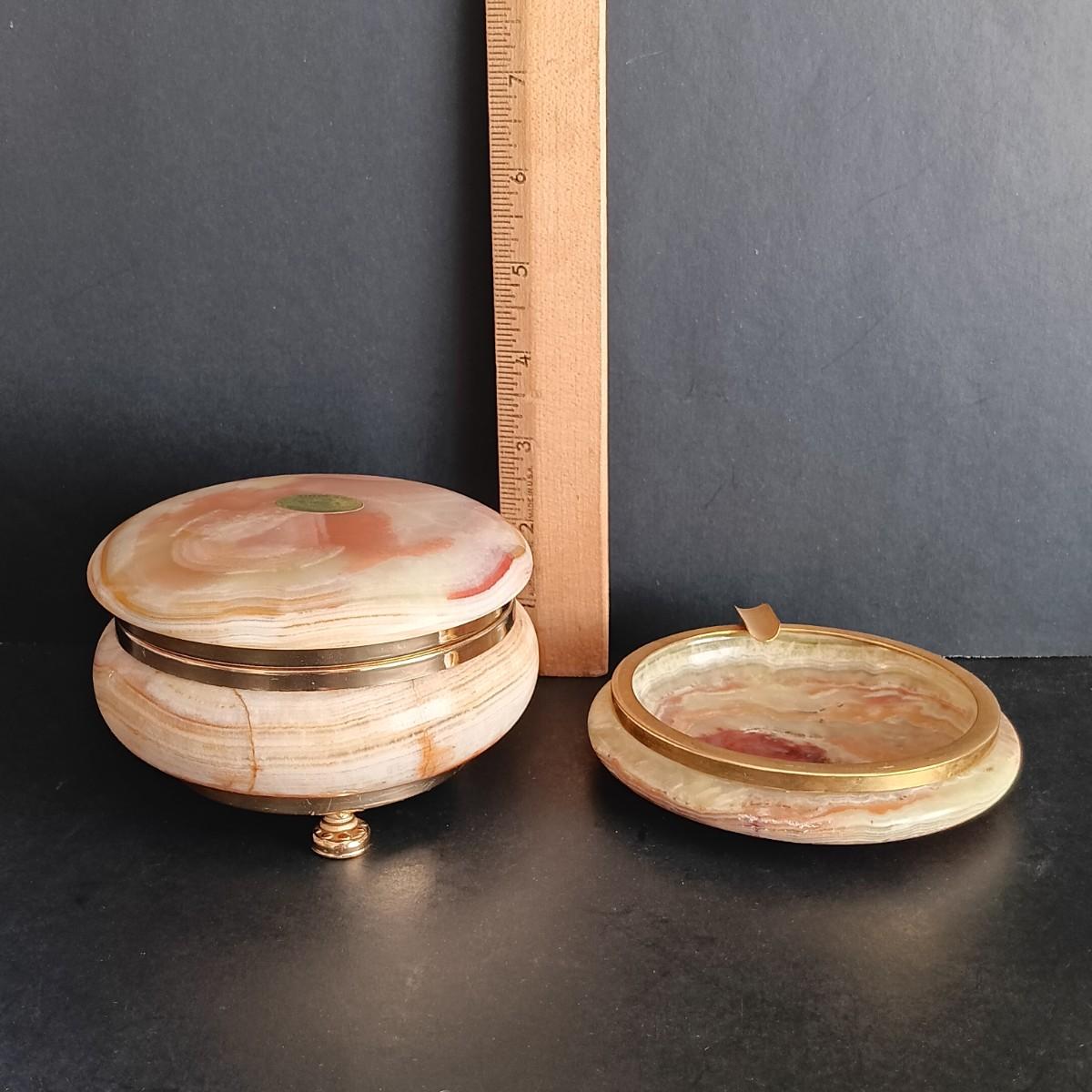 LOT 34K: Onyx Art Trinket Box with Matching Ashtray