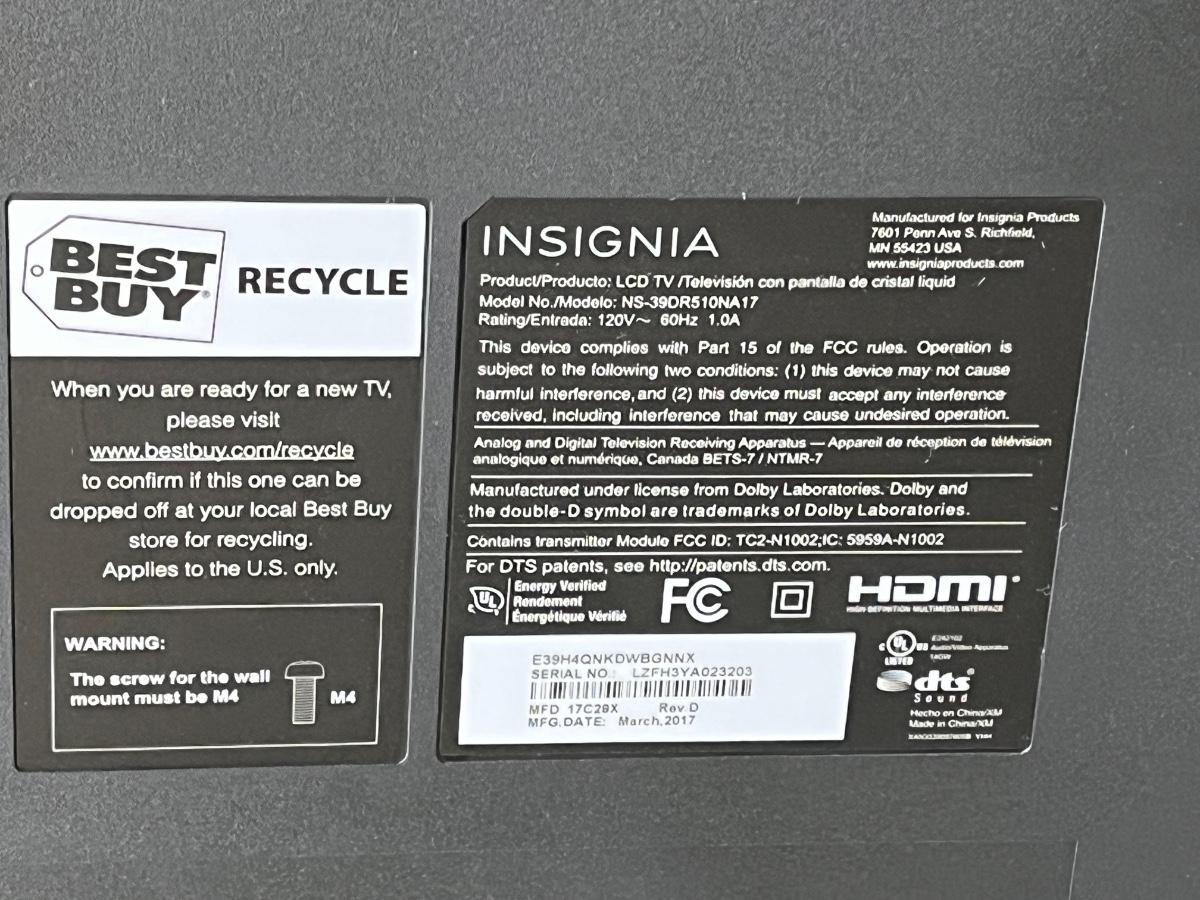 LOT 44M: Insignia 39" Smart Roku TV