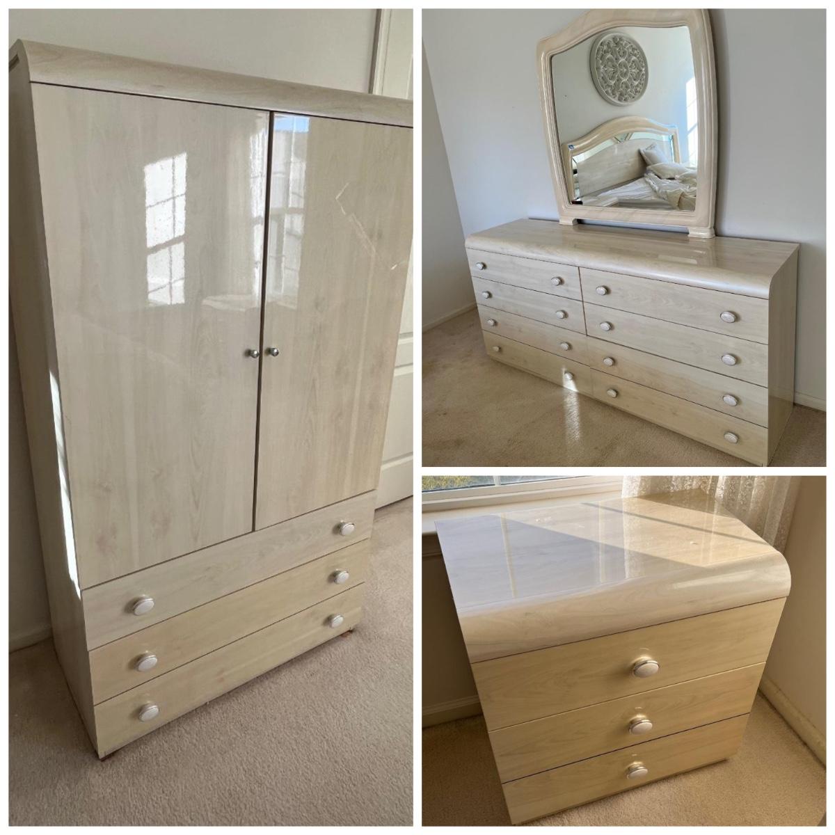LOT 51M: Bedroom Furniture - Armoire, Dresser with Mirror, Nightstand