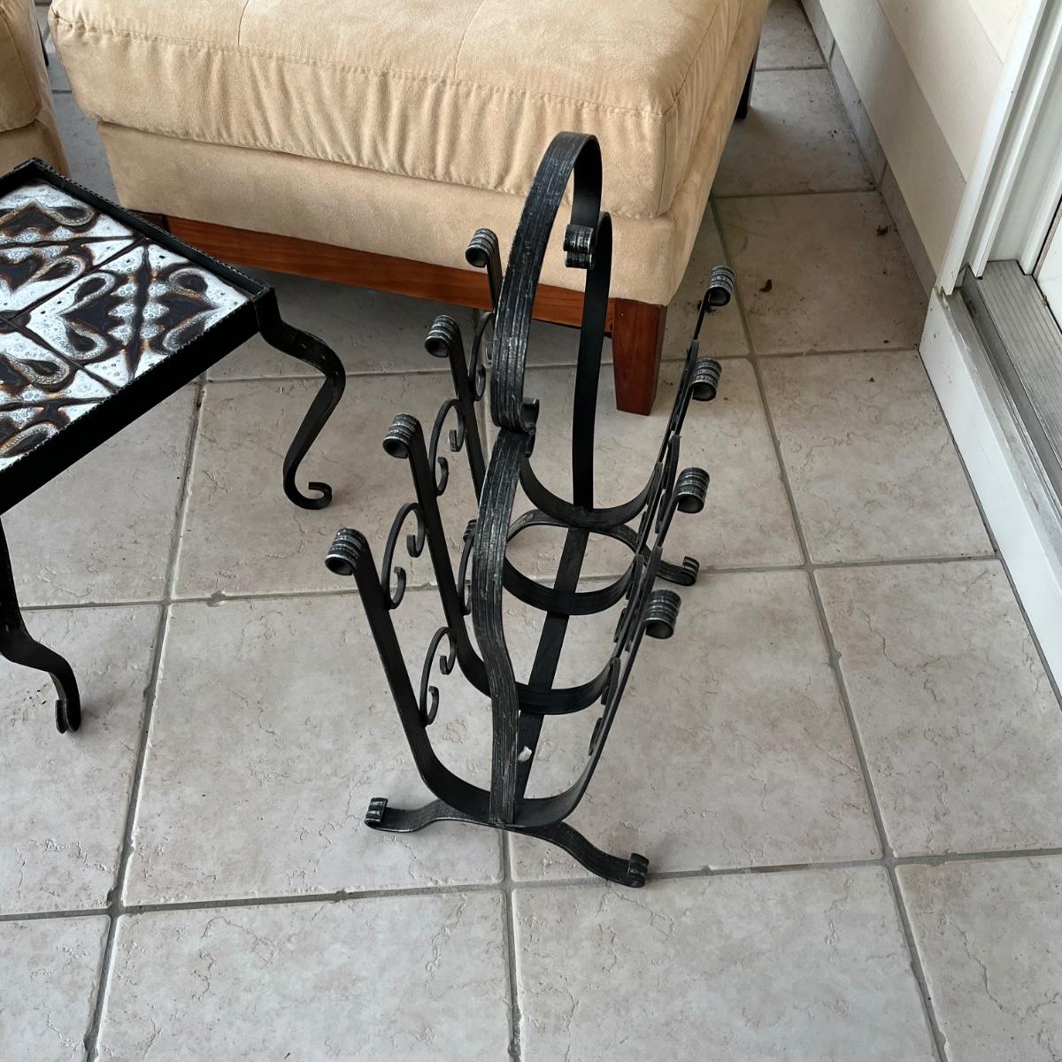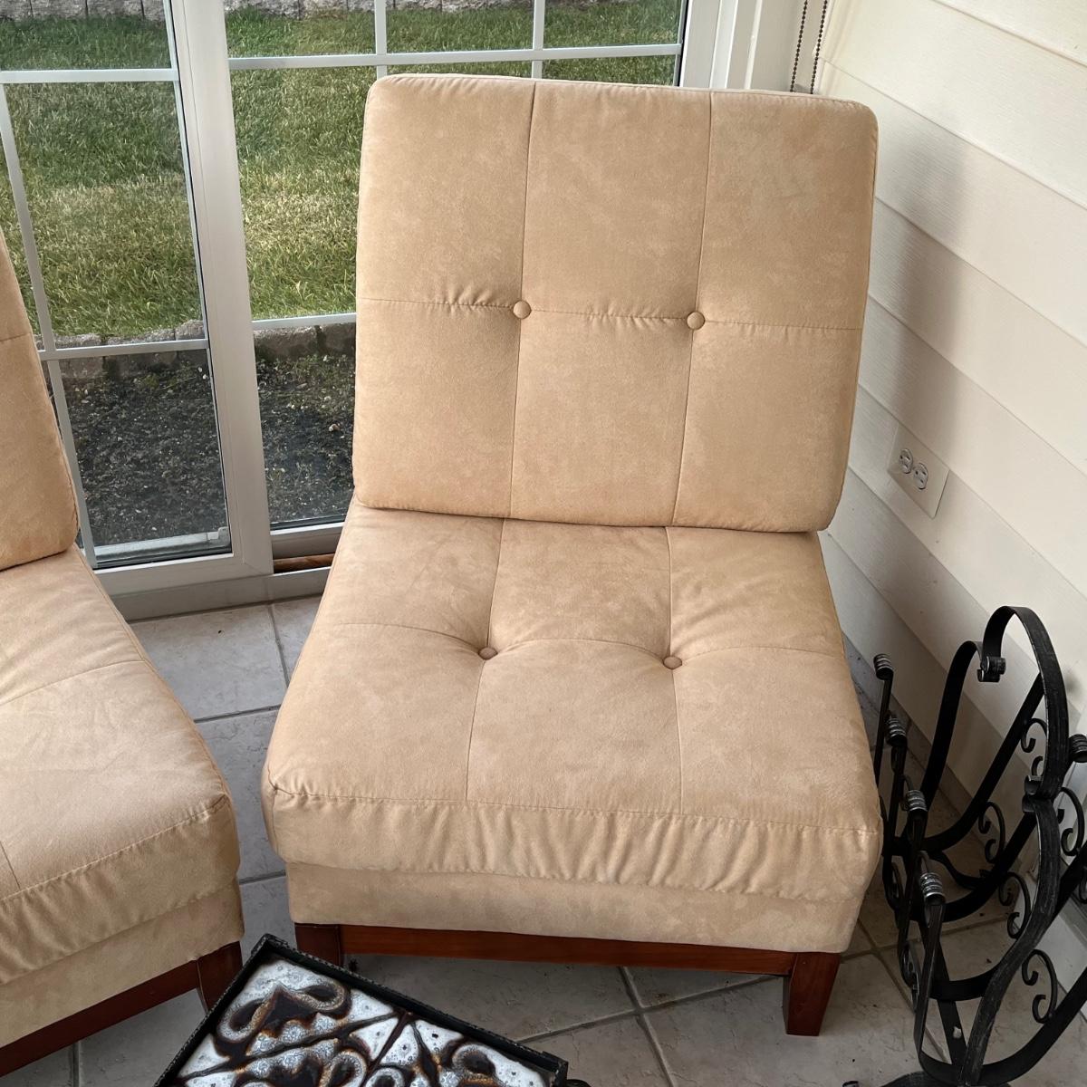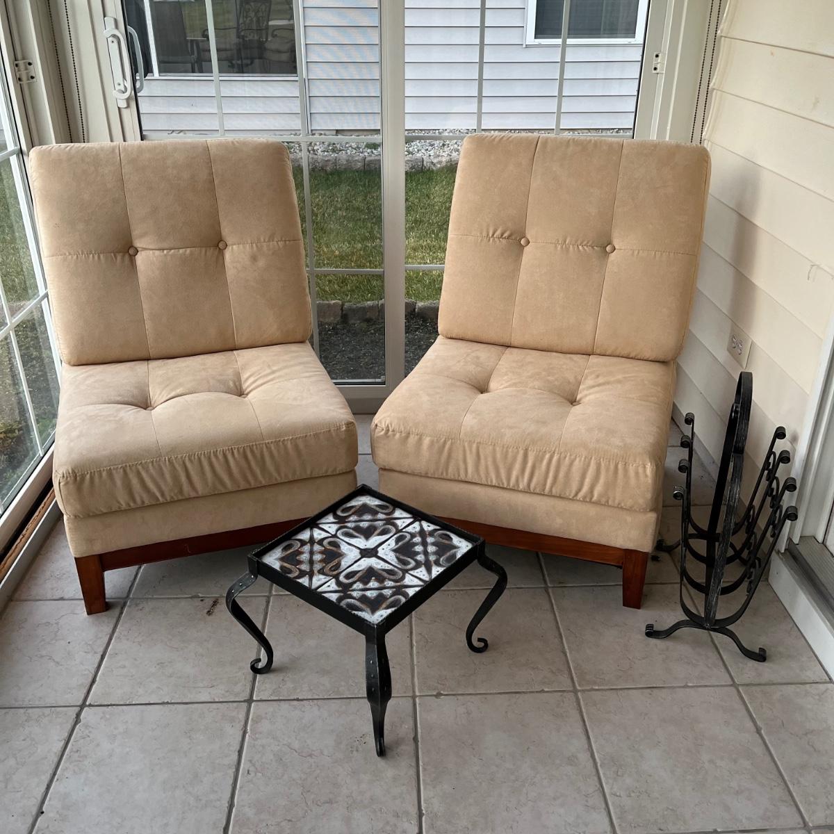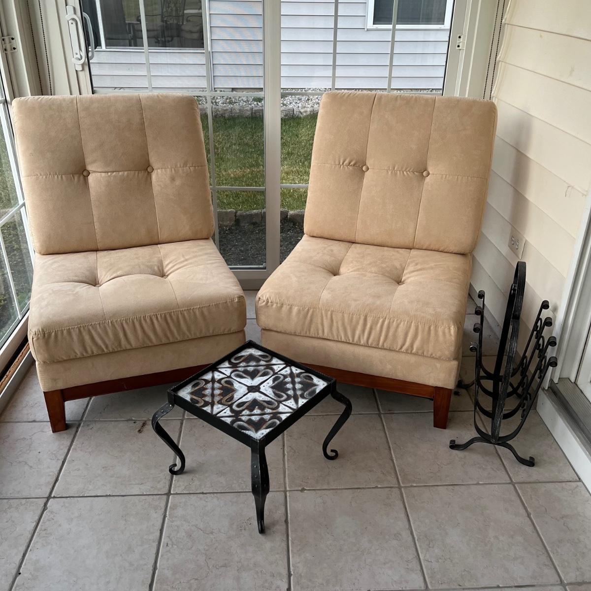 LOT 58P: Two Matching Armless Chairs, Small Accent Table, Magazine Rack