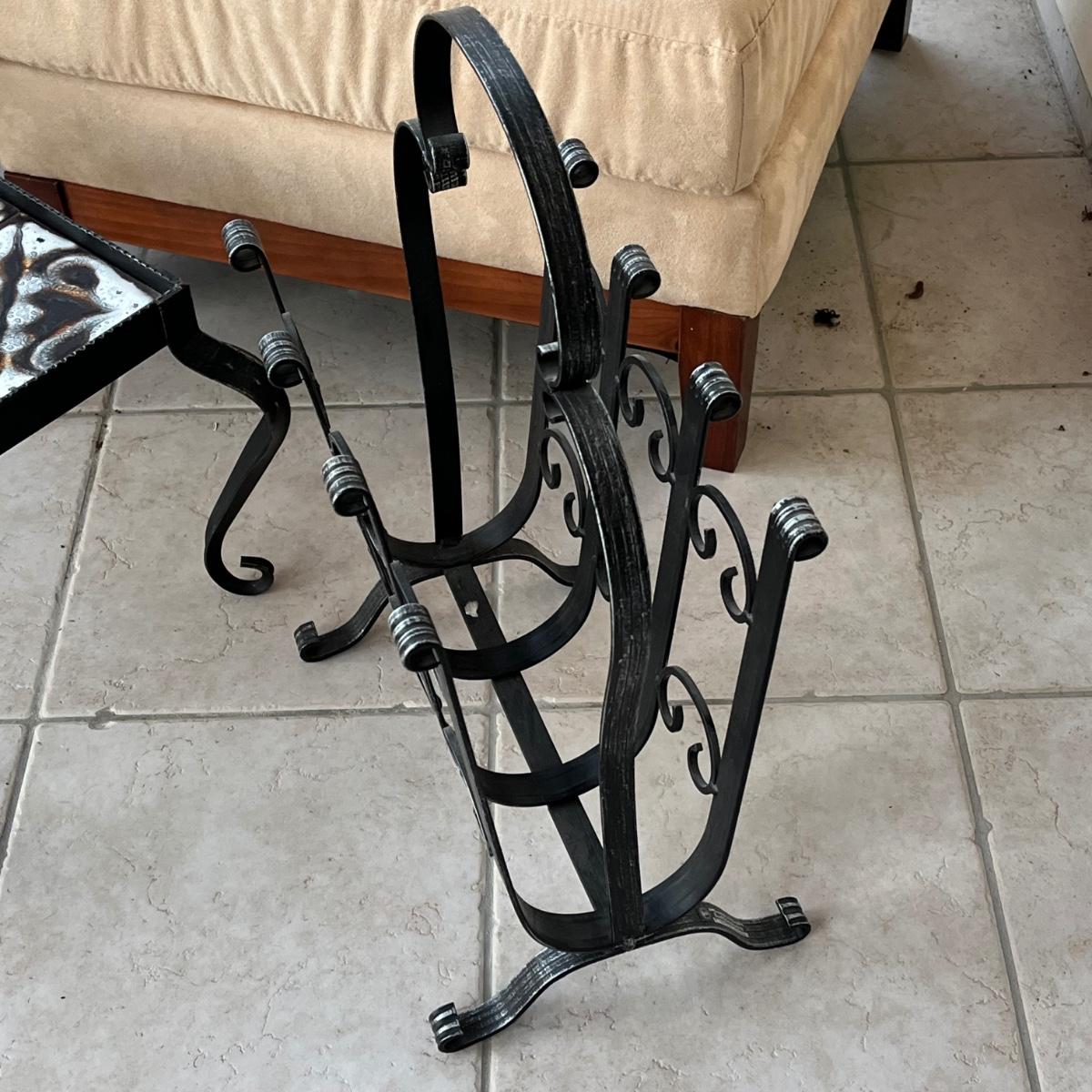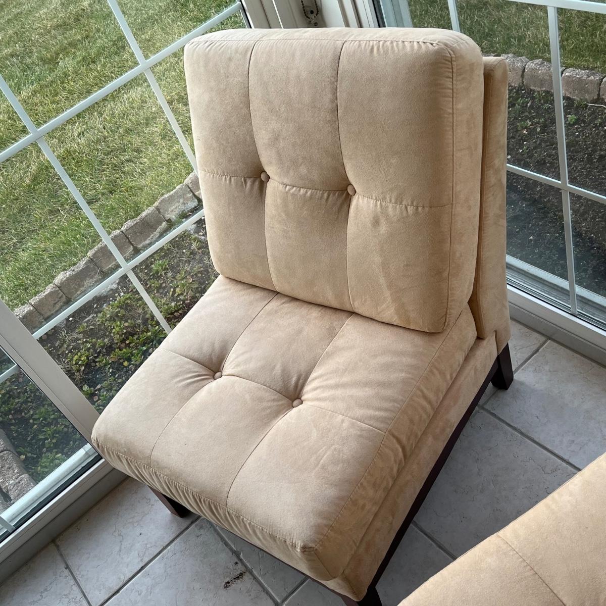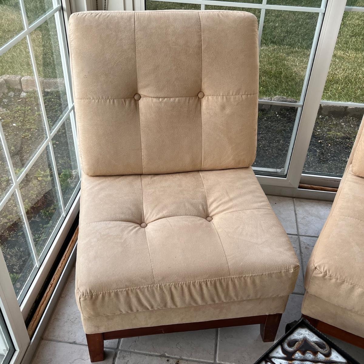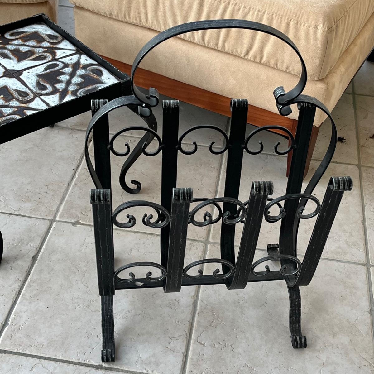LOT 58P: Two Matching Armless Chairs, Small Accent Table, Magazine Rack